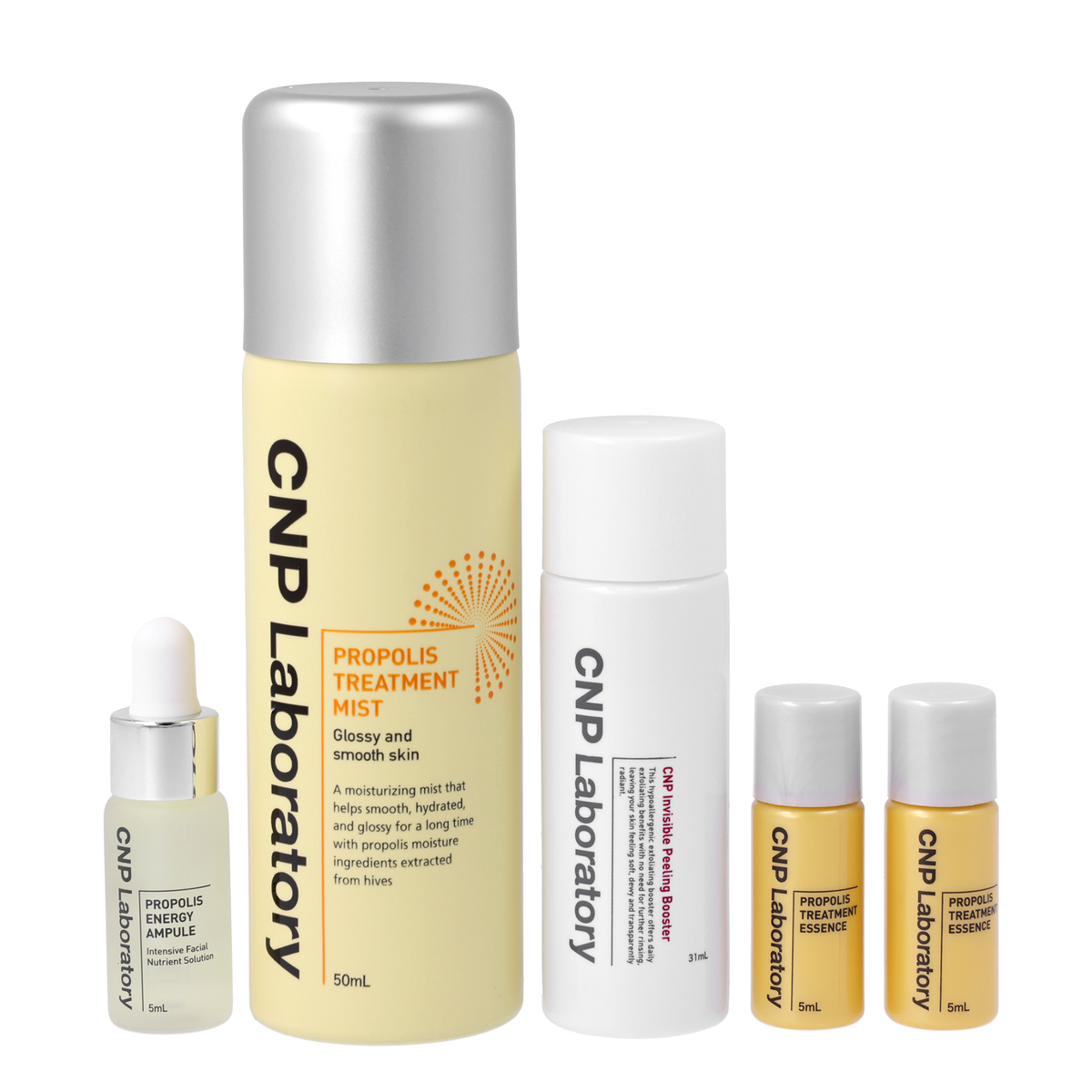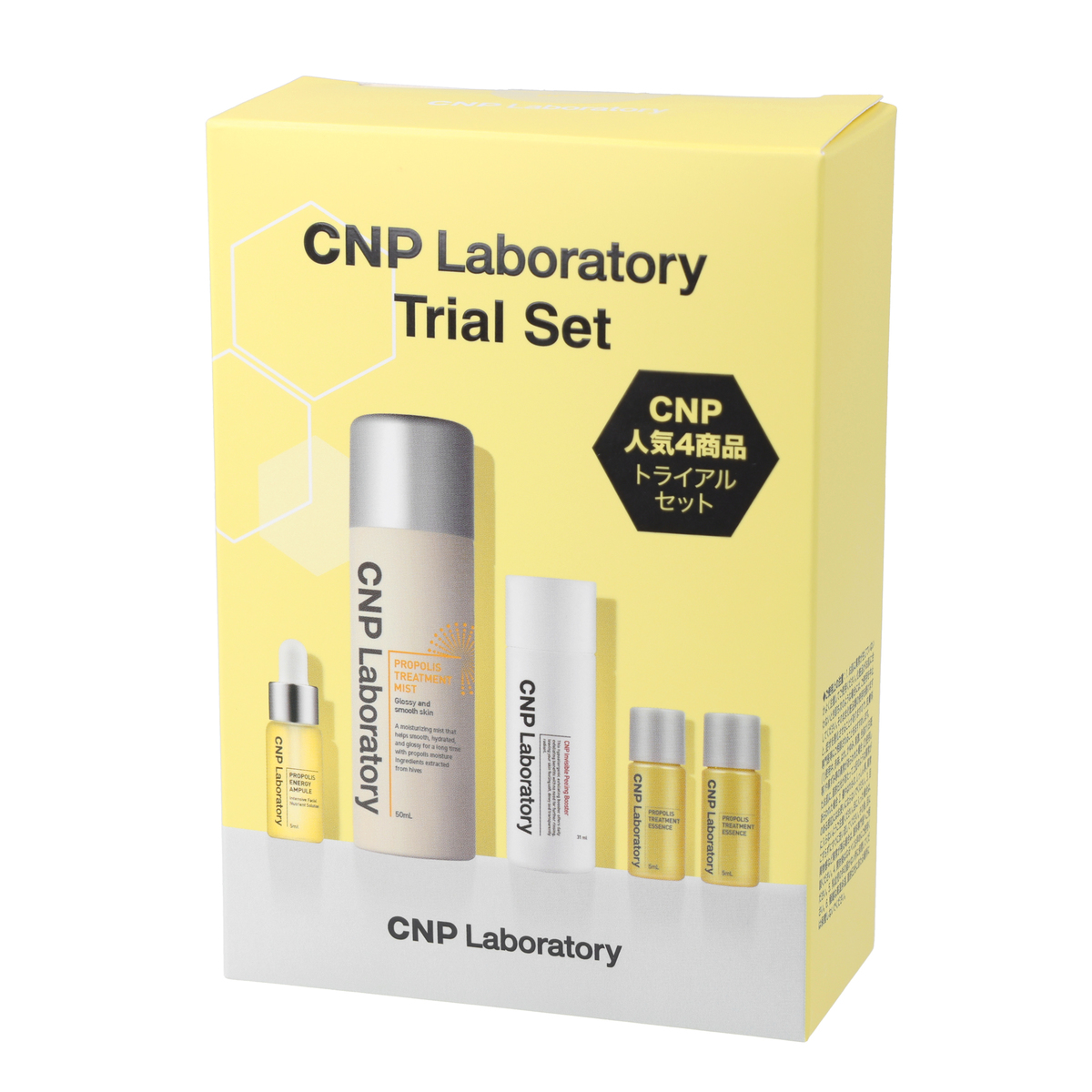 [セット内容] ・CNP Pブースター 31ml ・CNP プロP トリートメントエッセンス 5ml×2 ・CNP プロP ミスト 50ml ・CNP プロP セラム 5ml [使用方法] <CNP Pブースター> 洗顔後、最初のスキンケアの段階で、適量を顔全体にやさしくなじませます <CNP プロP トリートメントエッセンス> 洗顔後、最初のスキンケアの段階で適量を顔全体にやさしくなじませます <CNP プロP ミスト> 洗顔後又は乾燥を感じる時、目を閉じ、顔から20cm程度離し、適量をスプレーします <CNP プロP セラム> 化粧水で肌を整えた後、適量を顔全体にやさしくなじませます [注意事項] <共通> ※お肌に異常が生じていないかよく注意してご使用ください。化粧品がお肌に合わないとき即ち次のような場合には、ご使用を中止してください。そのまま化粧品類の使用を続けますと、症状を悪化させることがありますので、皮膚科専門医等にご相談されることをおすすめします (1)使用中、赤味、はれ、かゆみ、刺激、色抜け(白斑等)や黒ずみ等の異常があらわれた場合 (2)使用したお肌に、直射日光があたって上記のような異常があらわれた場合 ※傷やはれもの、しっしん等、異常のある部位にはお使いにならないでください ※目に入らないようご注意ください。目に入った場合は、こすらずにすぐに洗い流してください。その後、目に異物感など異常が残る場合は、眼科専門医へご相談ください ※開封後はなるべくお早めにご使用ください ※乳幼児の手の届かない所に保管してください ※極端な高温多湿、直射日光にあたる場所には保管しないでください <CNP プロP ミスト> ※高温に注意 (窒素ガス使用) ※加圧されている製品のため、下記の注意を守ること ・温度が40度以上になる所に置かないこと ・日の中に入れないこと ・使い切って捨てること 【韓国製】 [成分] CNP Pブースター: 水、グルコノラクトン、プロパンジオール、アルギニン、コハク酸ジエトキシエチル、パンテノール、BG、グリセリン、キサンタンガム、ラウリン酸ポリグリセリル-10、アラントイン、ミリスチン酸ポリグリセリル-10、EDTA-2Na、ペンチレングリコール、1,2-ヘキサンジオール、フユムシナツクサタケエキス、ポリグルタミン酸、カワラタケエキス、 クエン酸、ヒアルロン酸Na、フルクトース、尿素、水酸化Na、ニオイテンジクアオイ花油、β-グルカン、マルトース、塩化Na、乳酸Na、PCA-Na、トレハロース、クエン酸Na、グルコース、ソルビン酸K、安息香酸Na CNP プロPトリートメントエッセンス: 水、BG、DPG、グリセレス-26、1,2-ヘキサンジオール、メチルグルセス-20、パンテノール、グリセリン、ベタイン、クララ根エキス、水添レシチン、PEG/PPG-17/6コポリマー、ステアリン酸スクロース、セテアリルアルコール、ナイアシンアミド、プロポリスエキス、セリン、コレステロール、(アクリレーツ/アクリル酸アルキル(C10-30))クロスポリマー、トロメタミン、セラミドNP、トコフェロール、ポリクオタニウム-51、(ラウリルジメチコン/ポリグリセリン-3)クロスポリマー、ポリメチルシルセスキオキサン、他 CNP プロPミスト: 水、プロパンジオール、グリセリン、1,2-ヘキサンジオール、プロポリスエキス、ジメチコン、クエン酸Na、ベタイン、水添レシチン、ソルビトール、PEG-60水添ヒマシ油、セスキオレイン酸ソルビタン、クエン酸、EDTA-2Na、ニオイテンジクアオイ花油、BG、ペンチレングリコール、ヒアルロン酸、パンテノール、ヒドロキシフェニルプロパミド安息香酸、グルコノラクトン、ラクトビオン酸、パントラクトン、パルミチン酸アスコルビル CNP プロP セラム: 水、BG、グリセリン、1,2-ヘキサンジオール、プロポリスエキス、ポリソルベート20、クララ根エキス、チガヤ根エキス、ヒドロキシエチルセルロース、アルギニン、カルボマー、アラントイン、マデカッソシド、ツルニンジン根エキス、イチジク果実エキス、メリッサ葉エキス、ザクロ果実エキス、ペンチレングリコール、ヒアルロン酸Na、EDTA-2Na、ニオイテンジクアオイ花油、β-グルカン、カプリリルグリコール、クエン酸Na、ヒドロキシフェニルプロパミド安息香酸、ハチミツエキス、乳酸Na、他
