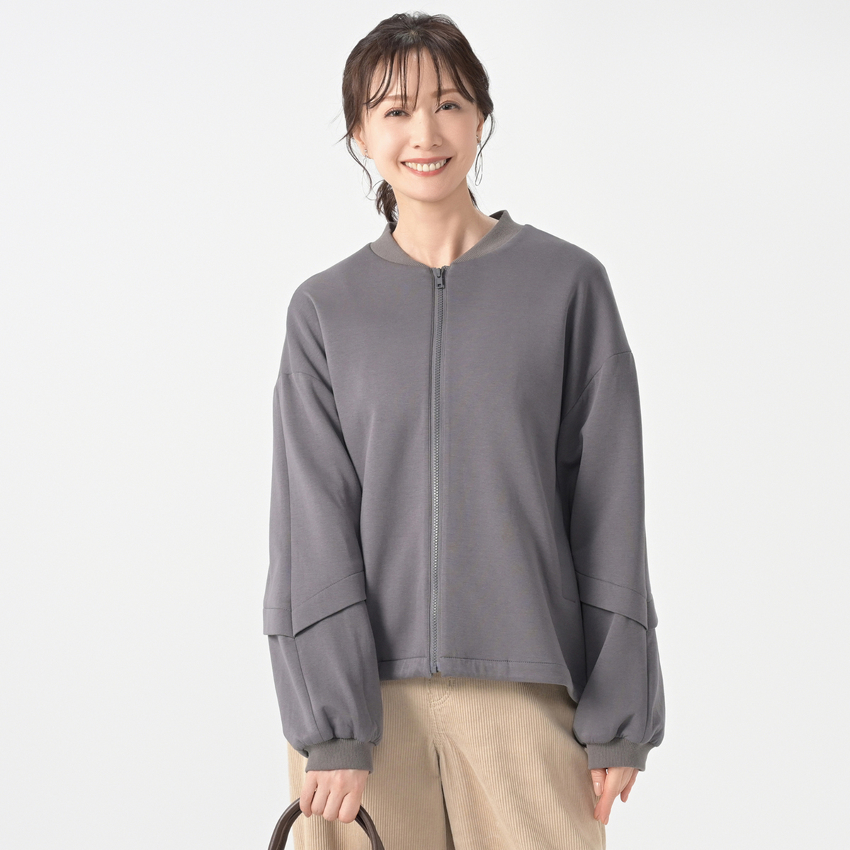 程よい生地の厚みがあるダンボール素材を使用。長いシーズン着用いただけるブルゾンです。袖に切替が入った印象的なデザインで、シンプル過ぎず、着こなしやすく仕上げています