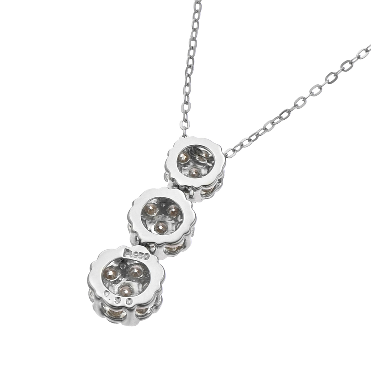 ブリラーレ厳選のダイヤモンドを21石使ったペンダント。少し大きめのダイヤモンドを中石に1石、その回りを取り巻いたフラワーのようなデザインの枠をサイズグラデーションで3つ連ねたザインです。それぞれの枠はスイングするセッティングになっています