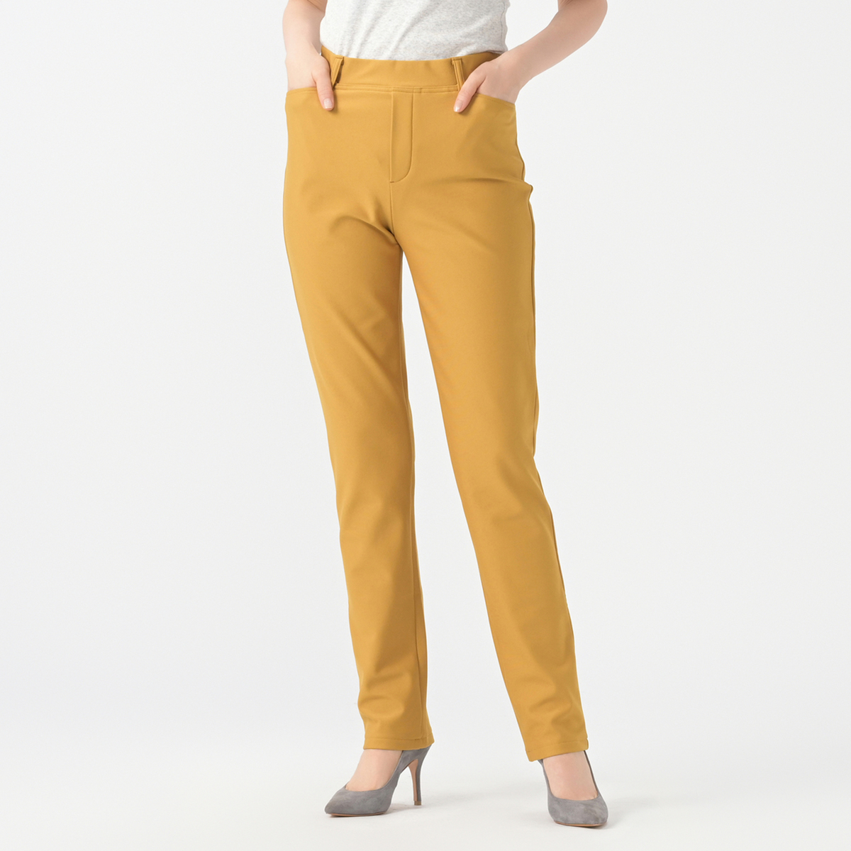 スリムながらも、タテ・ヨコ・斜めに優れたストレッチ性で、締めつけを感じにくいパンツ。ウエストは総ゴム仕様で、お腹まわりをすっぽり包み込み、立体的なパターン設計で穿き心地にもこだわっています