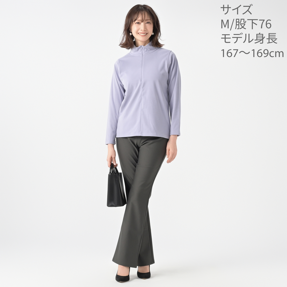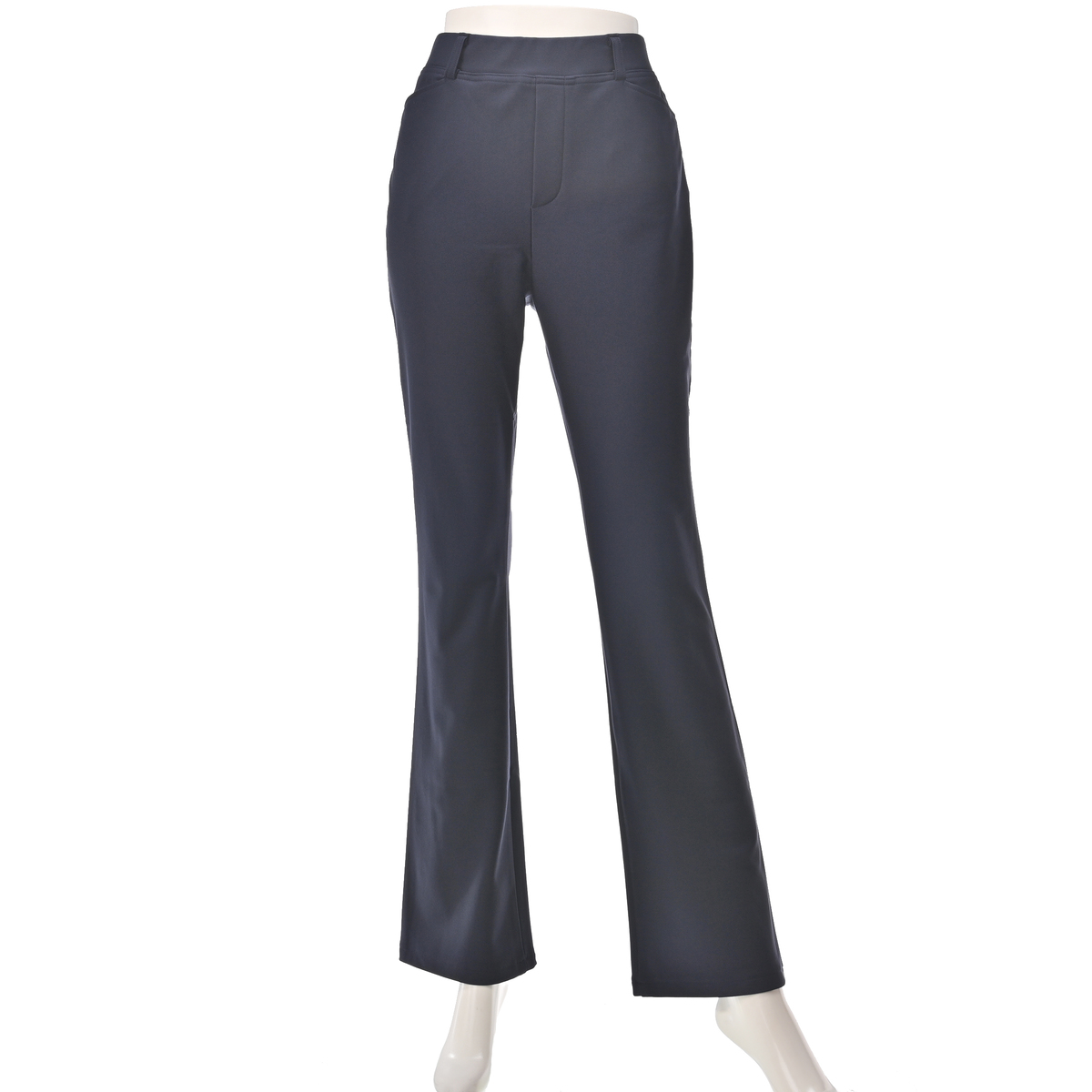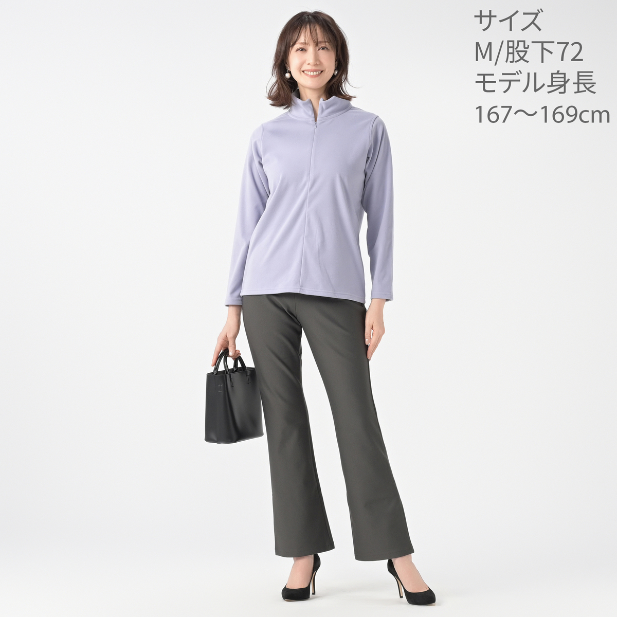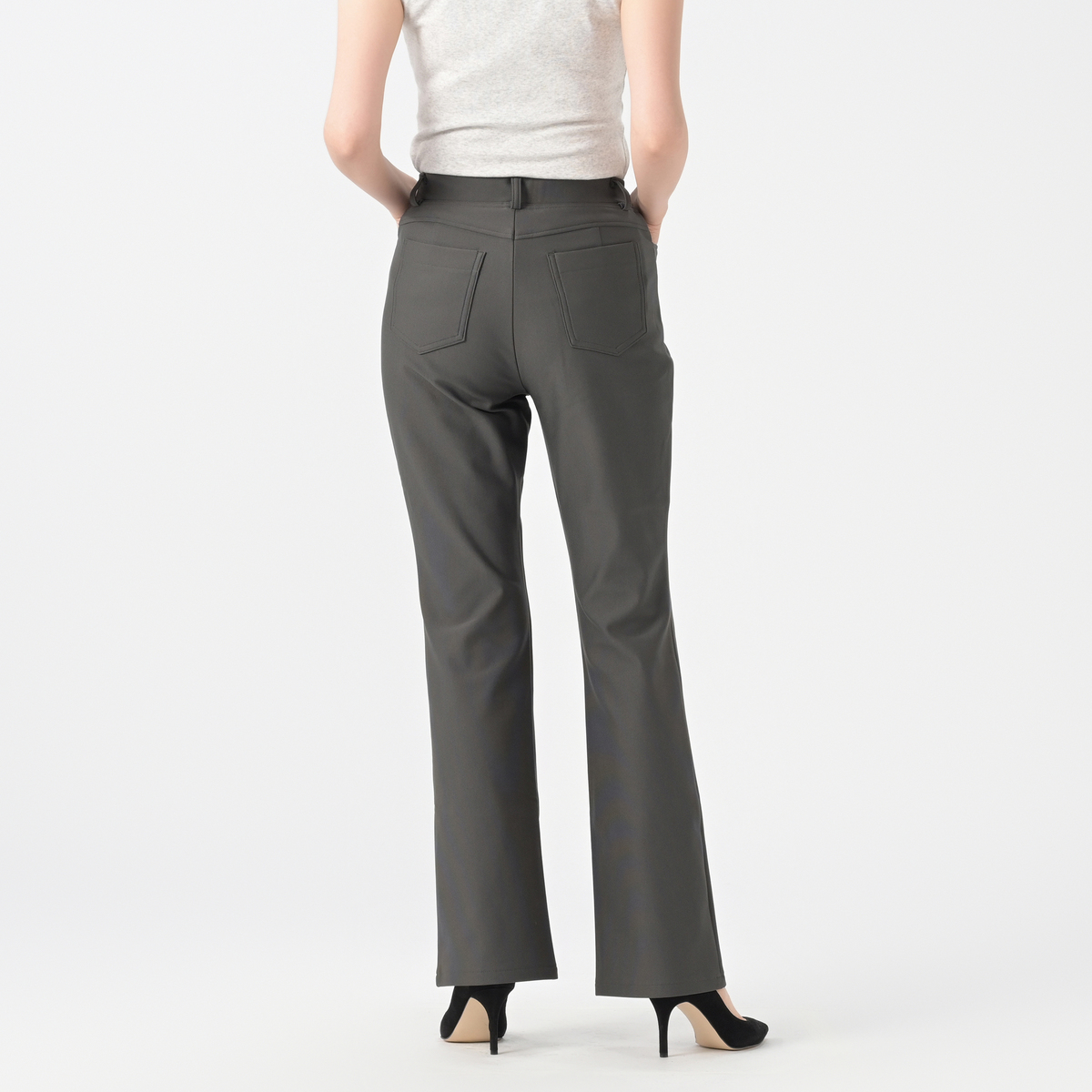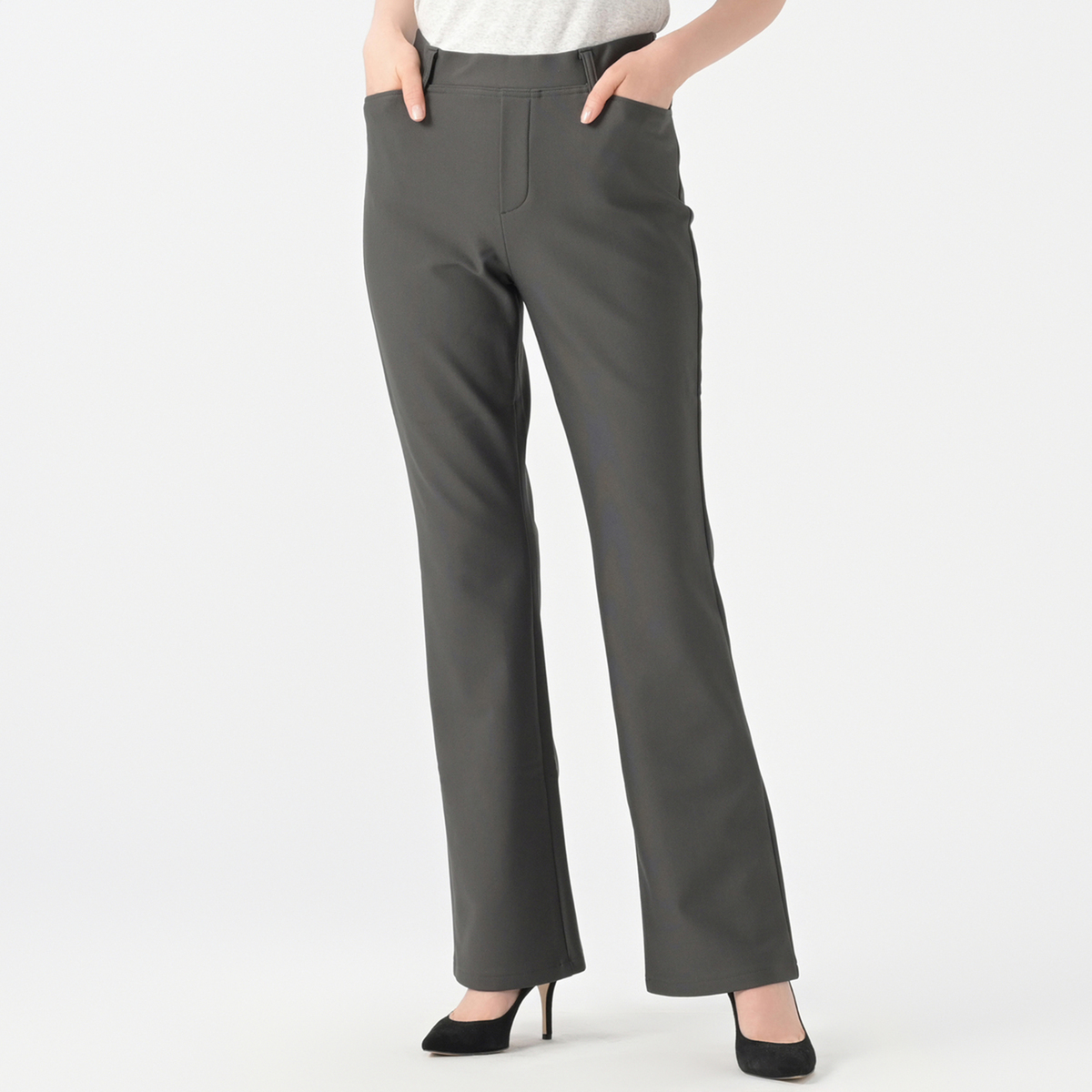 脚をすっきり見せてくれるブーツカットパンツ。スリムながらもストレッチ性に優れた素材を使い、締め付け感を感じにくく快適な穿き心地です
