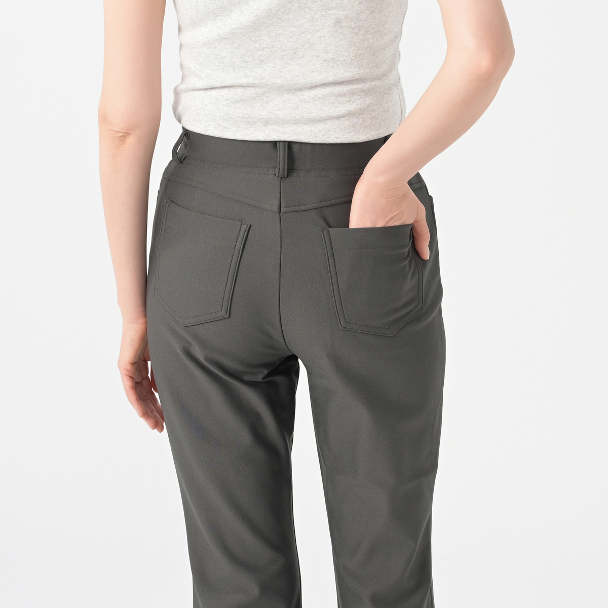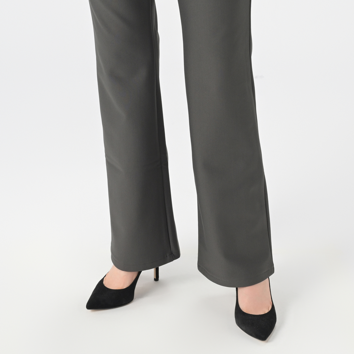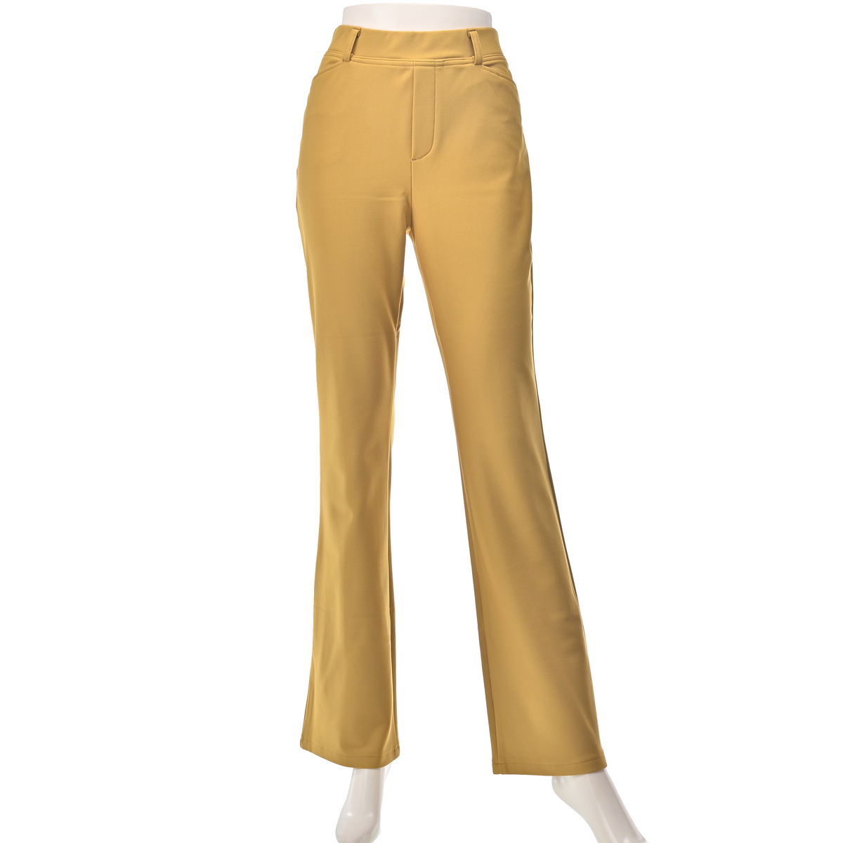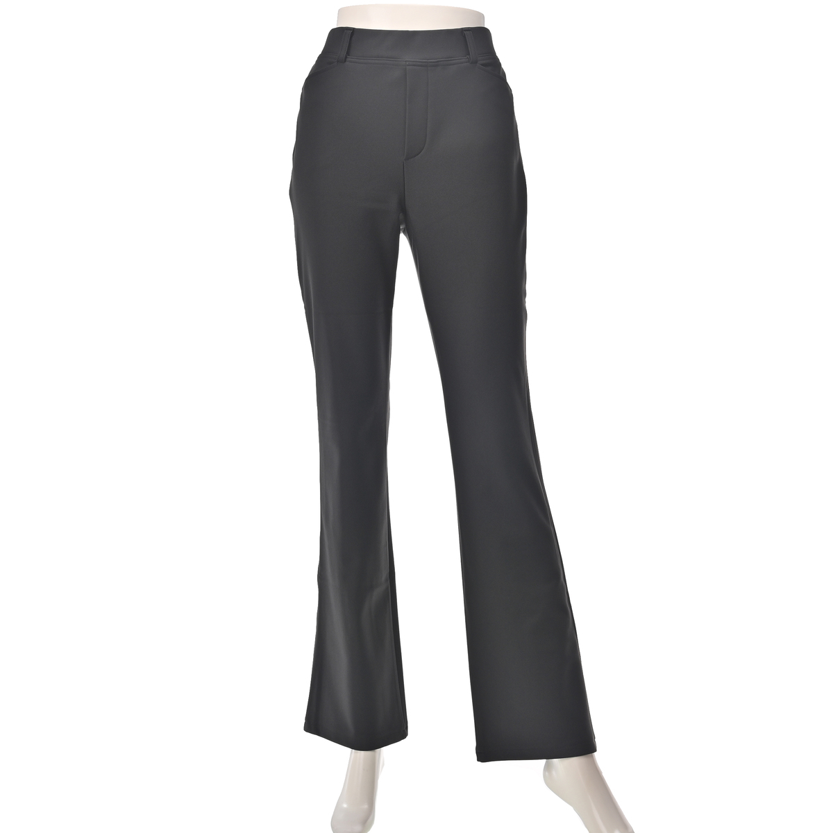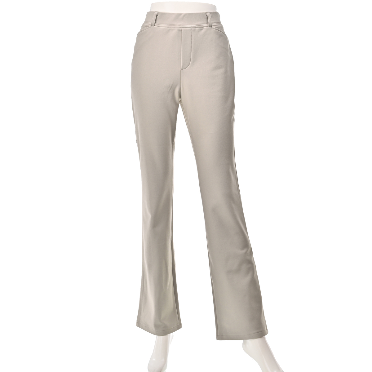 脚をすっきり見せてくれるブーツカットパンツ。スリムながらもストレッチ性に優れた素材を使い、締め付け感を感じにくく快適な穿き心地です