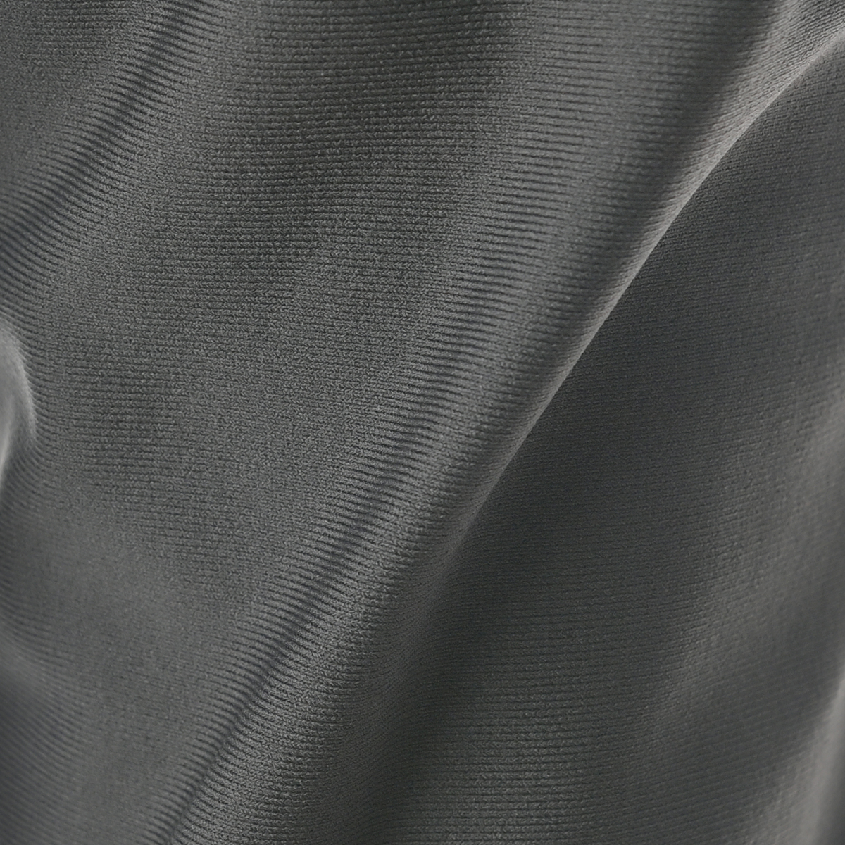 素材は蝶理(株)開発の光吸収発熱性のある機能素材「スマートブラック(R)」、ポリウレタンに360度全方向にしっかり伸縮する旭化成(株)の「ロイカ(R)」を使用したオリジナルハイテンションニット。UVカット、防ピリング、着用時しわになりにくい機能性も備えています