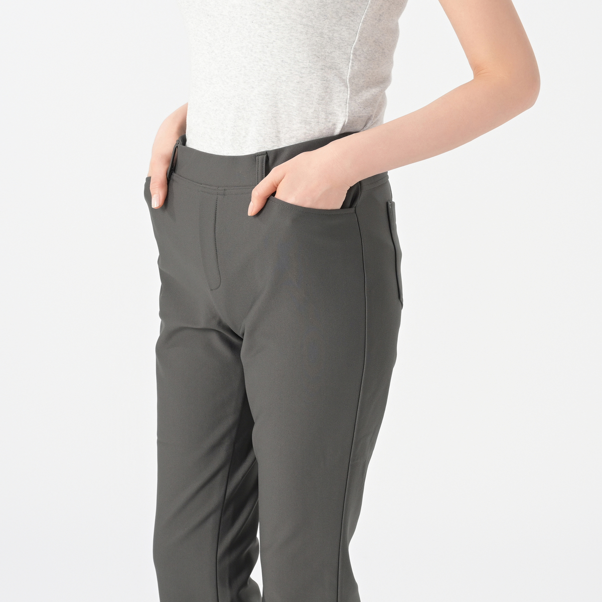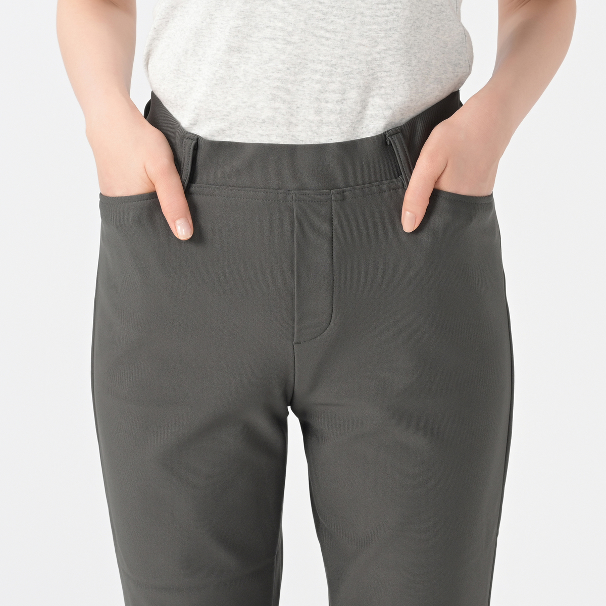 ウエストは総ゴム仕様で、身体のラインに沿う立体的なパターン設計。お腹周りをすっぽり包み、すっきり穿きこなせます。また、お尻周りに施したダーツが丸みのあるヒップラインを演出してくれます