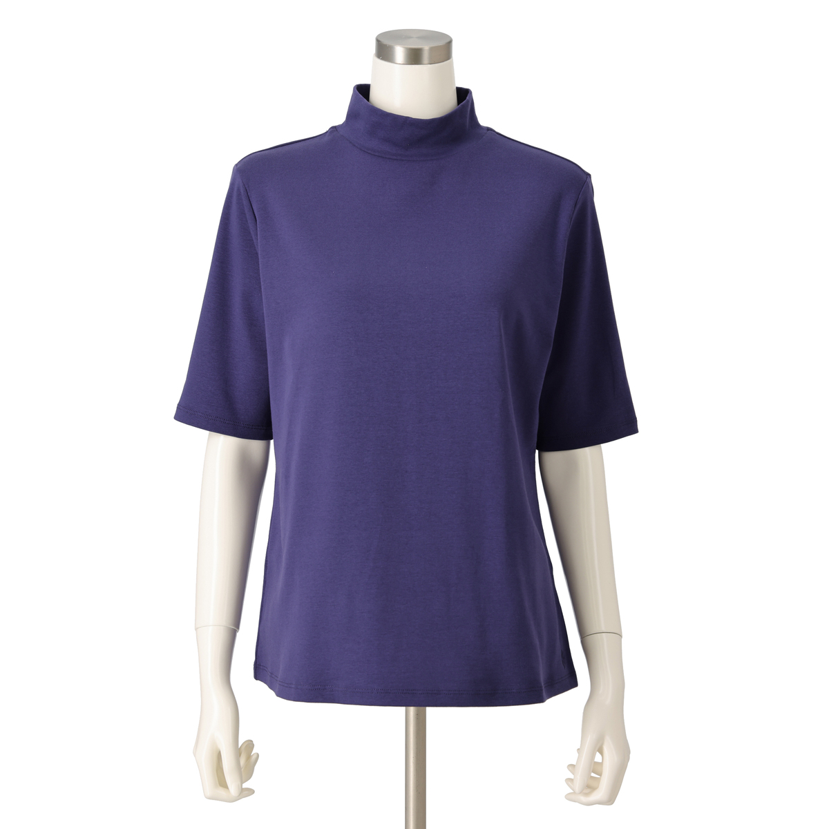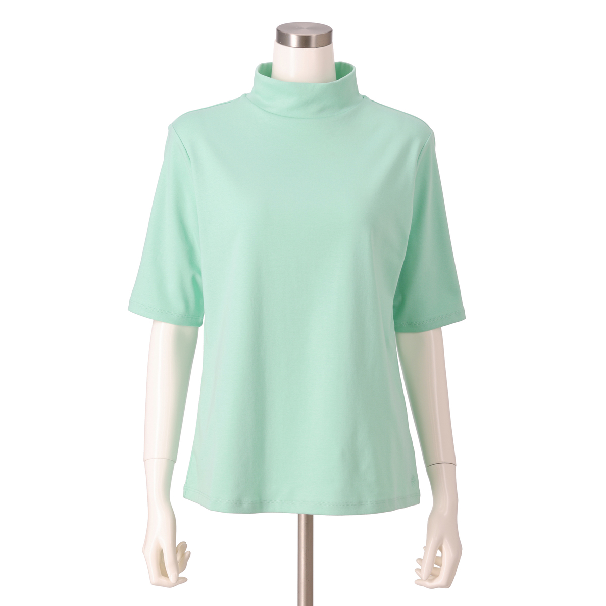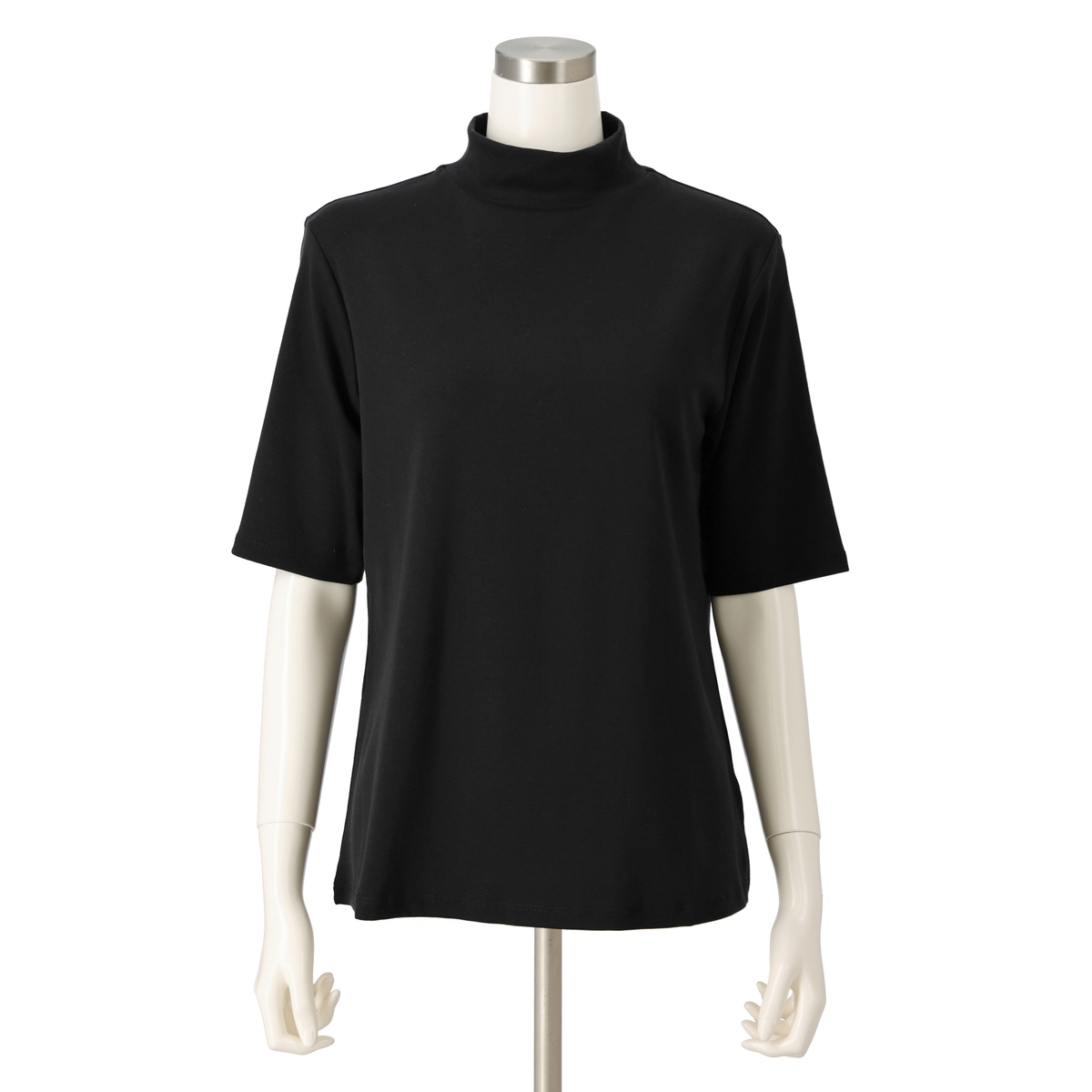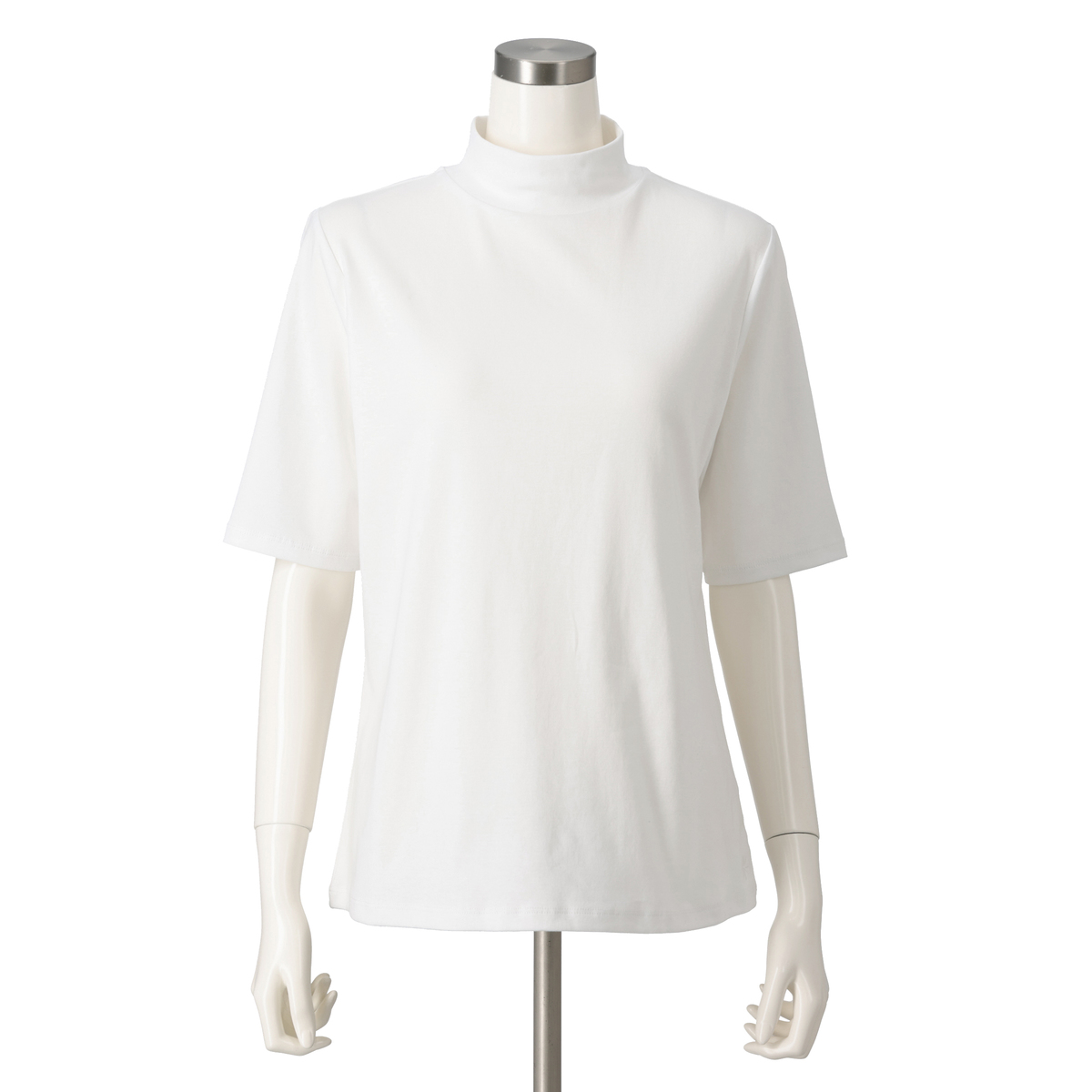 シルキーなコットン混素材で作られた、肌触りの良い半袖ハイネックプルオーバーです
