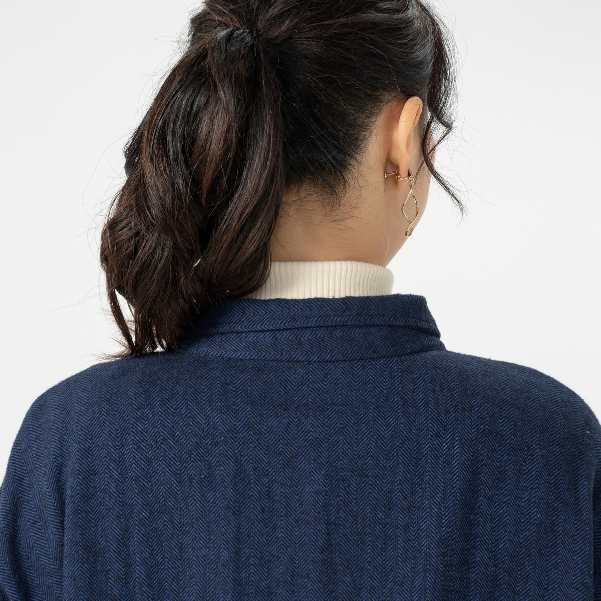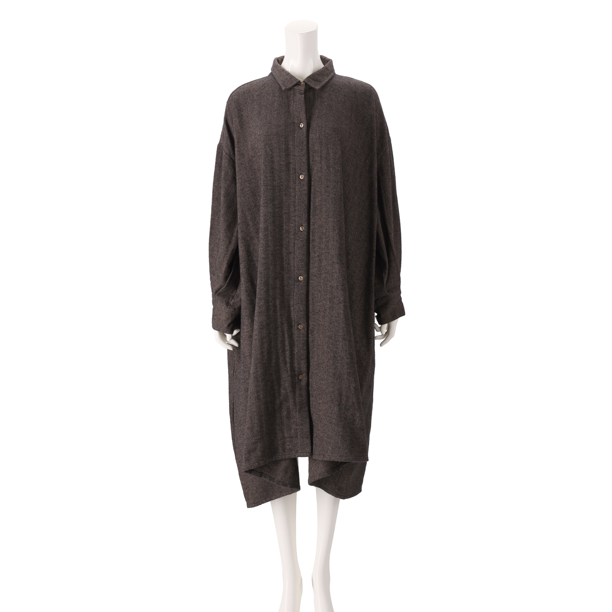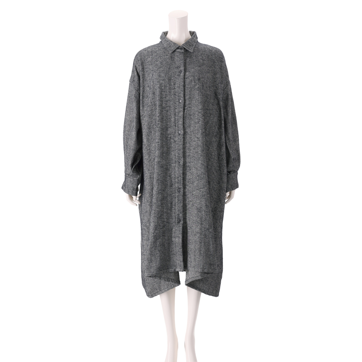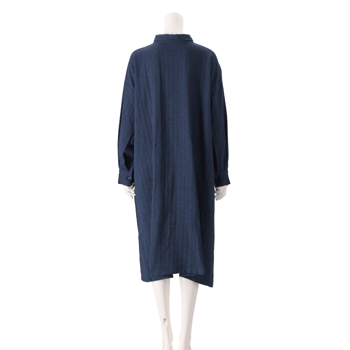 コットン混ツイードで仕立てたワンピースジャケット。一枚でシンプルなワンピースとしてはもちろん、ロングジャケットとしてレイヤードスタイルも楽しめます