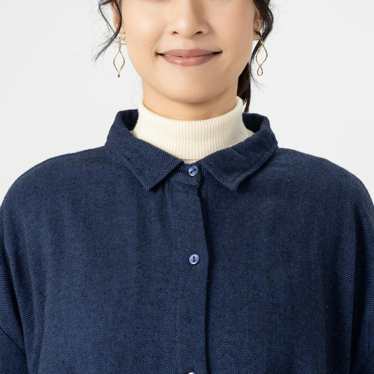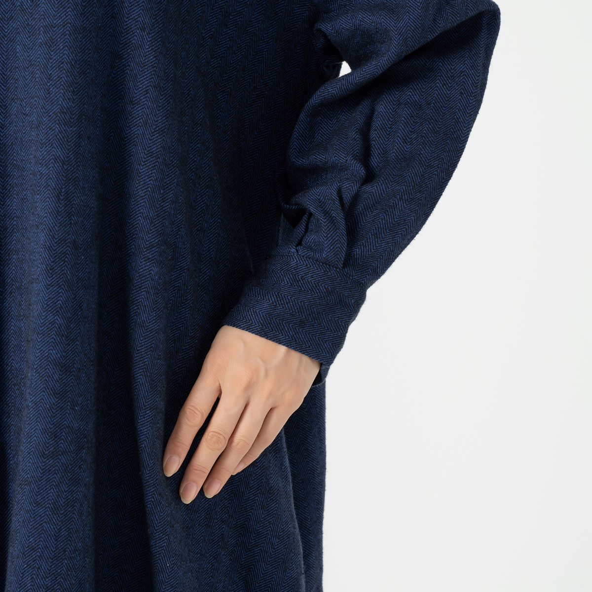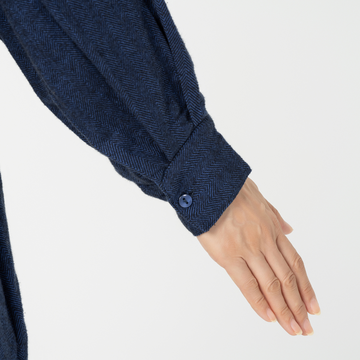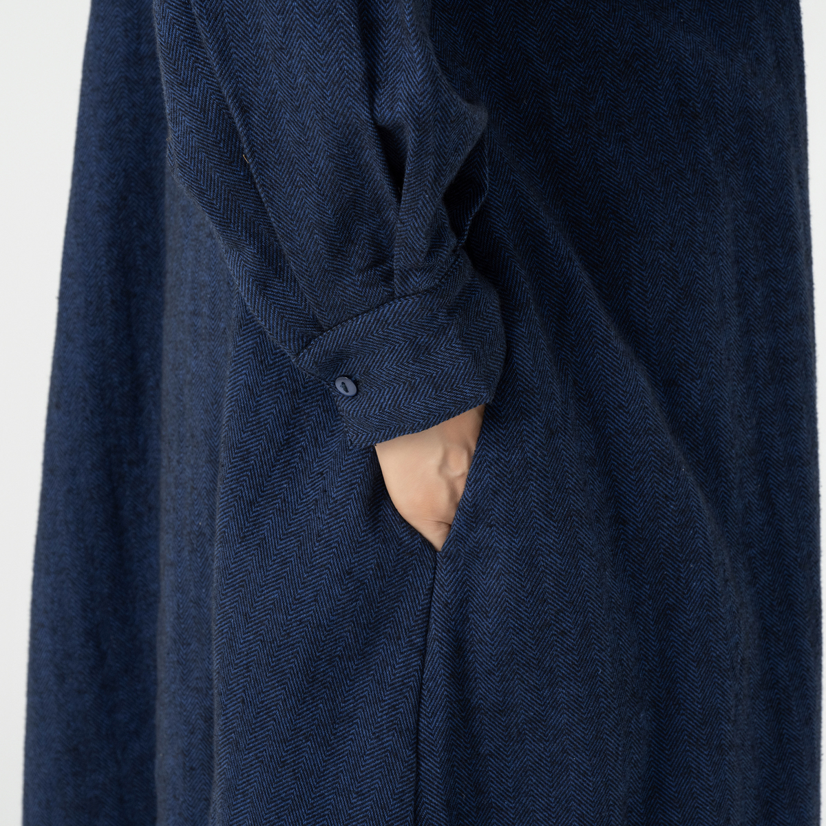コットン混ツイードで仕立てたワンピースジャケット。一枚でシンプルなワンピースとしてはもちろん、ロングジャケットとしてレイヤードスタイルも楽しめます