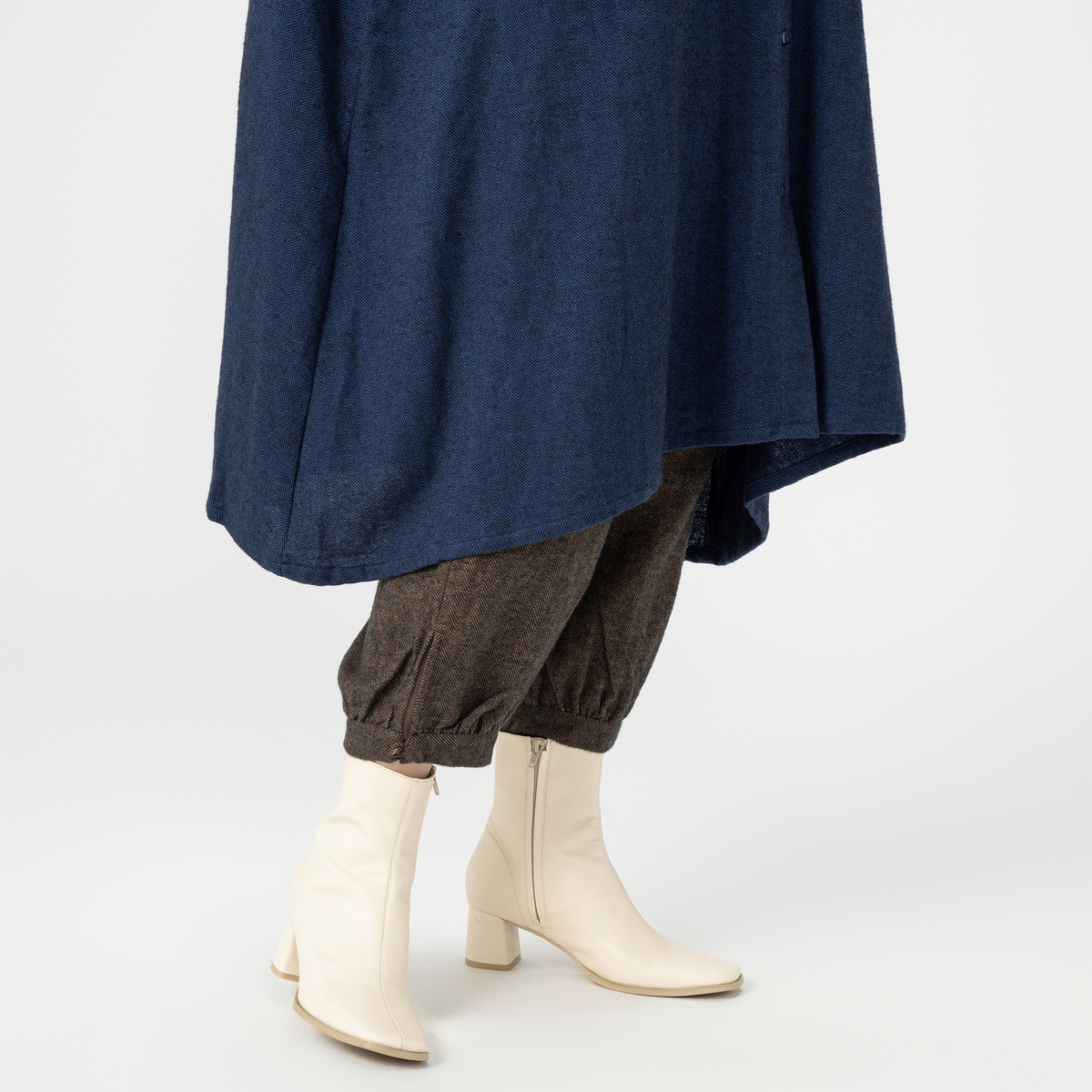 インド綿混素材を使用。暖かみがあり、奥行きを感じるコットン混ツイードながら蒸れにくく、季節の変わり目にぴったりの一枚です。両サイドに縫い目に沿ってポケットがあり、便利です