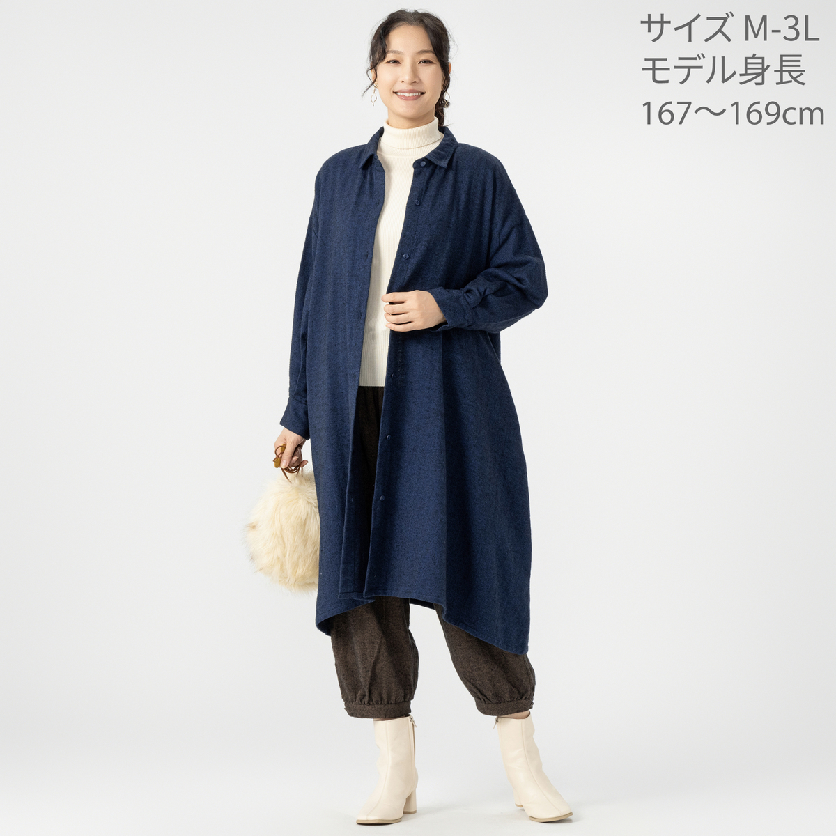 [商品寸法(ヌード寸法)cm] サイズ バスト 着丈 裄丈 M-3L : 140(79〜108) 108 83 [素材] 綿96%、レーヨン4% [お手入れ] 洗濯機洗い可 [注意事項] ※商品寸法の誤差は多少発生します。ご了承下さい ※コットン混ツイードの独特な生地・織り方の特徴により、特有の匂いがする場合があります。気になる方は着用前に洗濯してからご着用いただくことををお勧めいたします ※蛍光増白剤配合洗剤使用禁止 ※アイロンは当て布使用 ※この製品はインド製の生地を使用しています。染め、織りむら等による粗野感と着心地を特徴とし、独特な(製品は1点1点多少表情が違います)色目、風合いを持っています ※水洗いにより多少色落ちする場合がありますので白物と分けてお洗い下さい。一度お洗い頂いてからのご使用をお薦め致します ※濡れたまま他の物と重ねておくと移染しますので洗濯後は形を整えて早めに干して下さい ※乾燥機のご使用はお避け下さい ※生成、染色商品には無蛍光洗剤をご使用下さい ※性質上、摩擦により毛羽立ち、毛玉が出来やすい商品です ※お洗濯により多少縮む場合があります。ご了承下さい ※アイロンは当て布を使用して下さい ※この商品は自然の風合を求めた特別な製品の為色むら織りむら等が製品の特性です ※生地の特性により縫い目の部分をご注意の上お取扱いください ※この製品は素材の特性上水分や汗、摩擦などにより色落ちすることがありますのでご着用の際は十分ご注意ください 【インド製】