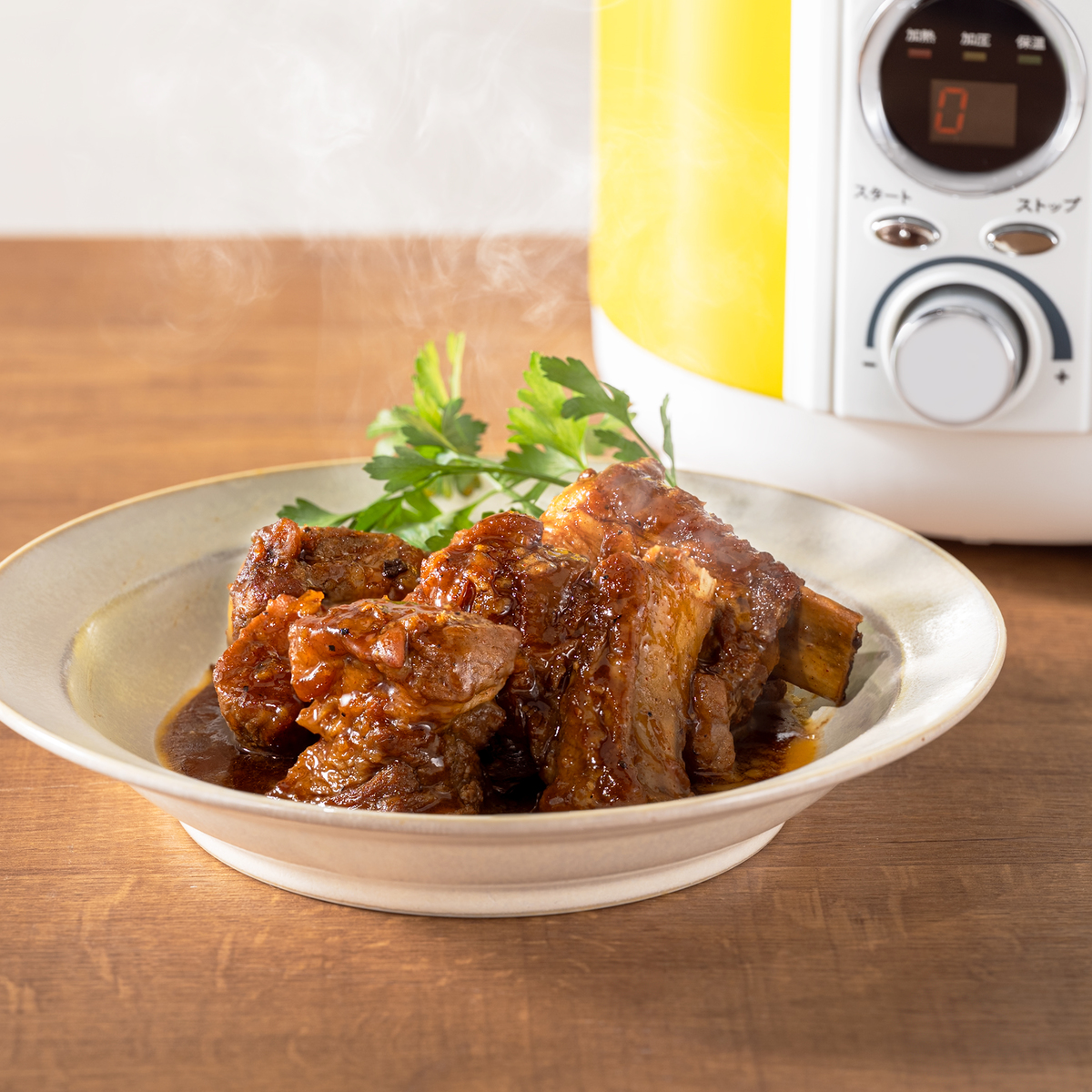 むずかしい火加減や時間を計る手間は不要。材料を入れてタイマーをセットしたら、加熱、加圧、減圧までほったらかし(自動)で調理できる電気圧力鍋です。お手入れは、ふた、内がま、蒸気水受けは外して丸洗いできます