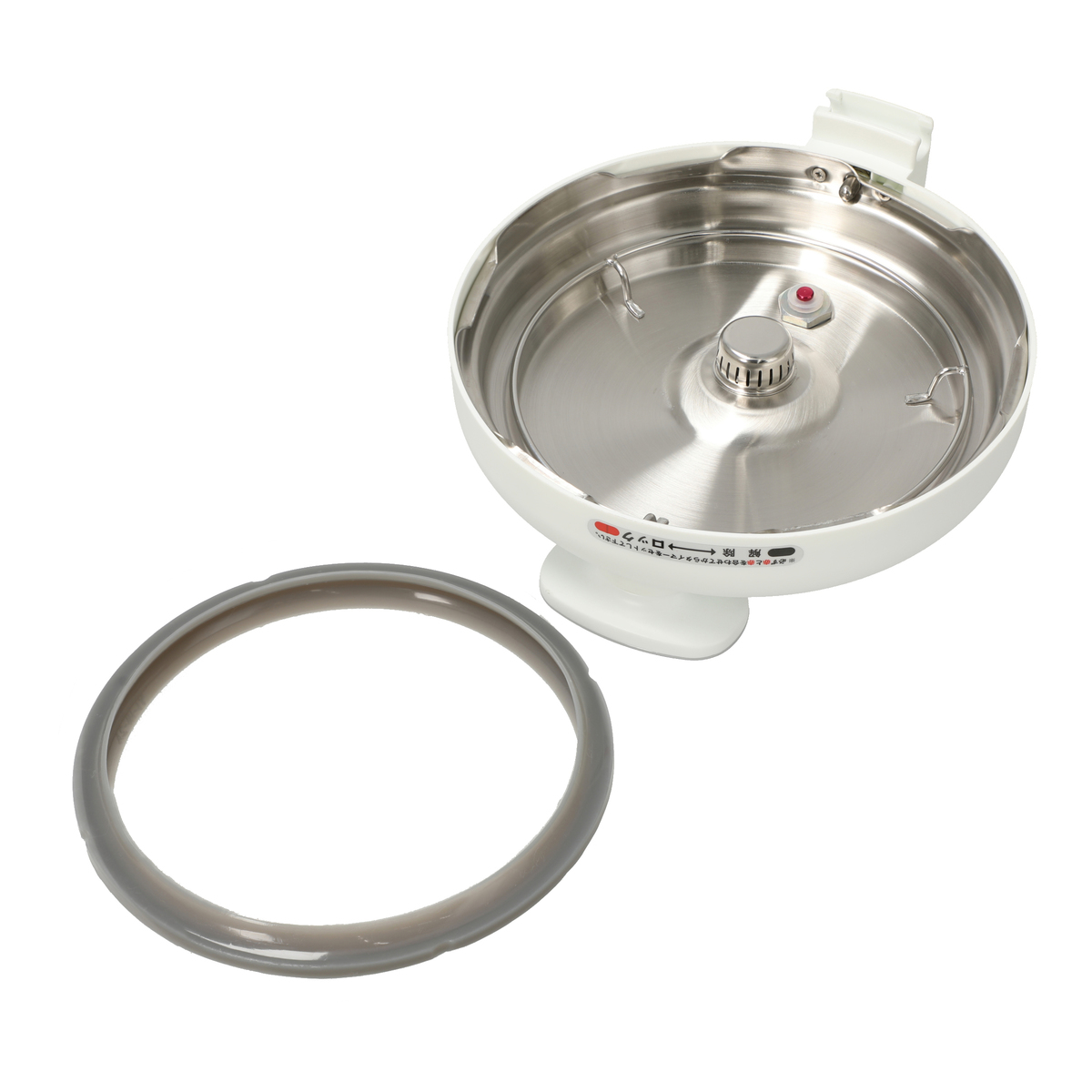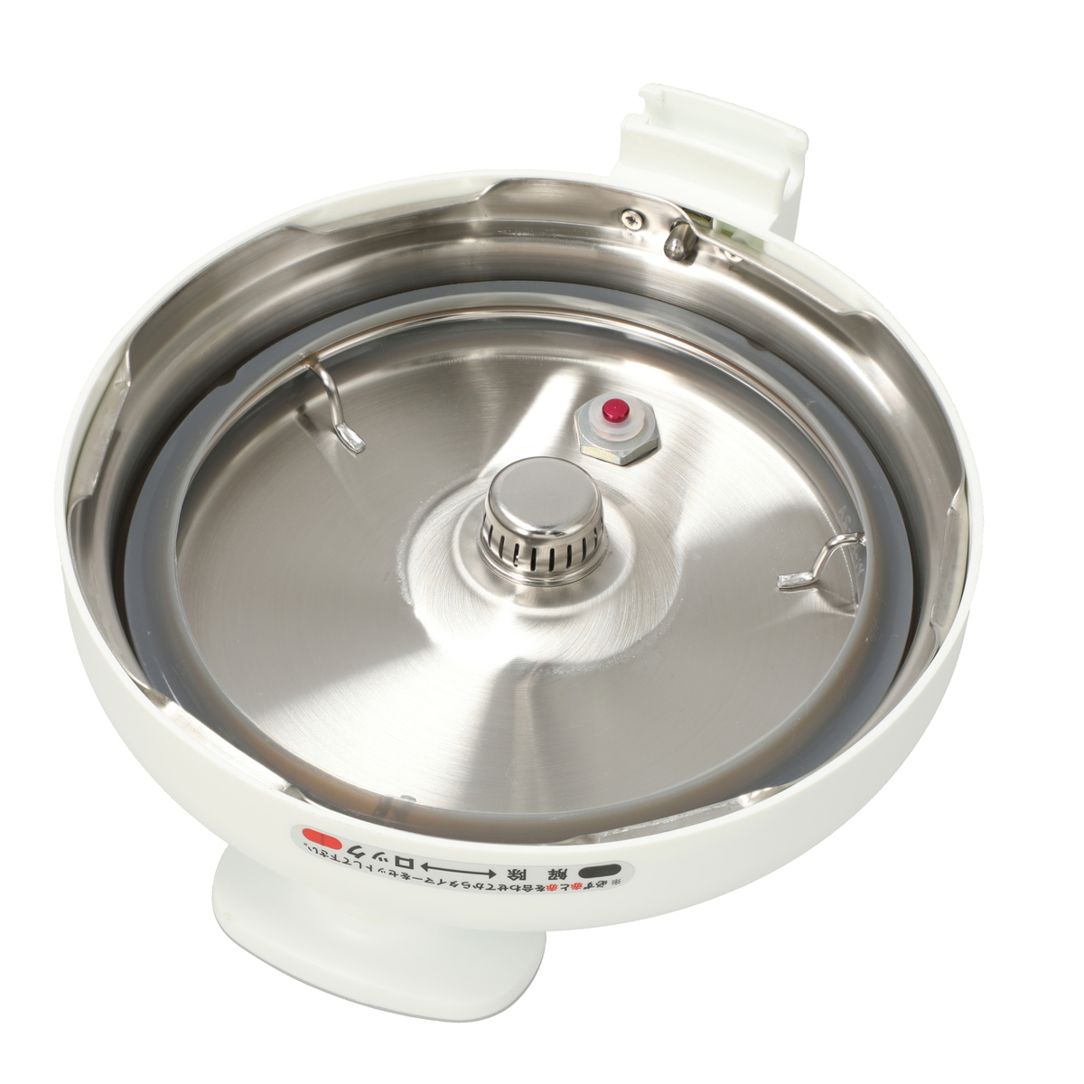 [商品内容] ・本体 ・計量カップ ・しゃもじ ・蒸皿 ・蒸気水受け ・安全弁おもり(ふたにセット済み) ・電源コード ・レシピブック ・予備用浮き圧力弁シール2個(同封注意書に添付) [サイズ(約)] 幅26.8×奥行26.0×高さ25.5cm [重量] 約2.7kg [容量] 調理MAX:1.2L 豆類MAX:0.6L 呼び容量:約2.0L [コード長さ] 約1.5m(マグネット式プラグ) [消費電力] 600W [材質] SUS、PP ■取り扱い説明を充分にご確認の上、ご使用下さい 【中国製】 [注意事項] ※調理中や調理直後、ふたが熱くなっている際に「密封」「排気」の文字をタオルなどでこすらない ※内がまで米を洗わない。強い衝撃を与えない。フッ素加工を傷める原因になります。内がまが変形すると、ふたが閉まらなくなったり蒸気漏れなどの原因になります。新しい内がまをお買い求めください ※ふた感知スイッチに磁石、金属、鉄類を近付けない。磁界および強磁性体の近くで使用しない ※電源プラグにホコリが付着している場合はふきとる ※定格15A以上のコンセントを単独で使う ※交流100V以外では使用しない ※電源プラグはコンセントの奥までしっかり差し込む ※改造、分解しない。また修理技術者以外の人は修理しない ※電源コードや電源プラグが傷んだりコンセントの差し込みがゆるいときは使用しない ※電源コードを傷つけたり、破損したり、加工したり、無理に曲げたり、引っ張ったり、ねじったり、たばねたり、重いものをのせたり、挟み込んだり、高温部に近づけたりしない ※ぬれた手で電源プラグを抜き差ししない。スイッチを押さない ※子供や介護の必要な方だけでは使わない ※器具用プラグ(磁石式)の先端にクリップや金属質のものを付着させない ※水につけたり、水をかけたりしない ※不安定な場所や熱に弱い敷物の上では使わない ※本体を含むすべての部品に、食器洗浄器、食器乾燥機は使用しない ※加熱中は無理にふたを開けない ※レトルトパックやアルミパックなどを入れて調理しない ※重曹や炭酸、多量の油など急激に熱反応して発泡するものは使用しない ※浮き圧力弁や安全弁おもりに顔や手を近づけない ※カレーやシチューなど粘りけの強いものを入れて加圧調理しない ※器具用プラグをなめさせない ※蒸気を排出してからふたを開ける ※調理容量を超えて調理しない ※電源プラグを抜くときは電源コードをもたずに必ず電源プラグをもって引き抜く ※専用コード以外は使わない ※火気や湿気のあるところ、直射日光の当たる所で使わない ※使用時以外は、電源プラグをコンセントから抜いておく ※壁や家具の近くで使用しない ※調理する際は排気弁カバーをつける ※内がまを直火にかけたり、電子レンジやIH調理器具など他の熱源で使用しない ※調理以外に使用しない ※持ち運ぶ際は本体の取っ手を両手で持ちふたのハンドルは使用しない ※ごはんつぶなど異物をつけたまま使わない ※空だきや過剰な加熱をしない ※別の調理なべなどを入れて使わない。故障の原因になります ※調味液、調味料は合わせてよく溶かしてから入れる。生煮えになるなど、うまく調理ができない原因になります