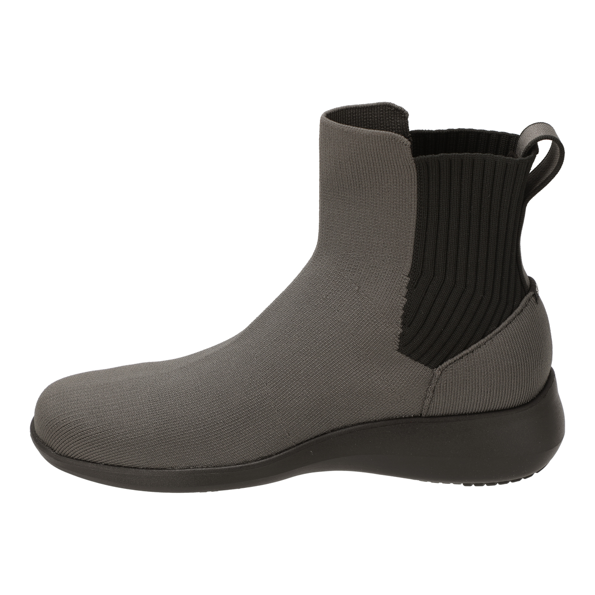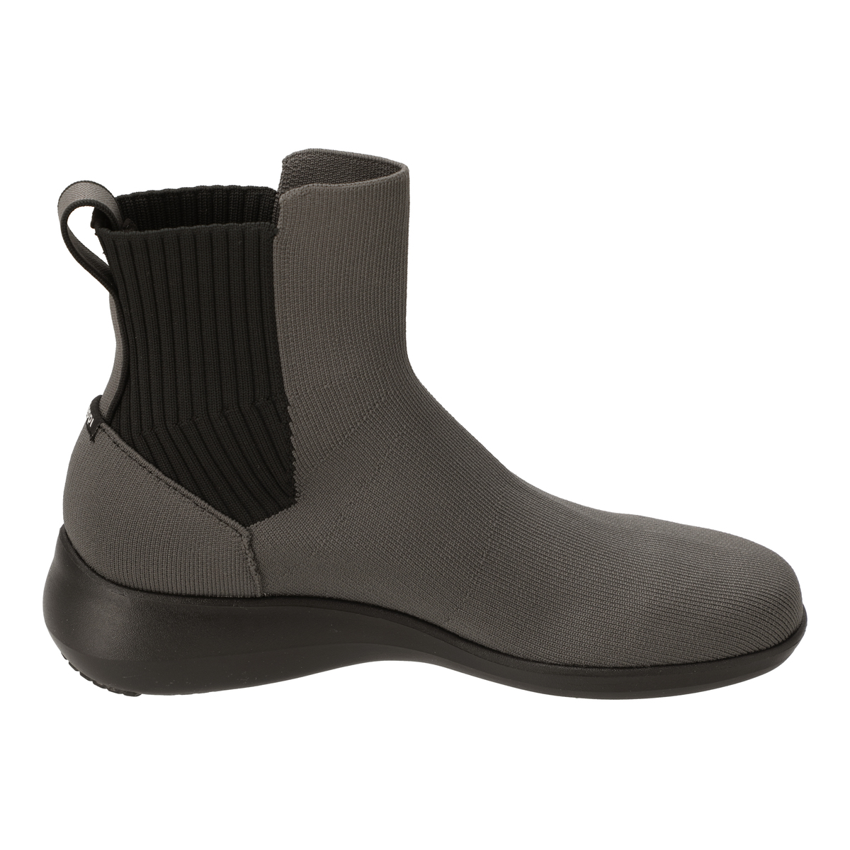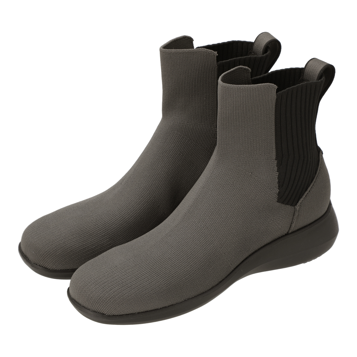 スニーカーの履き心地で、シックにもカジュアルにも履けるスニーカーブーツ。サイドゴアでトレンド感もありながら、ベーシックアイテムとしてスタイリングを選ばないデザインです。ニットなのでしゃがむ動作もスムーズで、ソックスのようにスルッと履けるように筒に伸縮性をしっかり持たせています