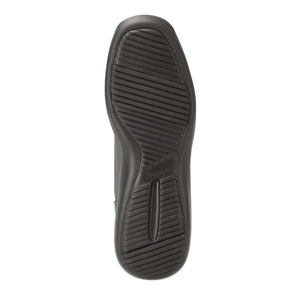 トレンドのボリューム感のある軽量ソールは、ラバーつきでグリップもしっかりあります。ややフレアで船底のような形状でかかとのブレを抑え、歩行がスムーズ。甲部分はリブになっており、踏み込み時に伸縮するので足が痛くなりにくいです