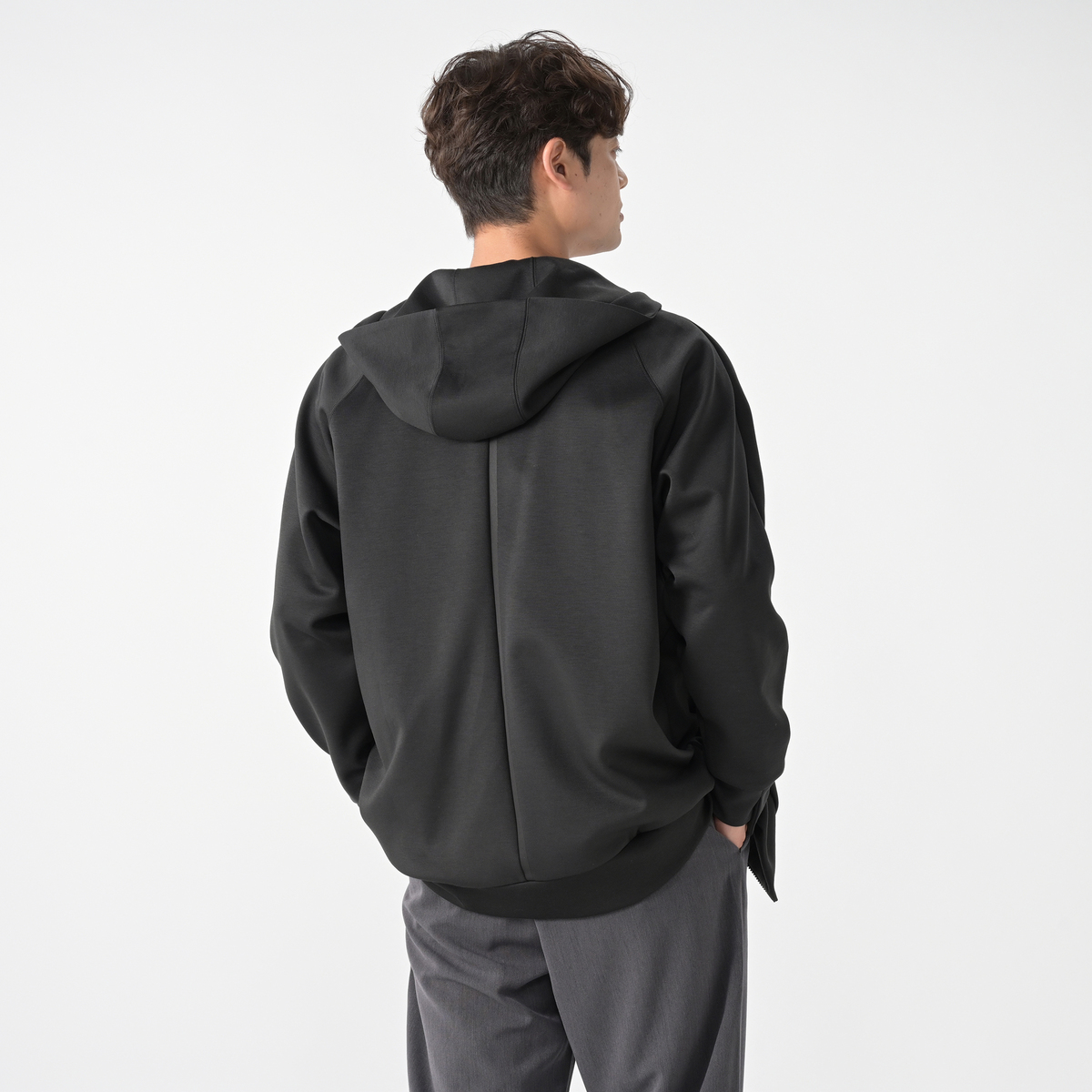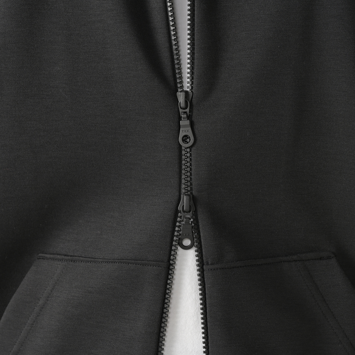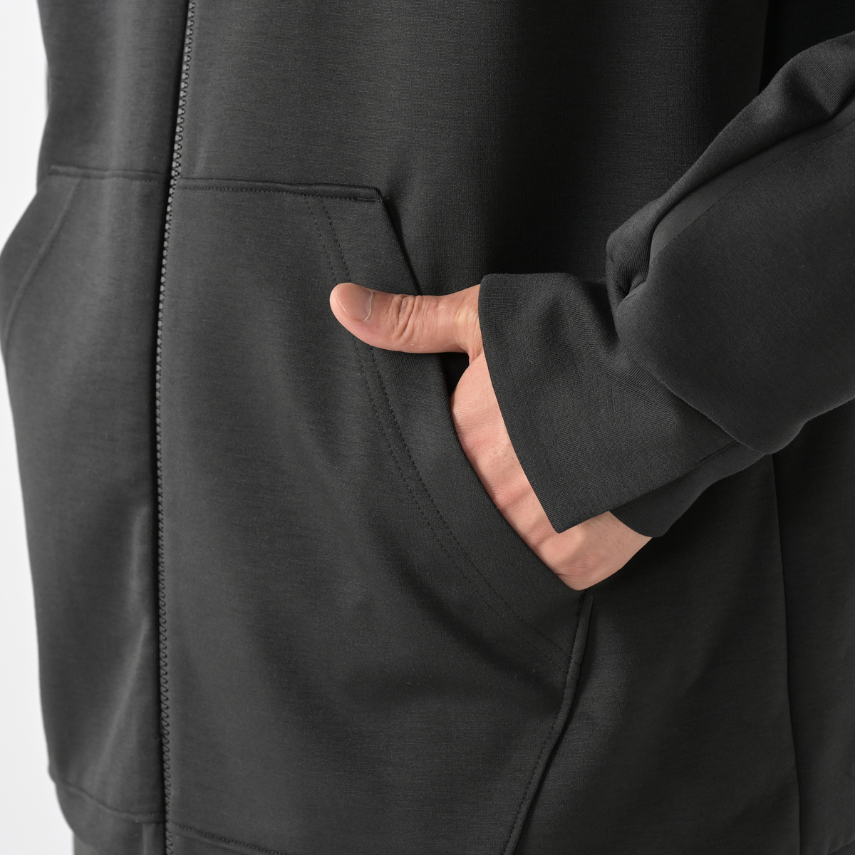 オリジナルダンボールニットのロングパーカー。着丈はたっぷりとして、フロントはファスナー開閉。テープ加工をして高級感を出し、前身頃にはポケット、両袖口はベンツ仕様にして、シンプルながらも細部にこだわりを散りばめ、Lucca Uomo alla modaらしくデザインしています