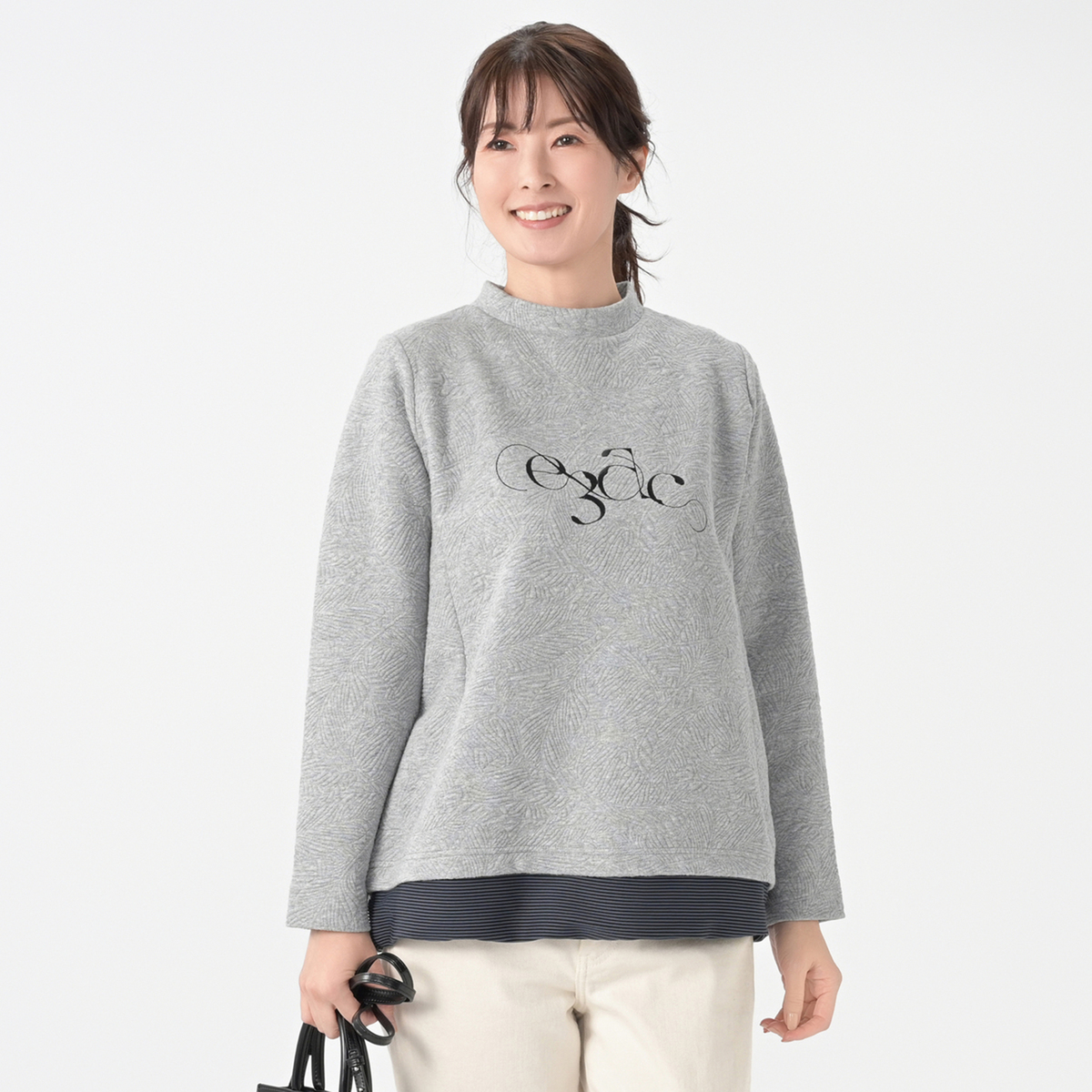 ふくれジャガードカットソーを使ったプルオーバー。ぷくぷくとした可愛らしい凹凸感と心地良い肌触り。ハイネックのデザインで、ドットボタンの開閉により着脱が可能です。ふわりとした素材感で軽やかにお召しいただけます