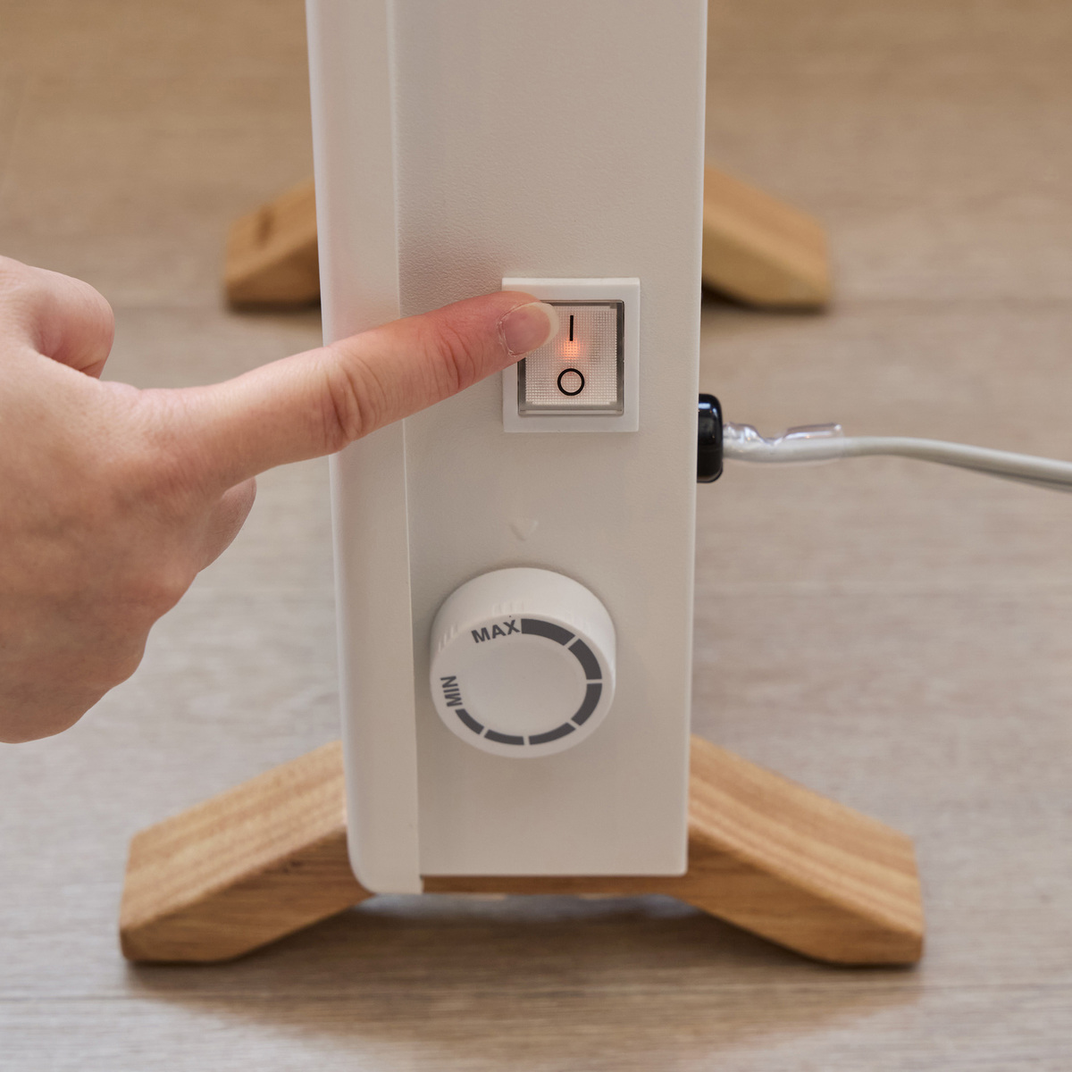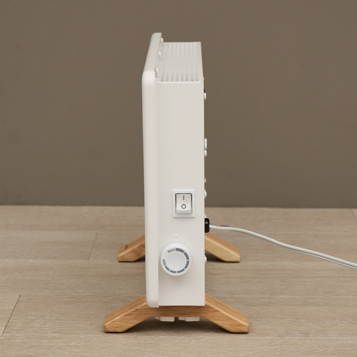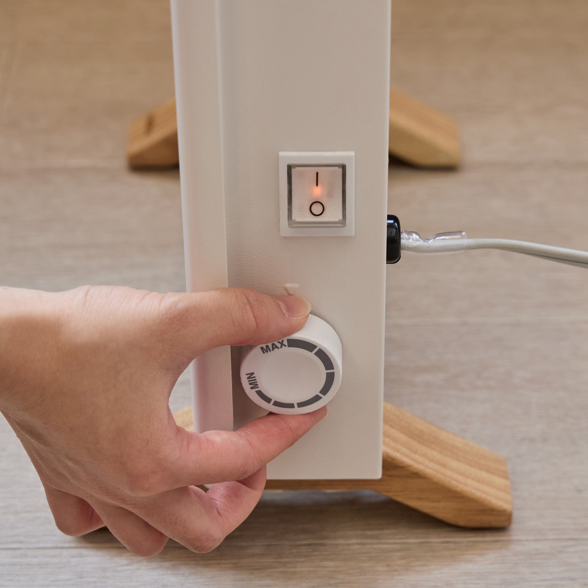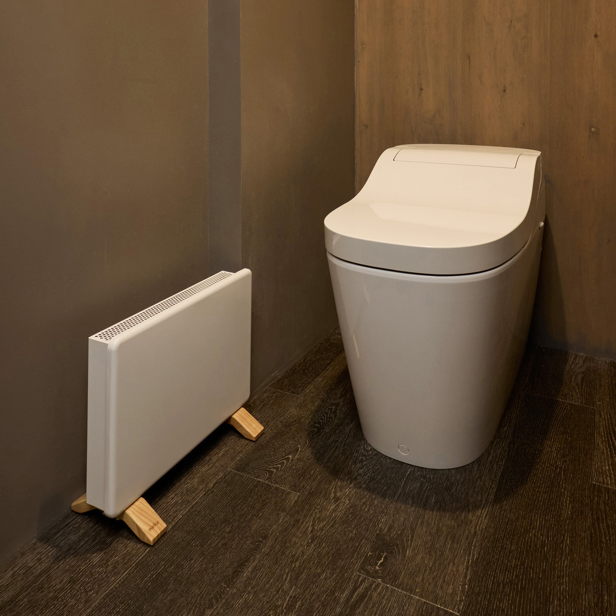 ゆっくりと時間をかけて部屋を暖めるしくみで、冬の陽だまりにいるような自然な暖かさを感じることができる暖房です。木目と白を基調とした、お部屋に馴染むシンプルデザインで、スタンド部分は天然木を使用。個体による木目や節や色味など、1つ1つの風合いも楽しめます