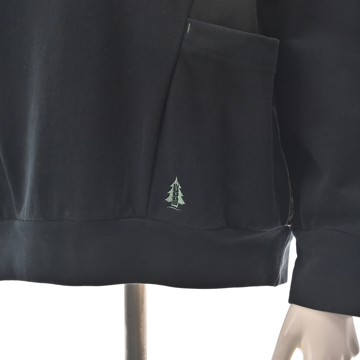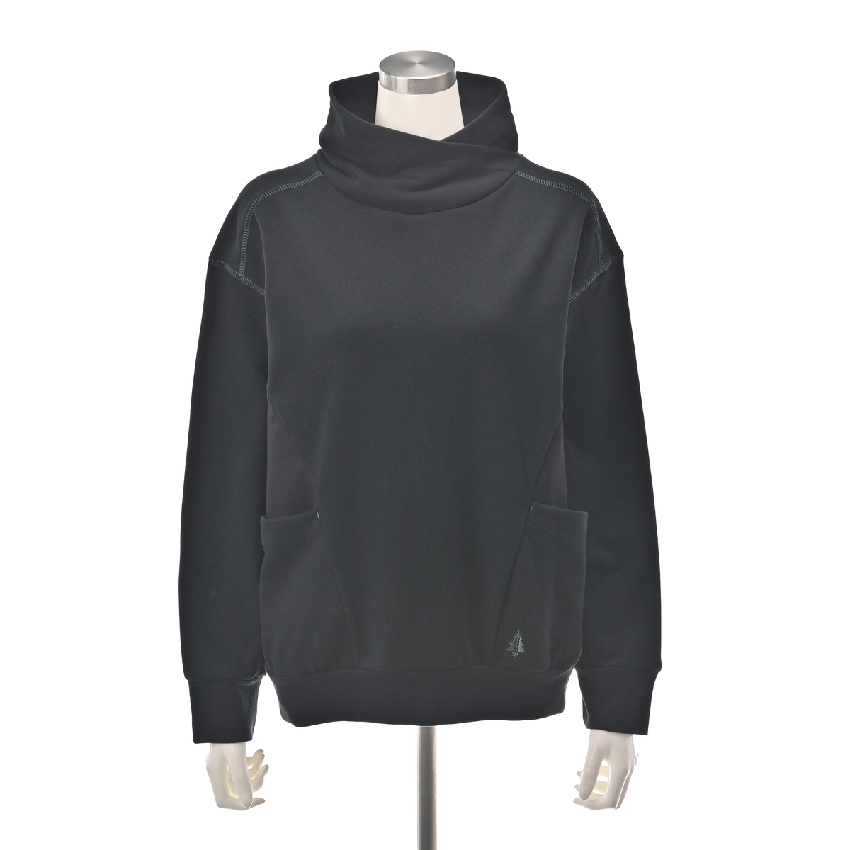 微起毛素材のハイネックプルオーバー。肌触りの良い素材で、脇と袖下は表面がフラットのミニ裏毛を使用し、配色合わせにしました(ブラックのみブラック×ブラック)。伸縮性が良く、着心地ラクチンです