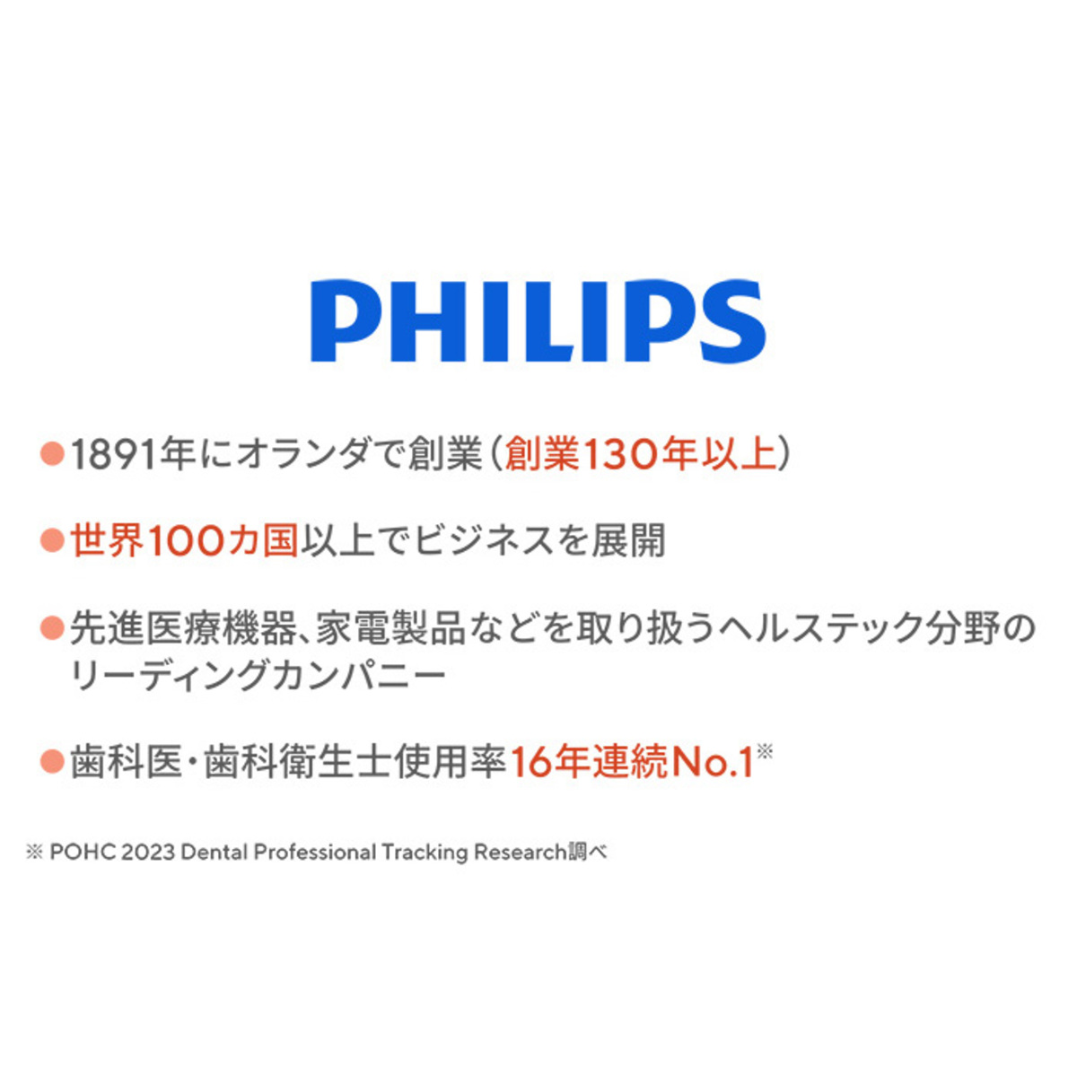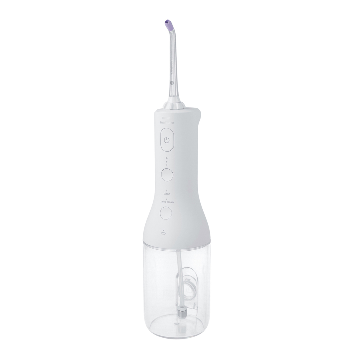 [サイズ] 本体:約高さ30.6×幅6.8×奥行6.8cm [重量] 約290g [タンク容量] 約250ml [充電時間] 約8時間充電で約3週間使用可能 ※1日1回1分間使用した場合 [使用方法] 1. 水タンクに注水したら、ノズルの先端をシンクに向けます。ハンドルの電源ボタンを押して、製品の電源をONにします。シンクに水を噴霧させます。ノズルから水が出たら、電源をOFFにします 2. ノズルの先端を口の中に入れます。シンクに上体を乗り出してから、水はねを防ぐために、唇をノズルの先端にかぶせるように部分的に閉じます。口からシンクへと水が流れ出るよう、十分な隙間を空けてください a. ノズルの先端が歯ぐきに沿って90°の角度になるように向けます ※カドストリームノズルをお使いの場合、ノズルの先端が歯ぐきのふちと歯に当たるように、やさしく押し当てます b. 上または下の奥歯から始めて、ノズルの先端を歯ぐきに沿ってスライドさせながら、それぞれの歯間で短時間動きを止めます 3. ハンドルの電源ボタンを押して製品の電源をONにします a. 上または下の歯列で、外側(15秒)、内側(15秒)の両方の洗浄を合計30秒間行います ※ノズルローテーターを使用するとノズル先端の向きを変えることができます b. もう一方の歯列でも外側(15秒)、内側(15秒)洗浄します。このように、合計1分以上かけて、歯の周りとすべての歯間を洗浄します ※使用中でも、本製品の電源ボタンを押すことで水流を止めることができます ※使用中に水タンクに注水する場合、本体の電源をOFFにしてから注水してください。注水後は中断した場所から再開し、歯の周りとすべての歯間を洗浄します ■取り扱い説明を充分にご確認の上、ご使用下さい 【中国製】 [セット内容] ・フィリップスソニッケアーコードレスパワーフロッサー 本体 カドストリームノズル スタンダードノズル 電源アダプタ USBケーブル 専用ポーチ ・フィリップスソニッケアーパワーフロッサー カドストリームノズル2本入 [注意事項] ※本製品はパーソナルケア用であり、歯科医院や医療機関において複数の患者に使用するためのものではありません ※本製品は口腔用洗浄機です。歯間や歯の表面から歯垢や食べかすを取り除くことで虫歯を予防し、歯ぐきの健康を推進することを目的としています。本製品は一般家庭向け製品であり、1日1回以上の使用を想定しています ※過去2カ月間を目安に口腔内の治療や歯ぐきの手術を受けられた場合は、本製品をご使用になる前に、あらかじめ歯科医師にご相談ください ※本製品をご使用の結果、万一激しい出血があった場合や、本製品を使い始めて1週間経過後も出血が認められる場合には、ご使用を中止し、歯科医師にご相談ください ※健康面で不安なことがある場合はご使用の前にかかりつけの医師にご相談ください ※水道水かぬるま湯以外(うがい液など)は使用しないでください ※製品を火気に近づけたり、直射日光に当たる場所や高温になる場所に放置したりしないでください ※本製品の充電、使用、保管は、0°Cから40°Cまでの環境で行ってください ※ハンドル本体は防水加工をしており、水場や浴室でも使用できますが、水や液体の中に浸けないでください(故障の原因となります)。水場や浴室で使用する場合はUSB-Cポートにカバーが完全に装着されていることを確認してください [お手入れ] 1. 使い終わったら、製品の電源をOFFにします 2. 水タンクを取り外し、中身を空にします 3. ハンドル上部にあるノズル取り外しボタンを押して、ハンドルからノズルを取り外します 4. ノズルを水で洗い流します 5. ノズル・ハンドル表面・水タンクの水を切り、乾かします 6. ノズルをハンドルに挿入し保管します