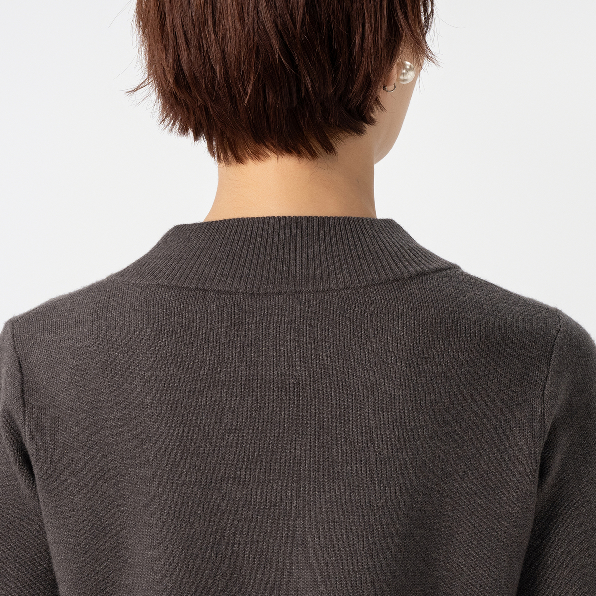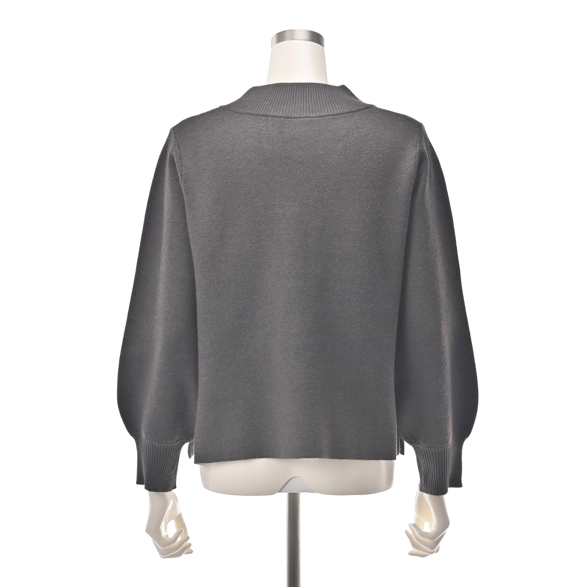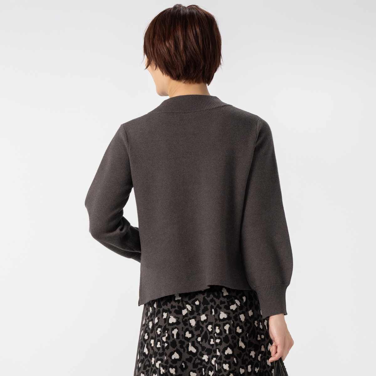 もちもちと目の詰まる素材を12ゲージのジャカードで編み立てることで、厚みがありしっかりとした編地に。パフスリーブも立体的できれいなシルエットになっています