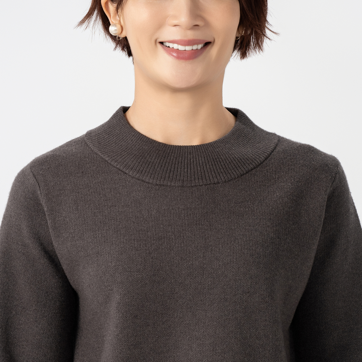 50過ぎて、どんどん体型が劣悪になり、ニットを着るのも気が引けてましたが、袖の下のほうのフワッとした膨らみ、脇下から緩やかなカーブを描くことで高い位置でくびれたように見え、ポケットも相まって腰高に見えるなど、だらしない体型が全くもって偽造されます。サイズはバストが104もあり(背中の肉があるので)、ボトムはLLか3Lになることもあるウエストですが、こちらはLLで全く肉感拾わず余裕があり、細く見えます。感動です!
