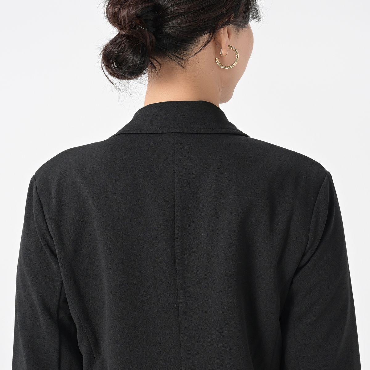 軽やかなハイテンションジョーゼットを使用し、ソフトなハリ感と適度な膨らみで仕立て映えするジャケット。きちんと感があり、クラシカルでフェミニンな印象を演出します。刺繍レース衿は取り外しが可能。カットソーなのでストレスフリーな着心地で、ご自宅で手洗いが可能(ネット使用)なのも魅力です