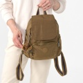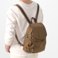 コンパクトサイズで使いやすいバックパックです。メイン荷室はファスナー開閉に加えてマグネット式のかぶせ蓋付き。蓋部分から底に向けて奥行きが広くなるカマボコ型のマチ付きで、見た目以上に収納力がありながら、小柄な方にもバランスの取りやすいデザインです
