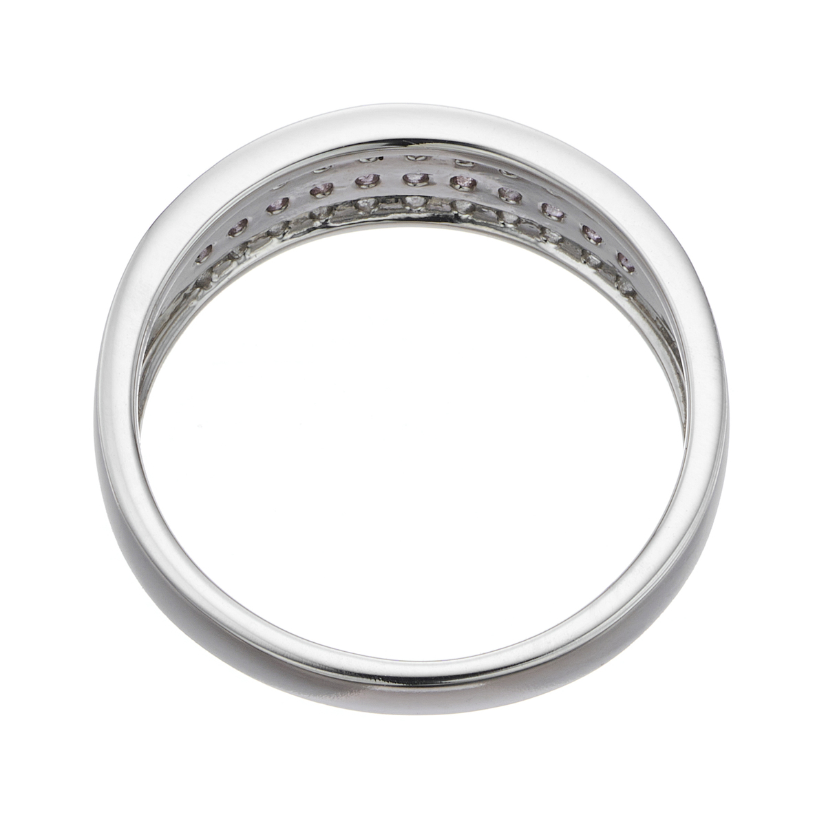 3列にわたってピンクダイヤモンドとDカラーダイヤモンドをびっしりあしらった幅広のリング。2色のコントラストが楽しめる華やかなデザインに仕上げました