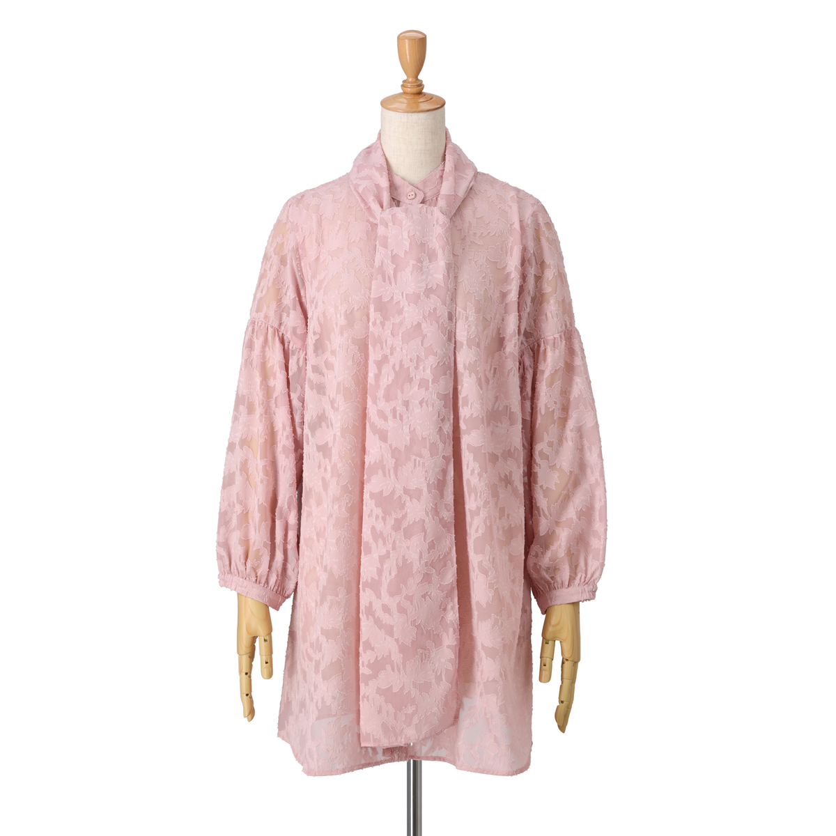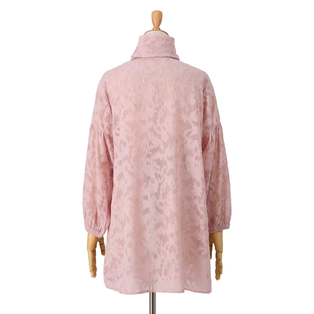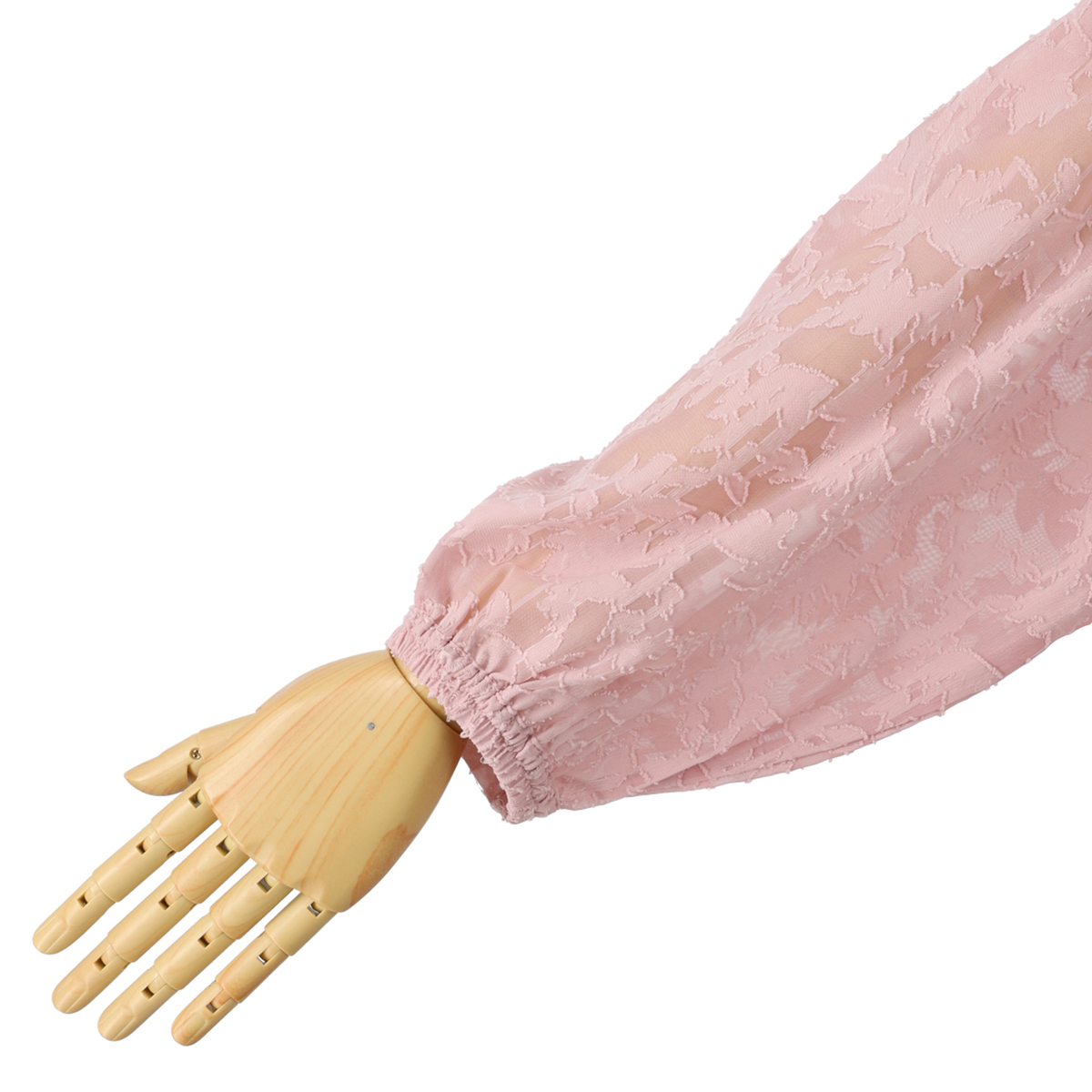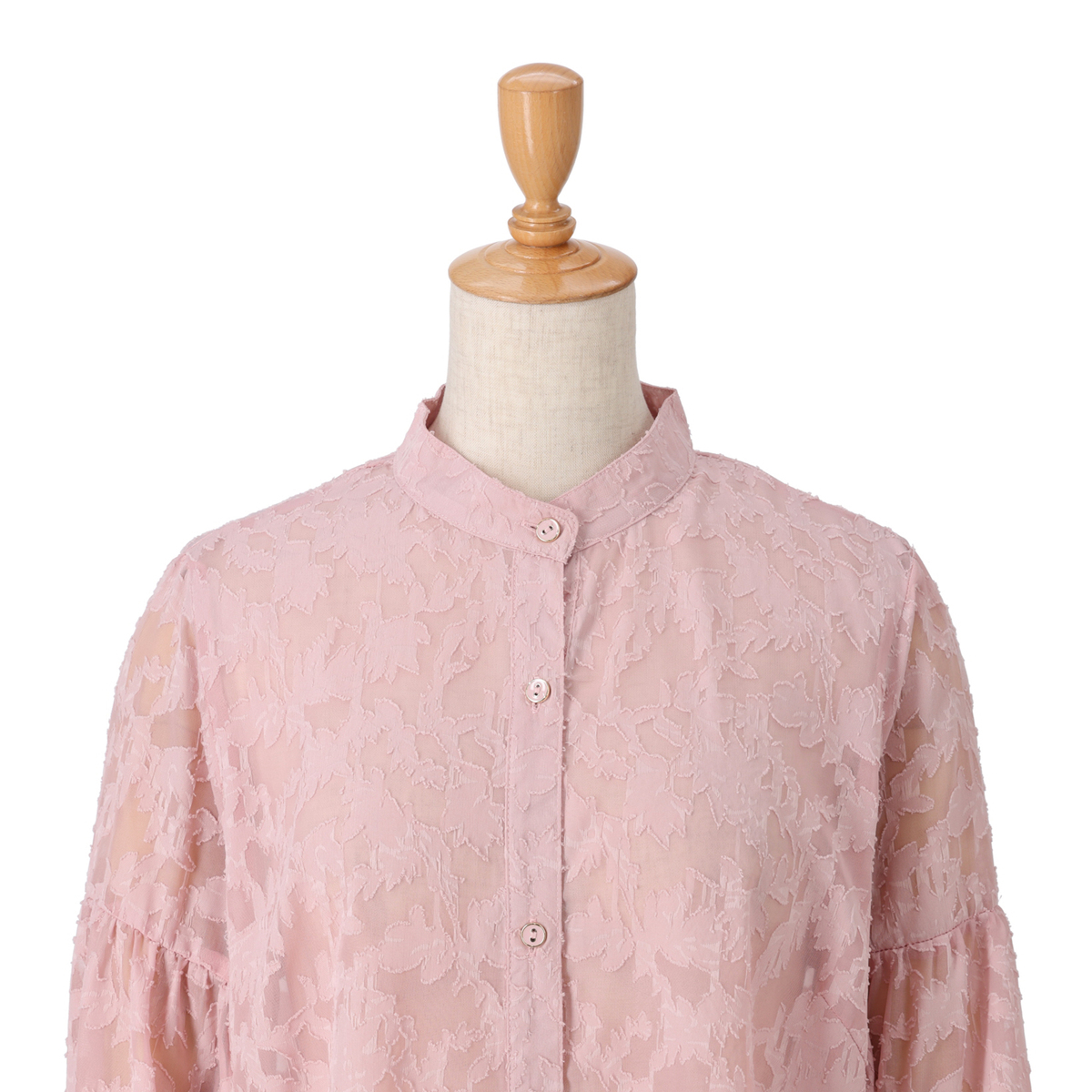 シアー感のあるカットジャガード素材のブラウス。肘上からギャザーを施したパフスリーブが特徴で、袖にボリュームを持たせたデザインが魅力です