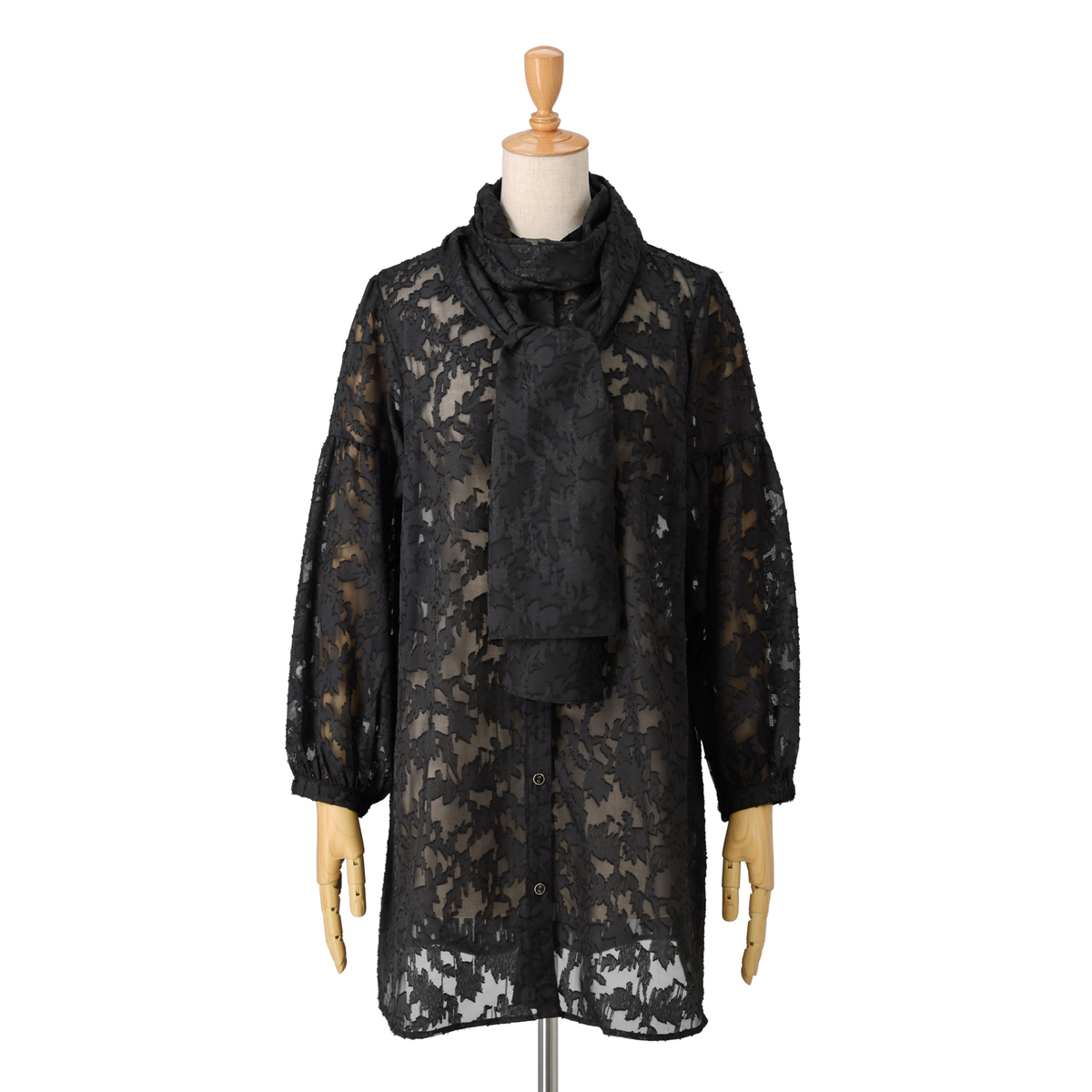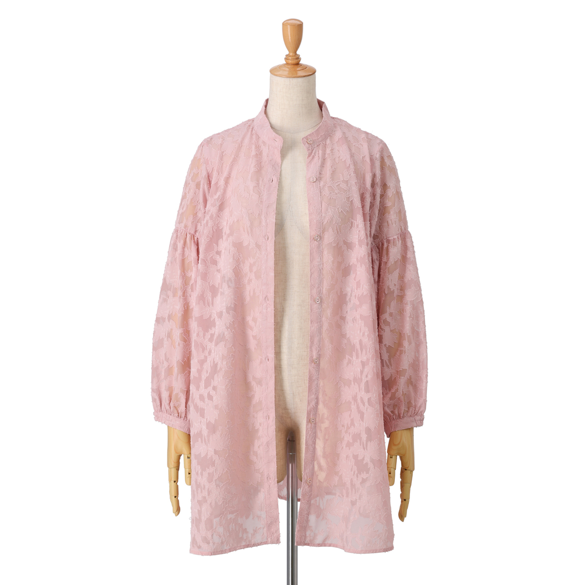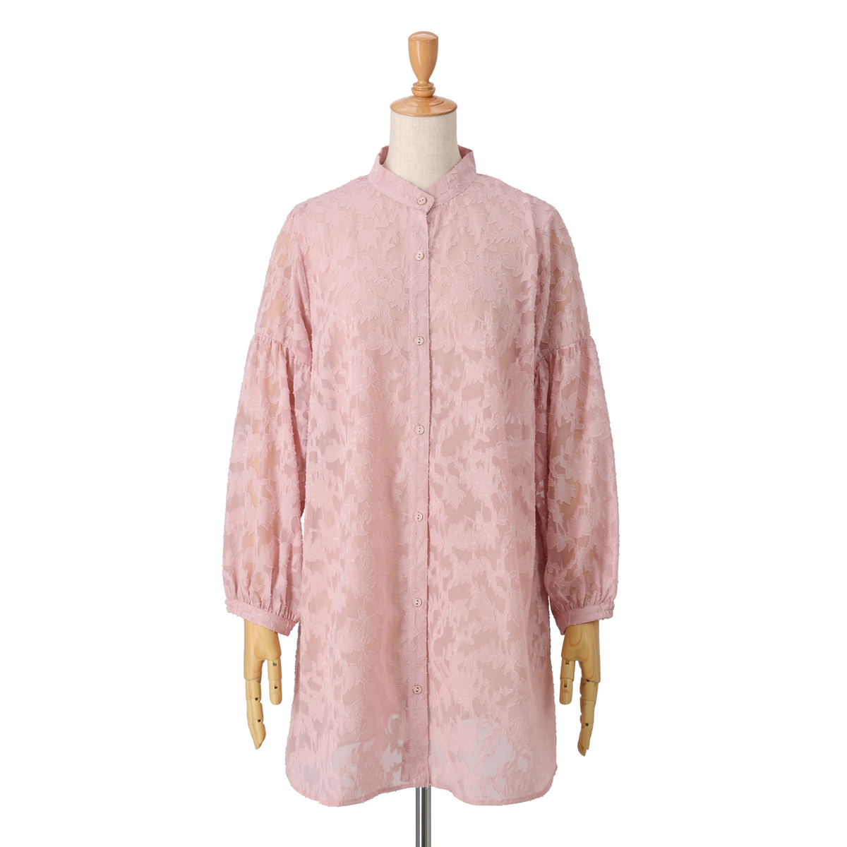 シアー感のあるカットジャガード素材のブラウス。肘上からギャザーを施したパフスリーブが特徴で、袖にボリュームを持たせたデザインが魅力です