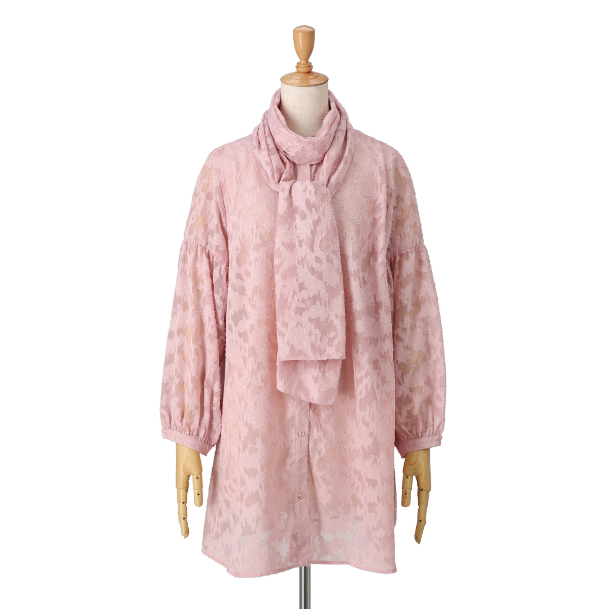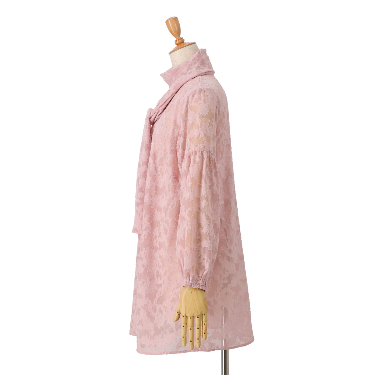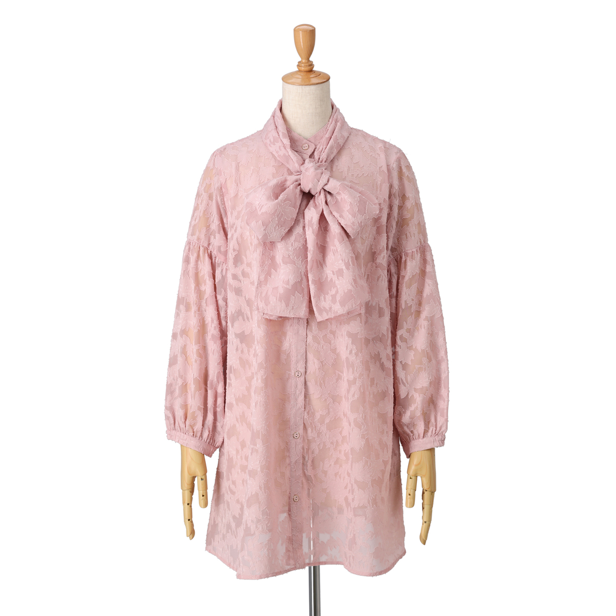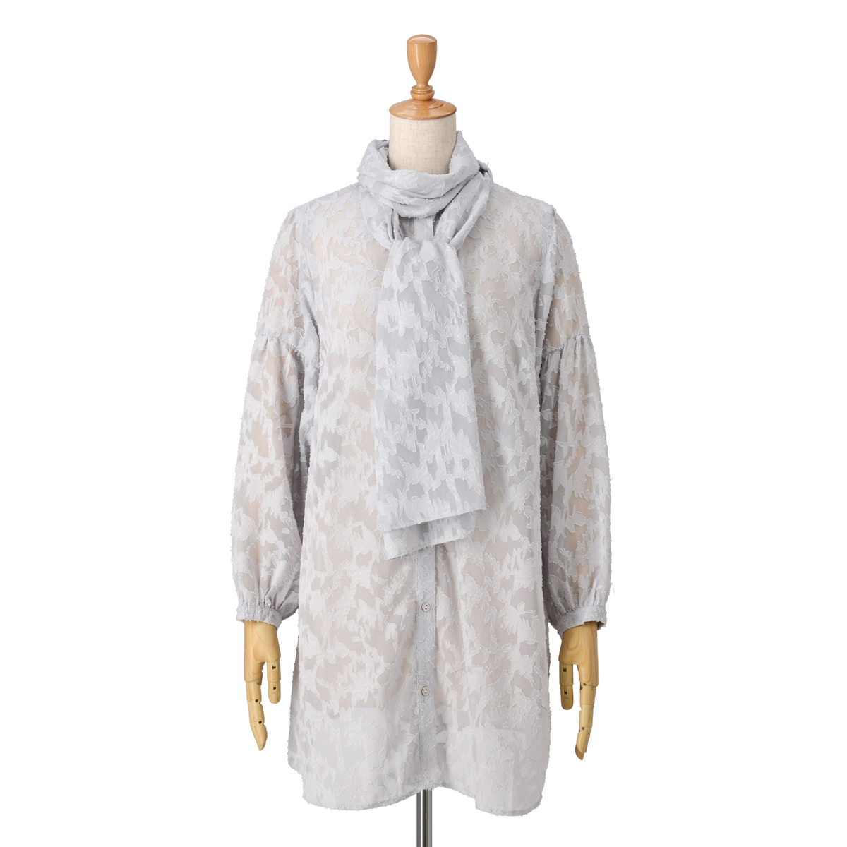 シアー感のあるカットジャガード素材のブラウス。肘上からギャザーを施したパフスリーブが特徴で、袖にボリュームを持たせたデザインが魅力です