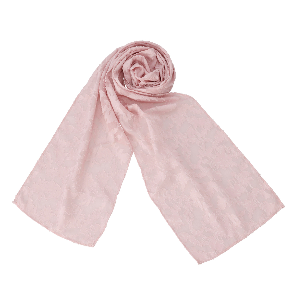 ジャケットのインナーとしても、前を開けて羽織りとしても活躍する一枚。共布のストール付きで、襟元もカバーできる便利なアイテムです