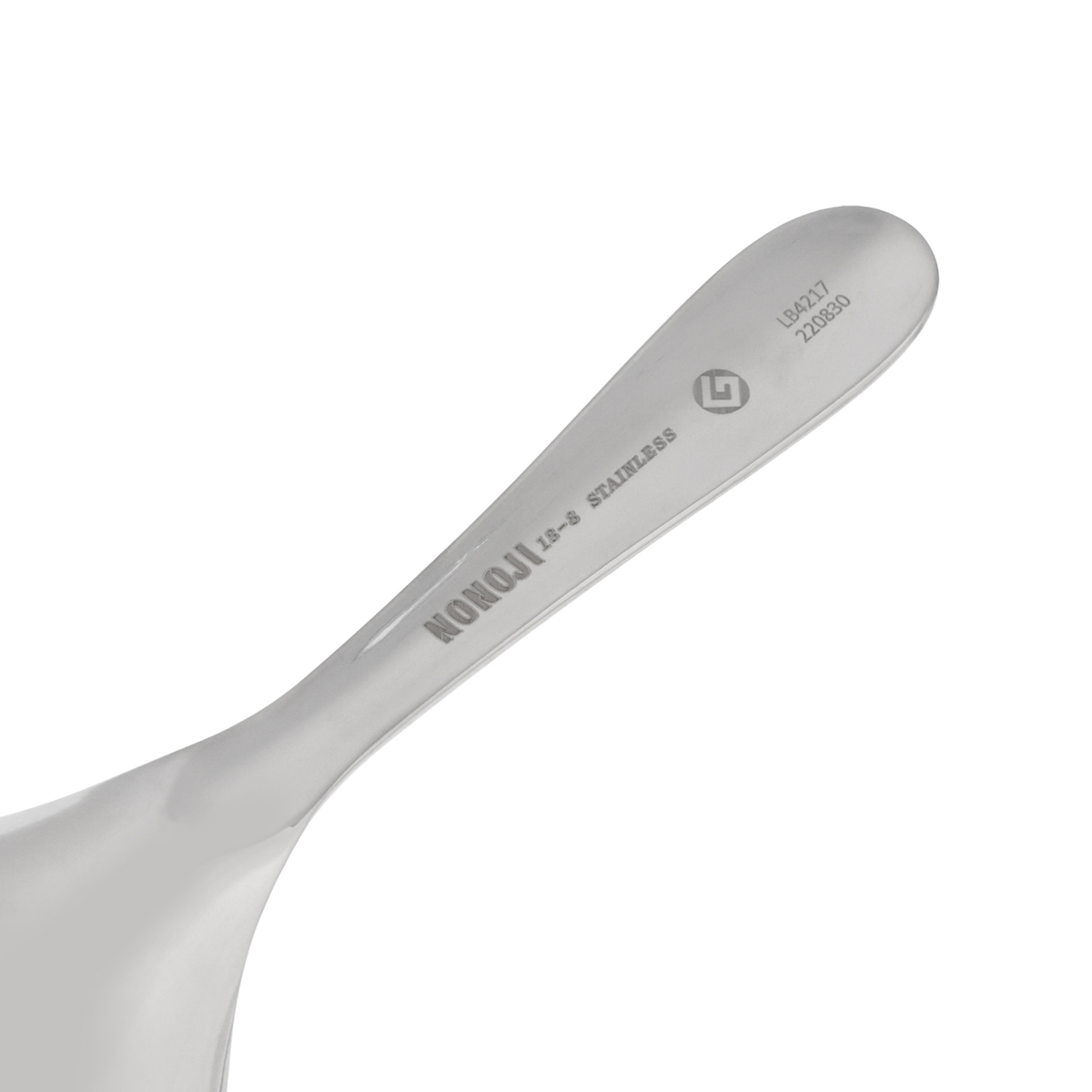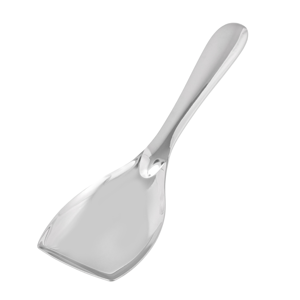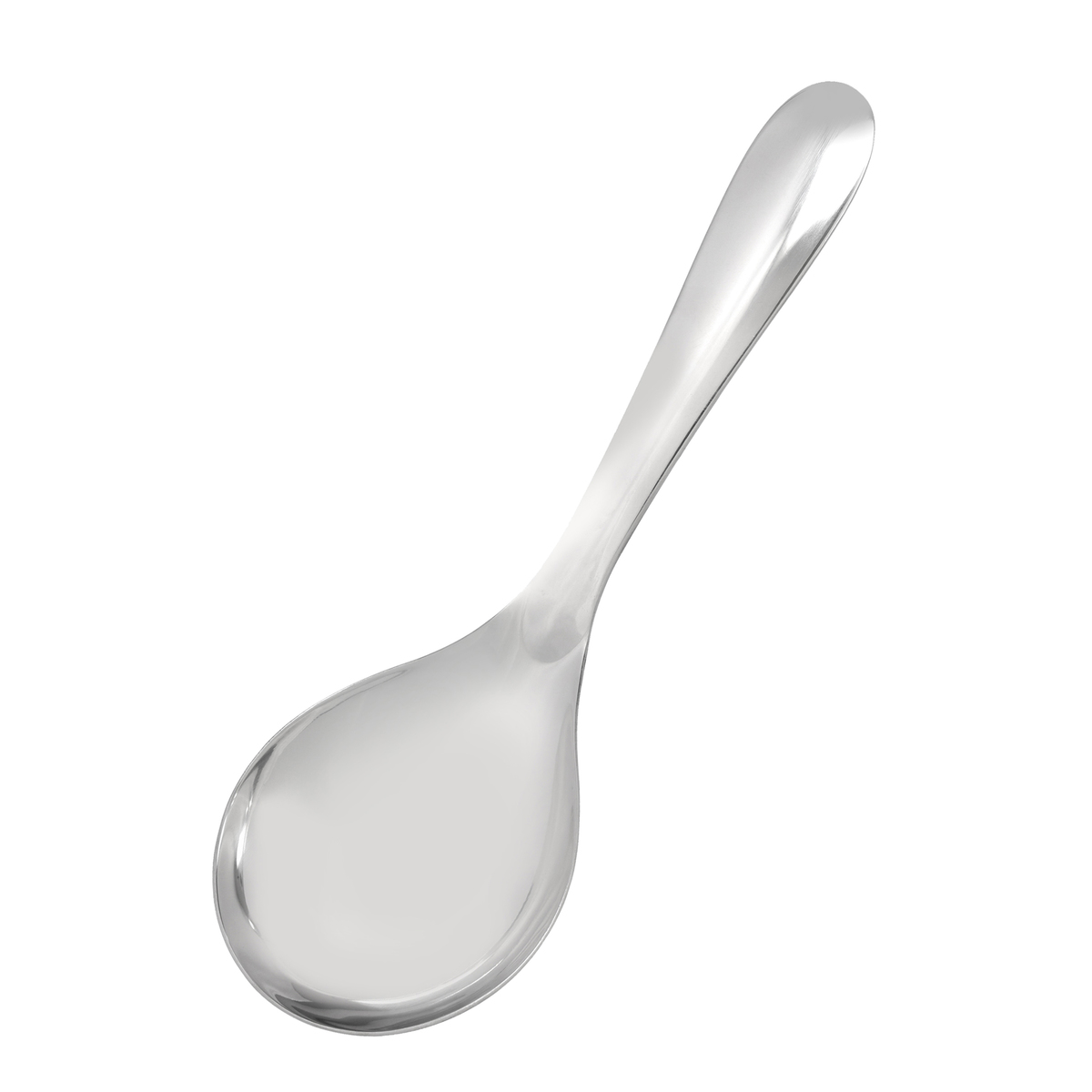 お玉としゃもじがドッキング。柄を寝かせたカタチで、底の具まで簡単にすくえます。調理から盛り付け、食卓での取り分けにまでつかえるペティサイズです