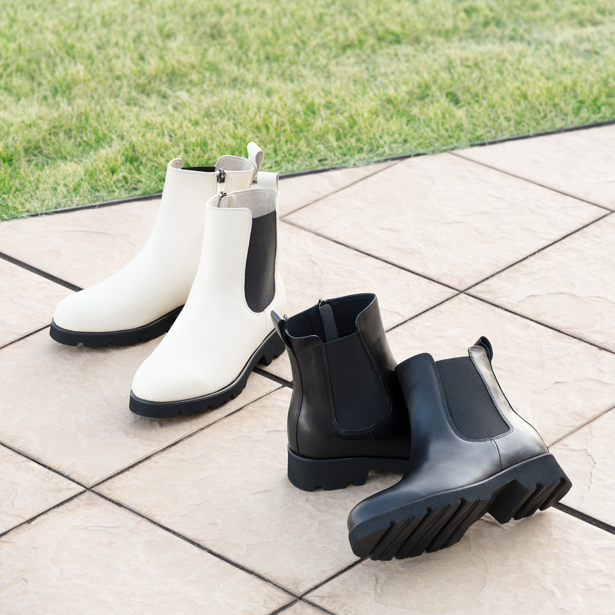 トレンド感のあるタンクソール風の厚底ソールが目を引くサイドゴアブーツ。厚底の見た目ながら片足約290g(23.5サイズにて計測)で軽量です。サイドゴアのデザイン性と履きやすさに、内ファスナーで着脱しさすさをプラスした、ハイブリッドなデザインも魅力。ロック付きのファスナーなので、履いていてもファスナーが下がってくる事はありません