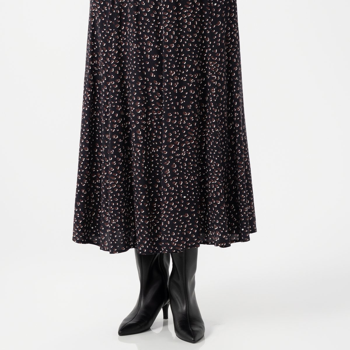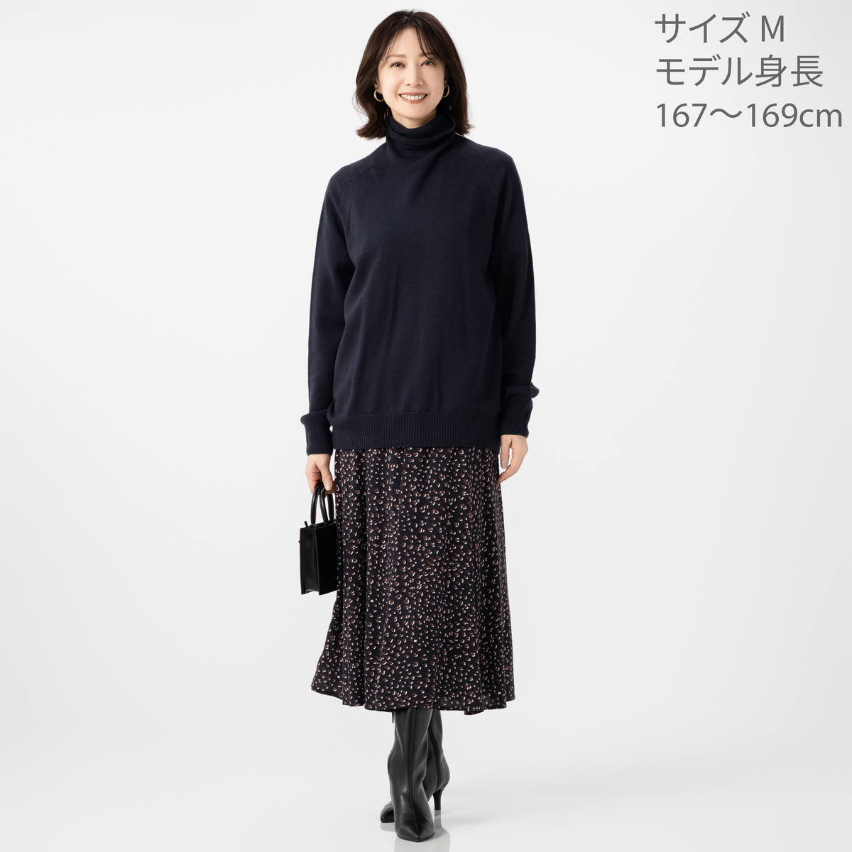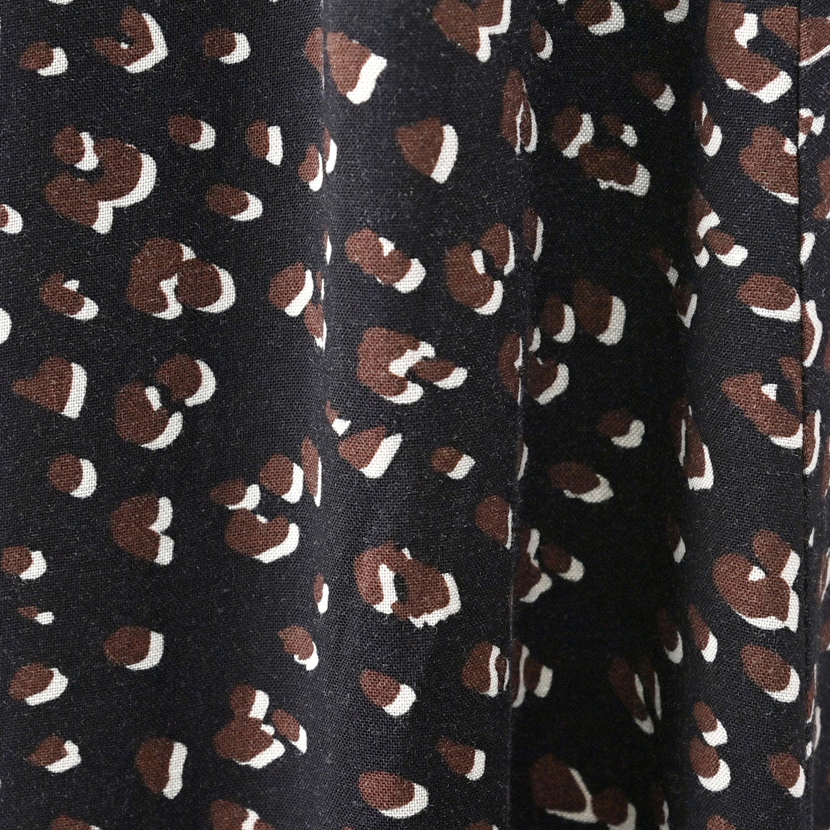 ブラックMサイズ購入。レオパード柄ですがブラックなので落ち着いた感じ。レーヨンなのでトロンと柔らかく落ち感がいいです。163cmの私に丁度良い長さです。欲を言えばもう気持ち長くても良い感じです。 届いた時はたたみジワ等ありましたが、レーヨンなのでアイロンで簡単にきれいになりました。