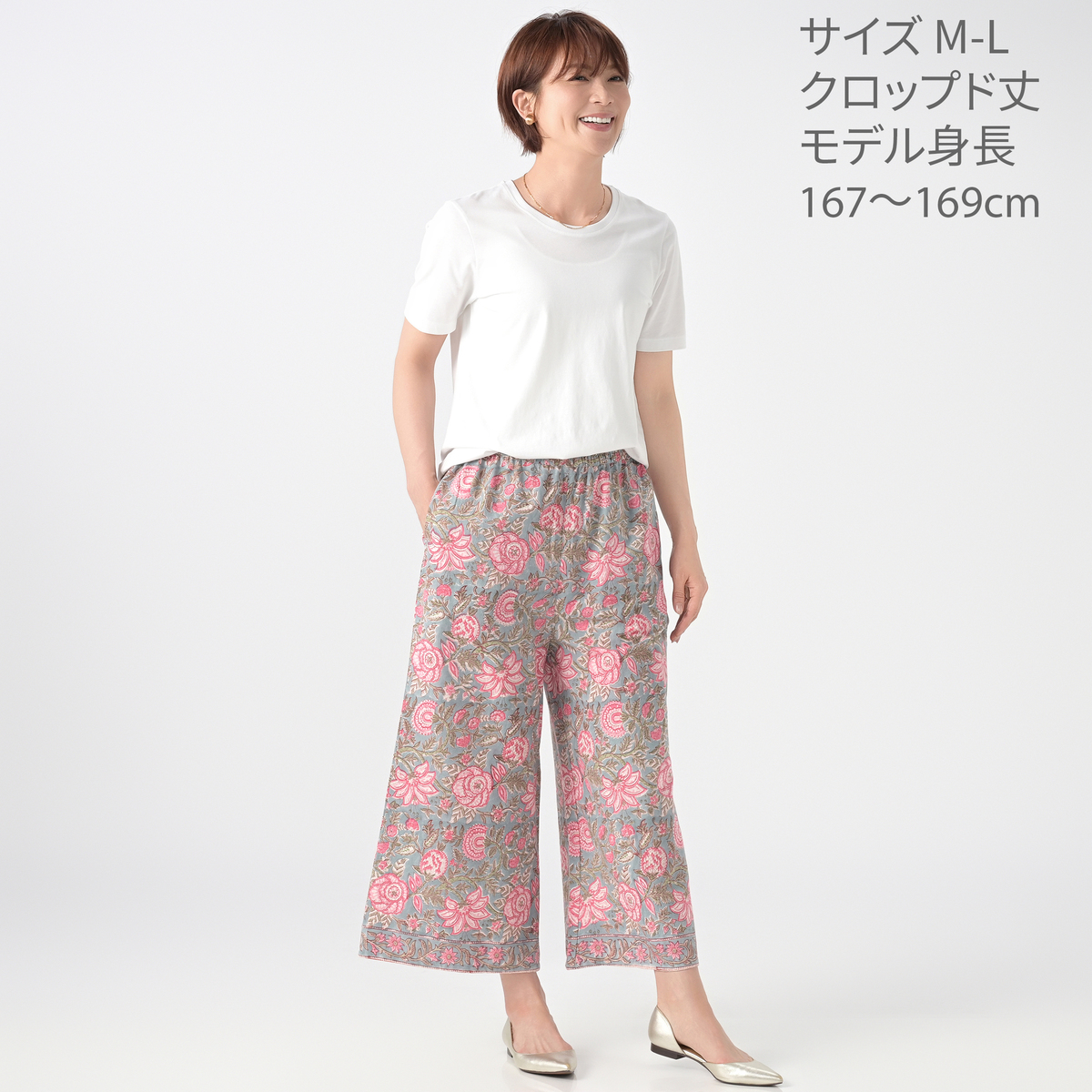 No. 737369 myM インド綿100%手染めブロックプリントワイドパンツ