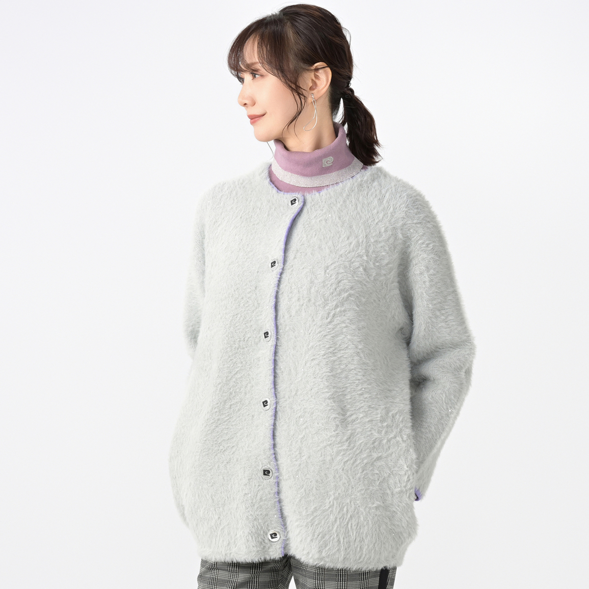 No. 737557 PCD 立体フォルムのスパンコールシャギーニットカーディガン