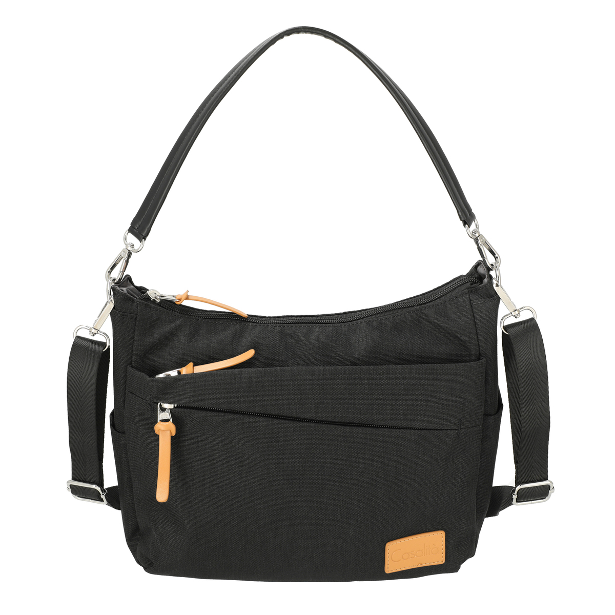 ANTI GRAVITY SYSTEM(AGS)機能を採用したショルダーバッグ。伸縮性の強いゴムを利用し、上に弾む働きにより肩への圧力を軽減。サスペンションのように衝撃を吸収します