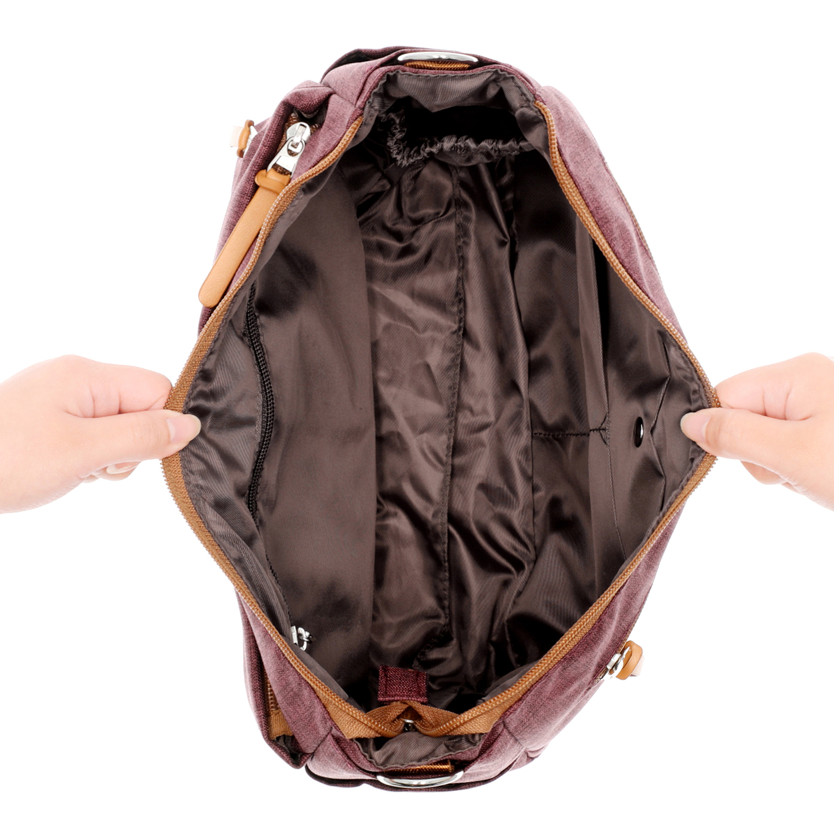 [サイズ(約)] 縦26×横29.5×マチ11.5cm ハンドル立ち上がり:22cm ショルダー立ち上がり:35〜55cm [重量(約)]※付属品含む 510g [素材] ポリエステル ※裏地有 [仕様] 付属(取り外し可):ショルダーベルト×2 開閉:ファスナー式 底ビョウ:無 [ポケット] 内側:ファスナーポケット×1、スナップボタンポケット×1、オープンポケット×2、シャーリング付オープンポケット×2 外側:ファスナーポケット×3(内オープンポケット×2、ペン挿し×2、キーリング×1)、サイドオープンポケット 【中国製】