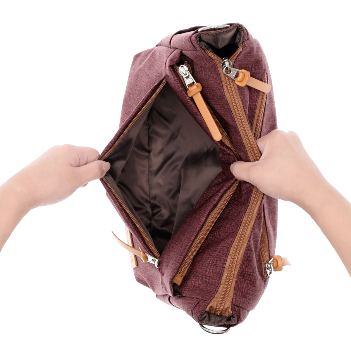 生地表面には撥水加工を施し、水を弾きやすい仕様。長短2種類のショルダーベルト付きで、シーンに合わせて2WAYでお使いいただけます