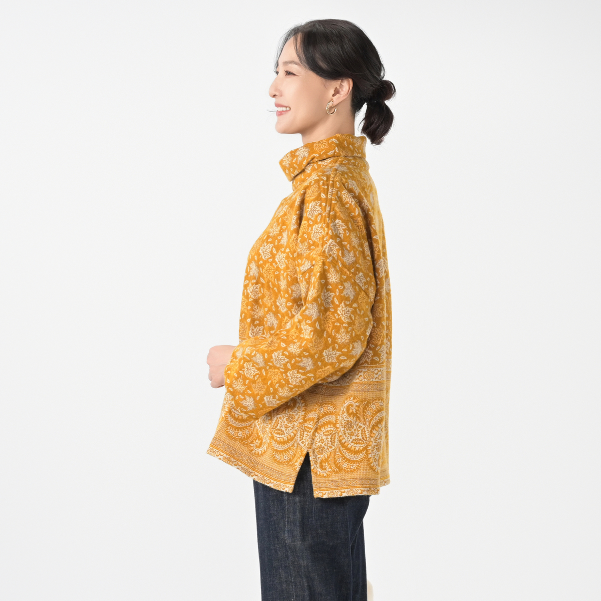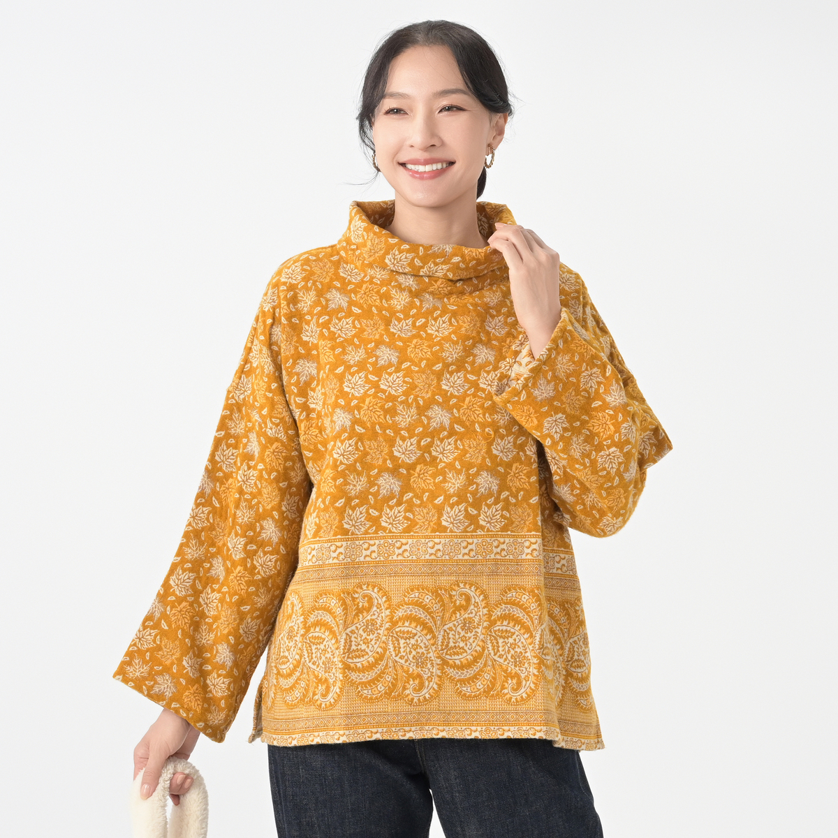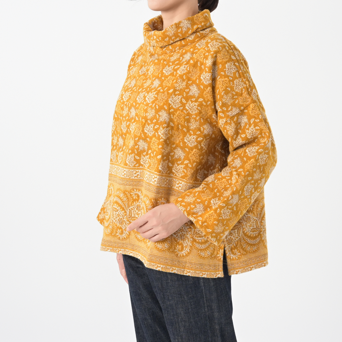 肌触りのよいあたたか素材。1枚着るだけで主役になるチュニック。首元までたっぷり生地で暖かく。折り曲げたりすることで、アレンジもできます