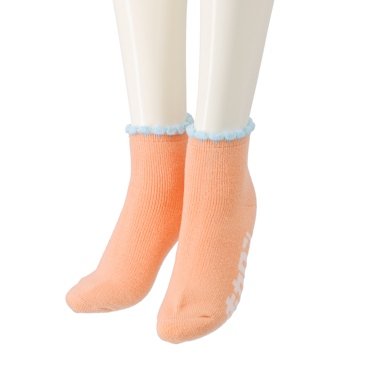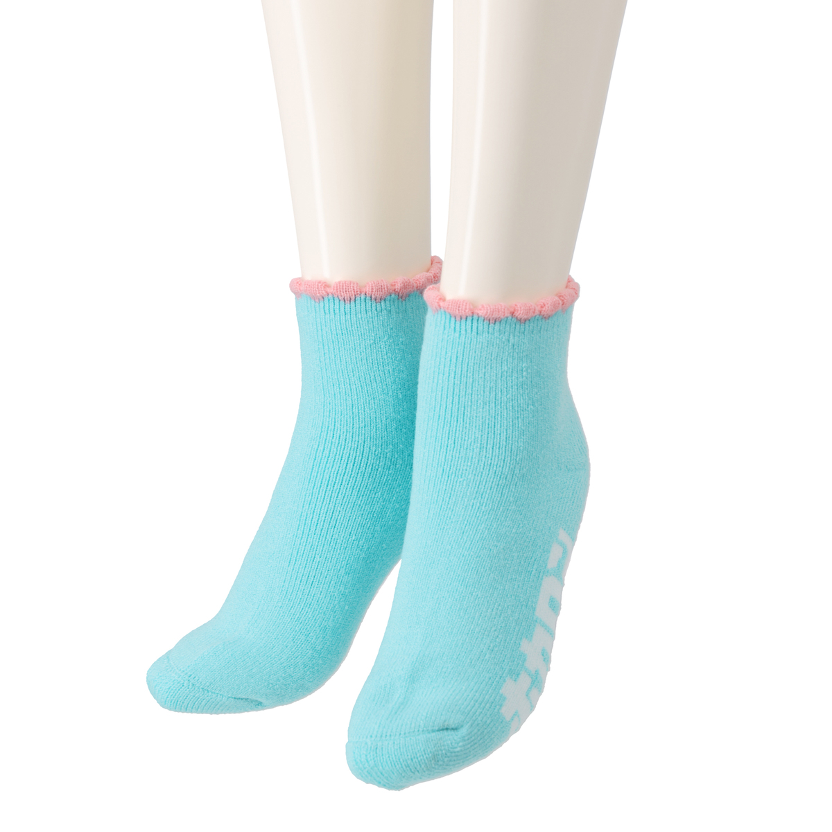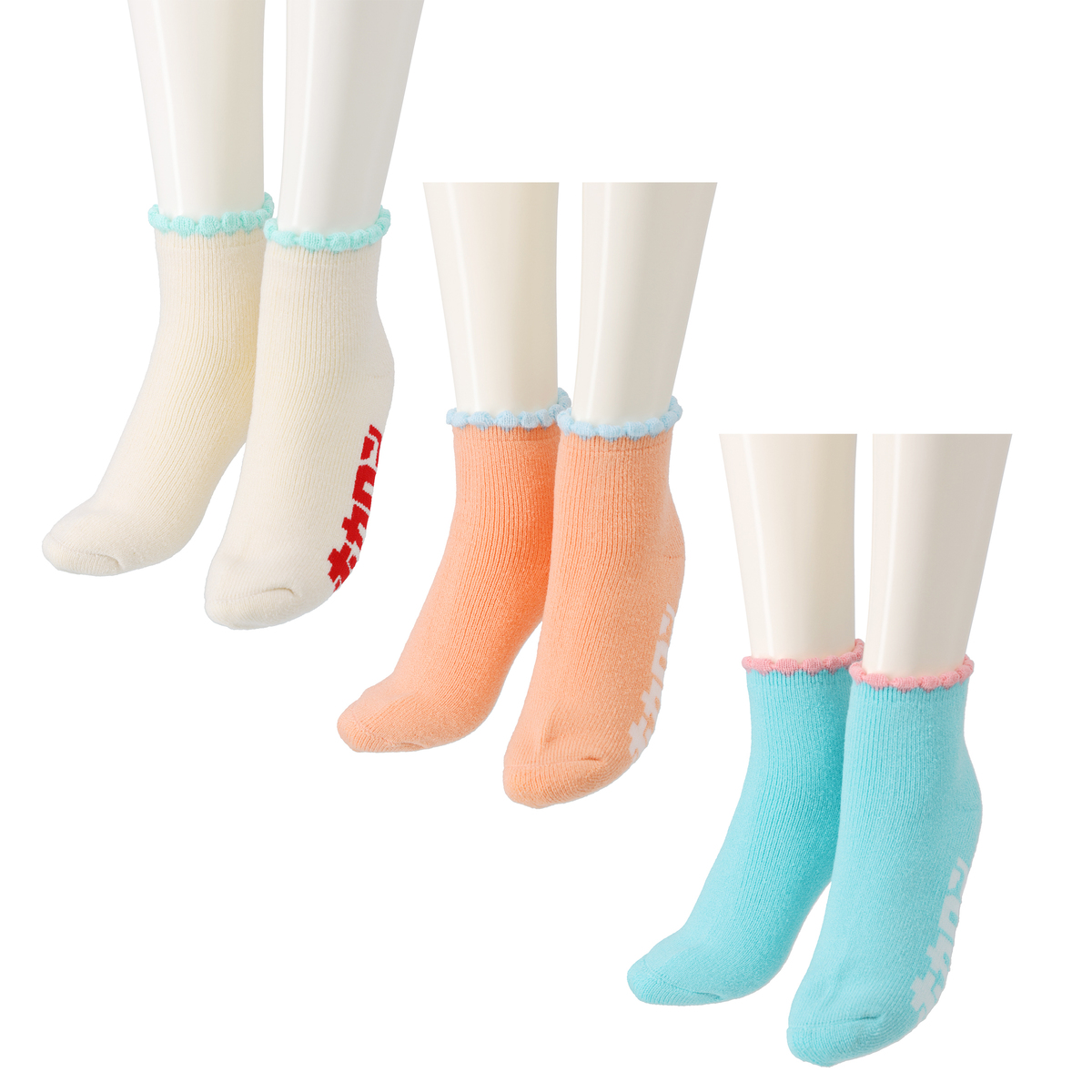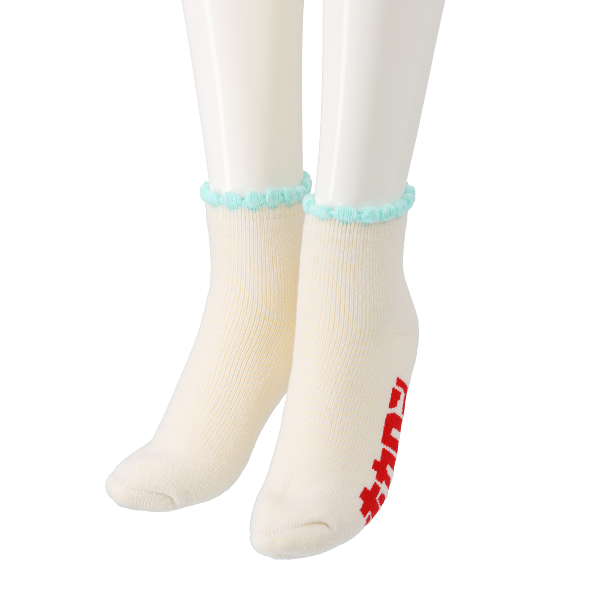 吸湿発熱糸を使った、あったかソックス。履き口をピコットのような仕様にした可愛いデザインです。暖かな履き心地だけでなく、抗菌防臭加工を施しており、菌の増殖を抑える効果が期待できます