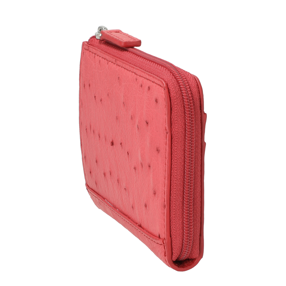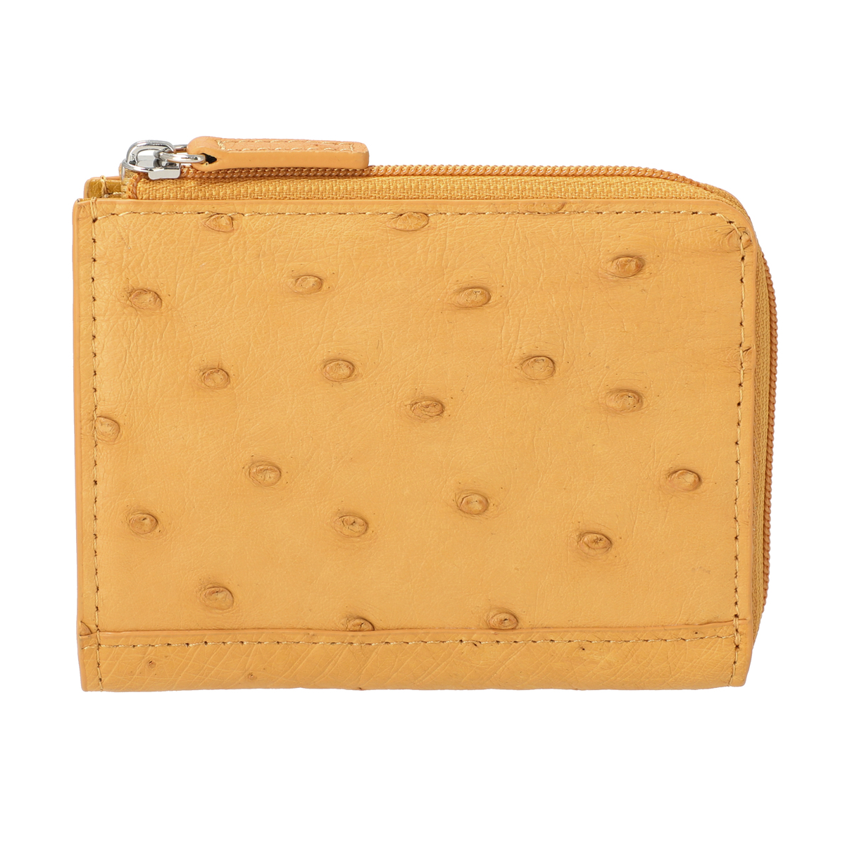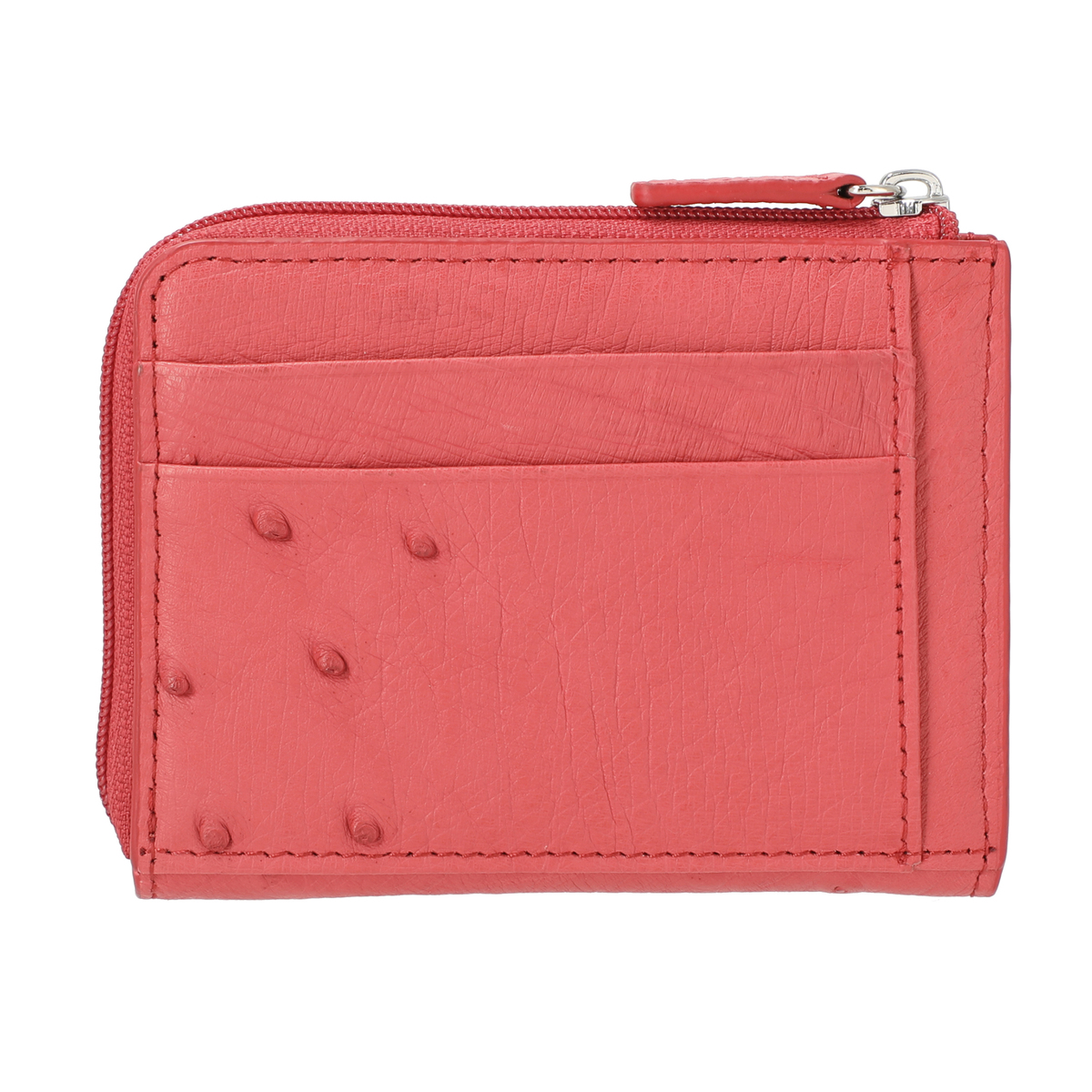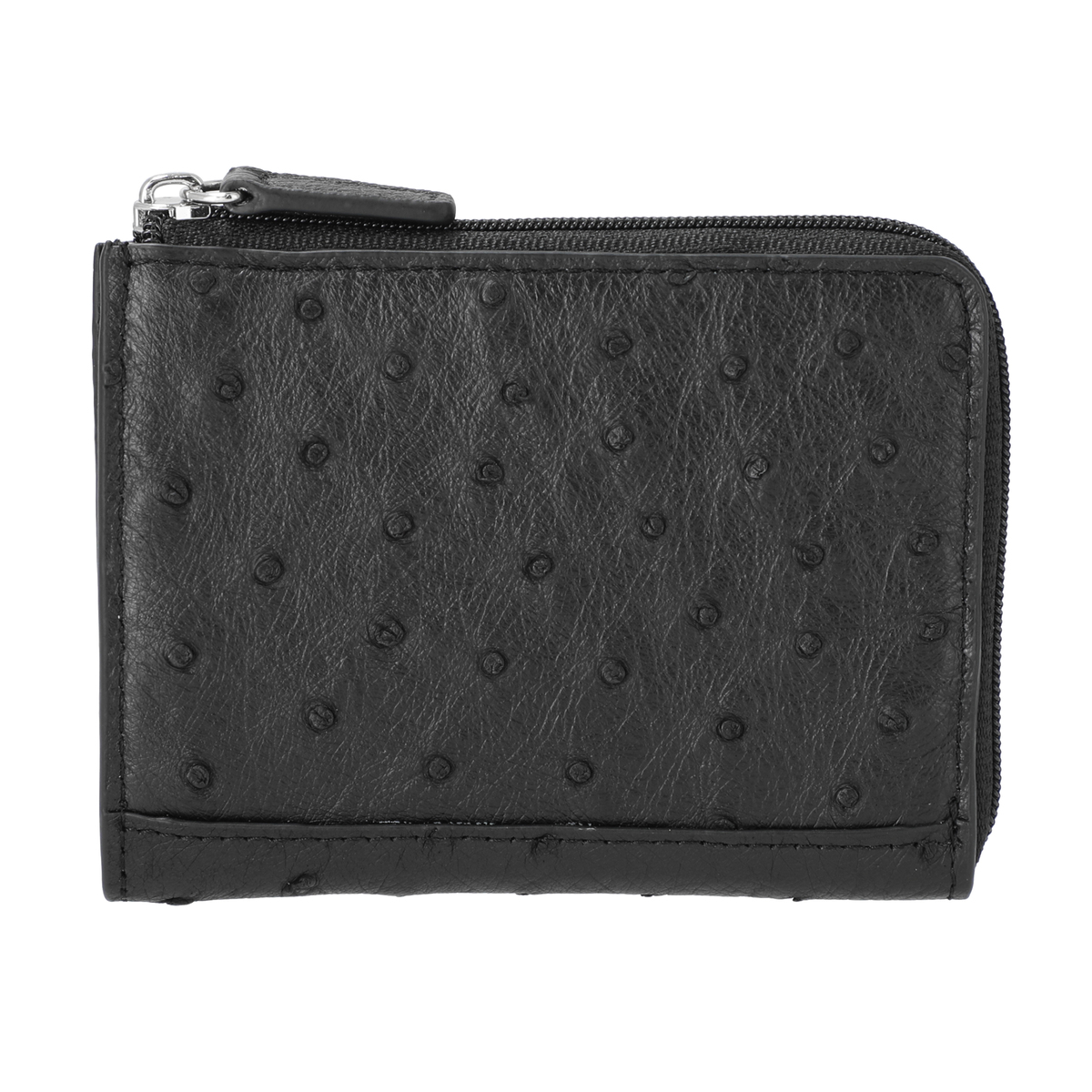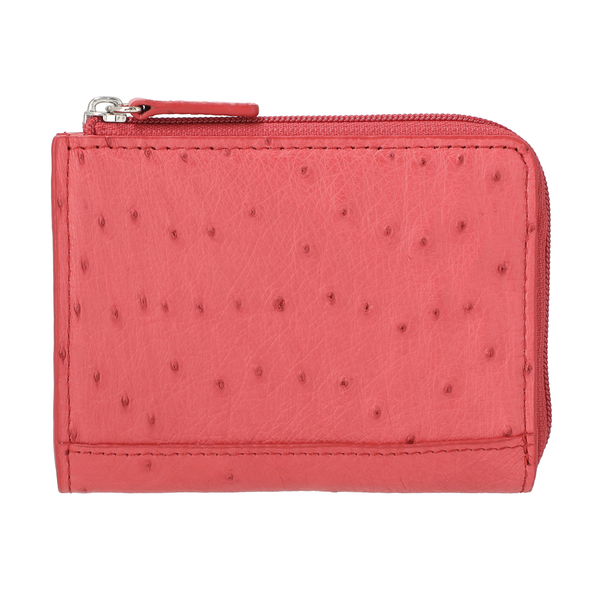 [サイズ(約)] 縦8.5×横11×厚み2cm [重量(約)] 50g [素材] 表地:オーストリッチ革 内側:牛革・ポリエステル ※裏地有 [仕様] 開閉:ファスナー式 [ポケット] 内側:カードポケットx2 オープンポケットx3 外側:カードポケットx2 オープンポケットx1 【ベトナム製】