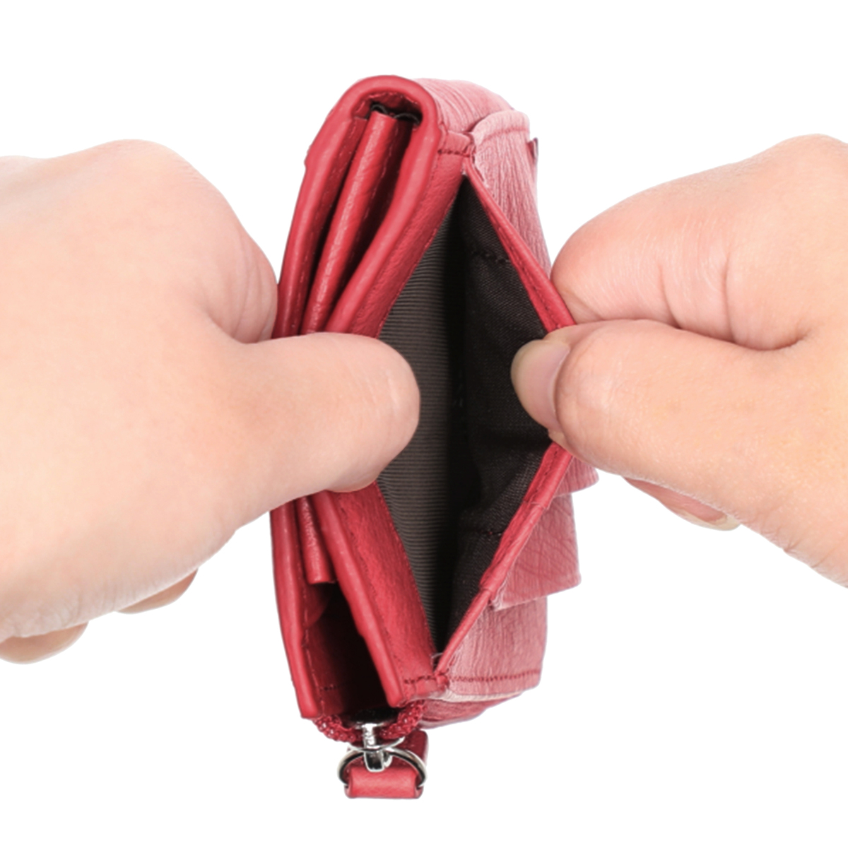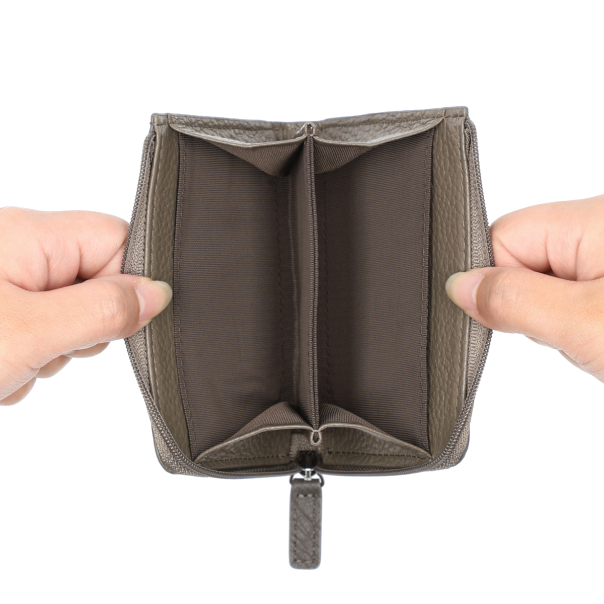 手のひらサイズで持ちやすく、大きく開閉するので中が見やすい仕様。小銭入れに加えてカードポケットも複数あり、お札を折りたたんで入れれば、お財布代わりとしてマルチにお使いいただけます