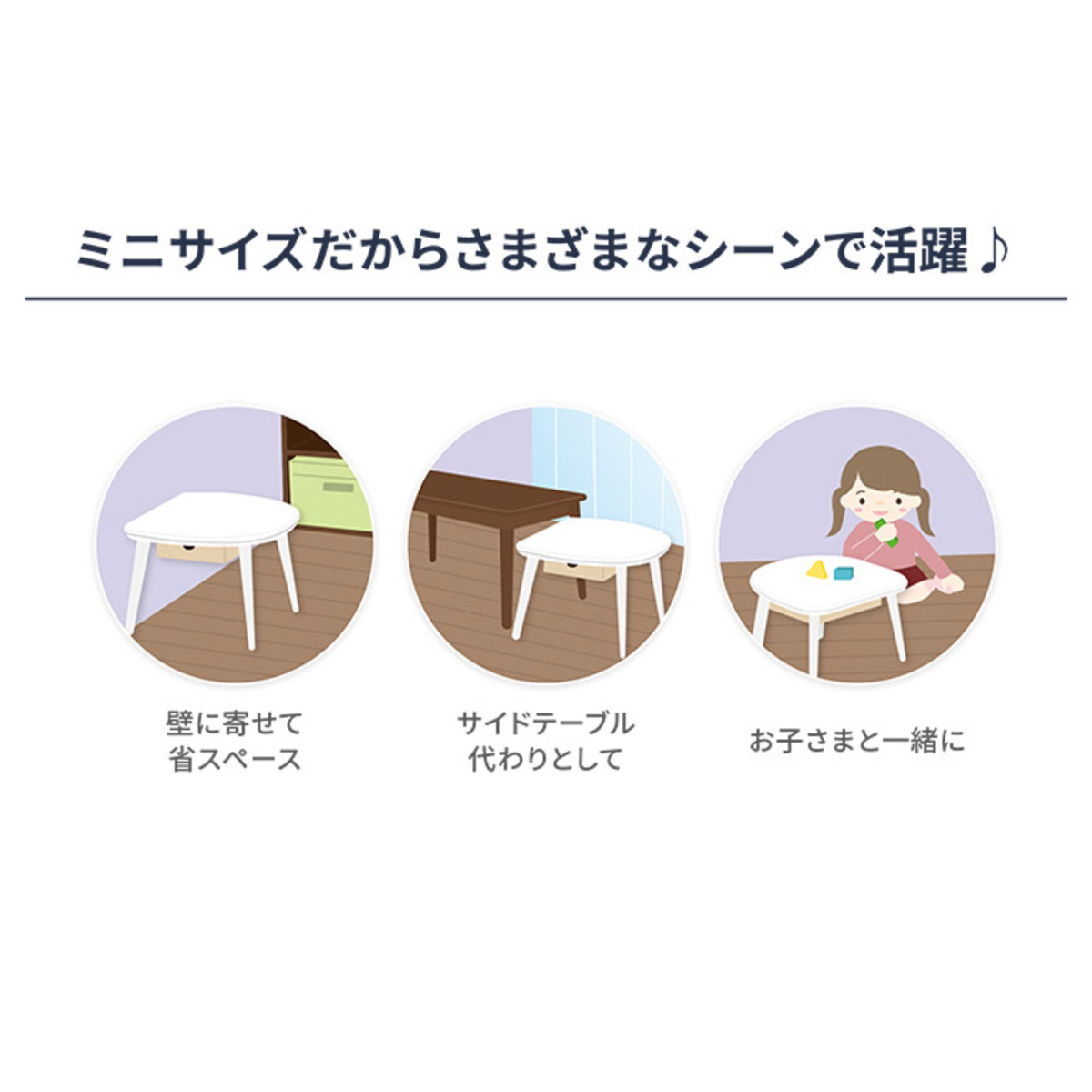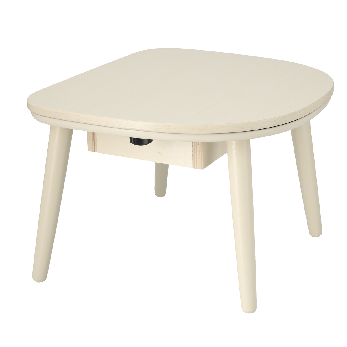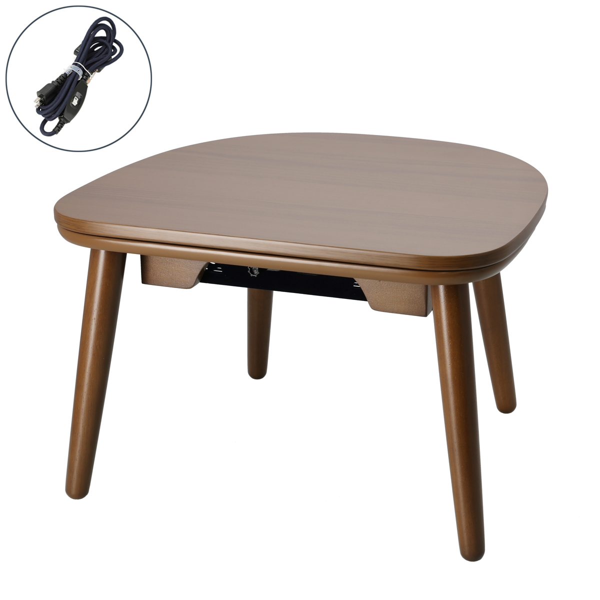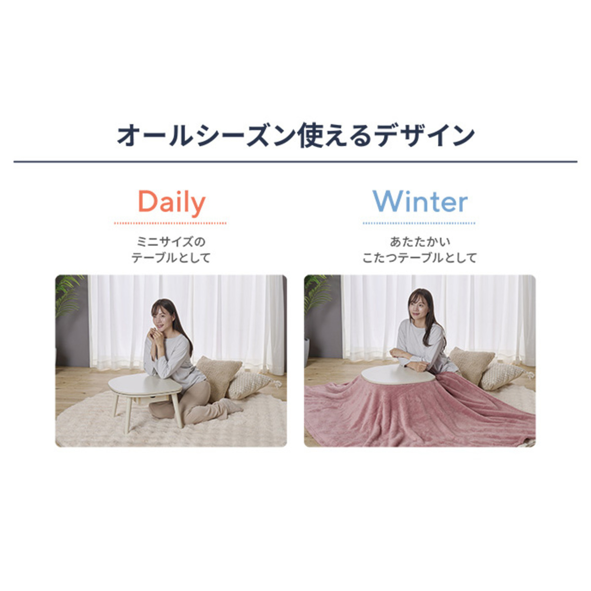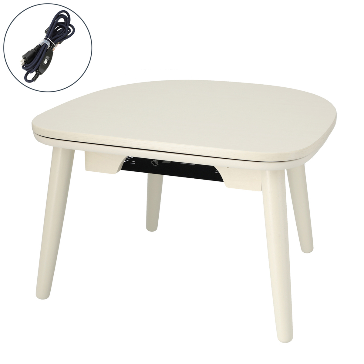 手持ちの毛布やブランケットをかければミニこたつとして*、布団を外せばテーブルとして一年中お使いいただけます。サーモスタット(可変式)を採用し、温度ヒューズの安全装置を搭載しています