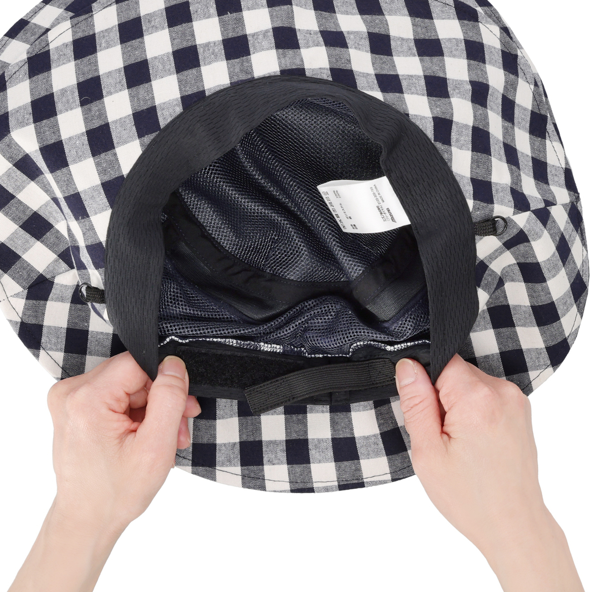 ハットの側面部分は風道をつけた構造で、風が通り抜けることで、より快適に着用いただけます。後頭部の内側はメッシュ生地で、熱がこもりにくい仕様。インナーアジャスター付きで、サイズ調整も可能です