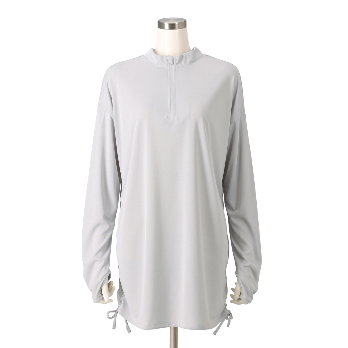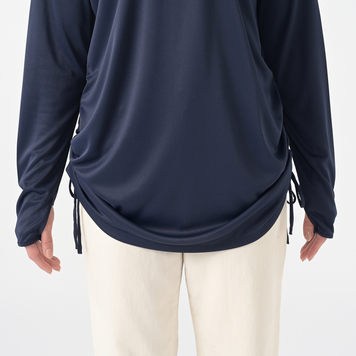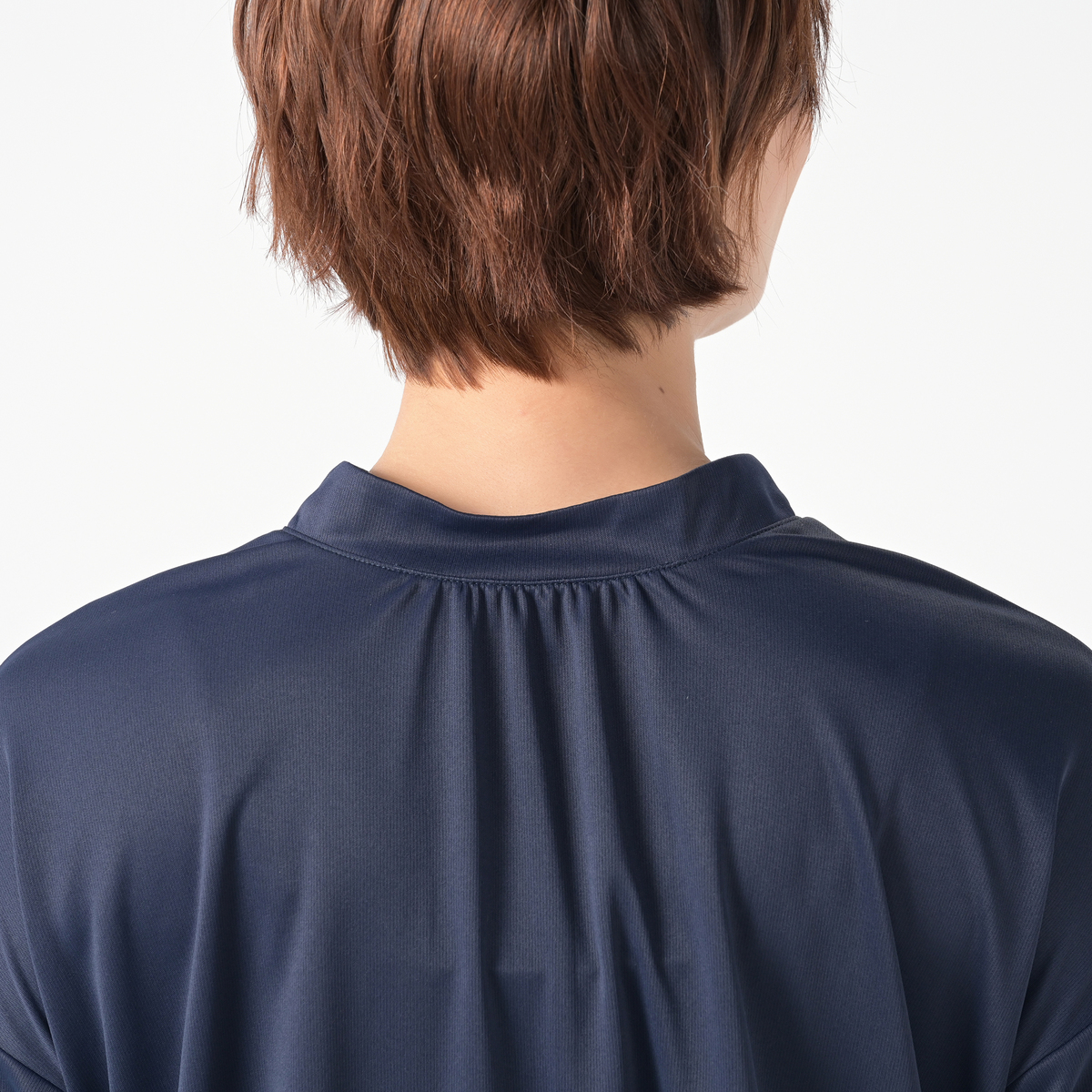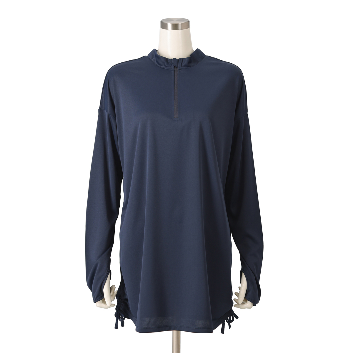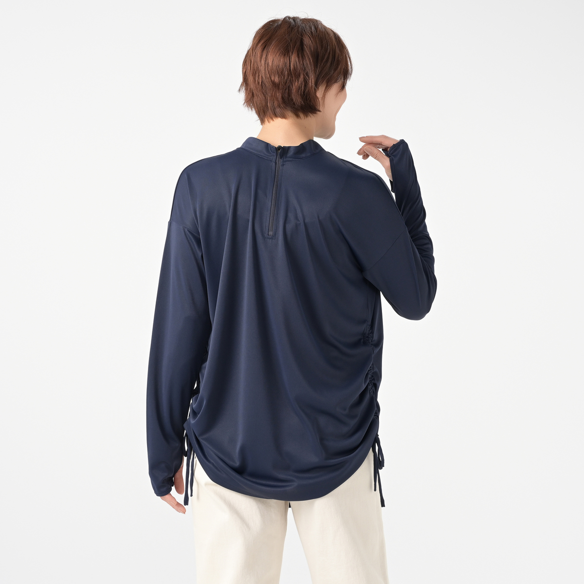 ミズノの着る木陰シリーズから、太陽の熱と紫外線を遮る素材を使用したプルオーバーをご紹介。前後2WAY仕様。サムホール付きで手の甲までカバーし、サイドのシャーリングで丈をお好みに調整できます