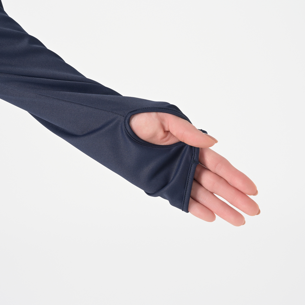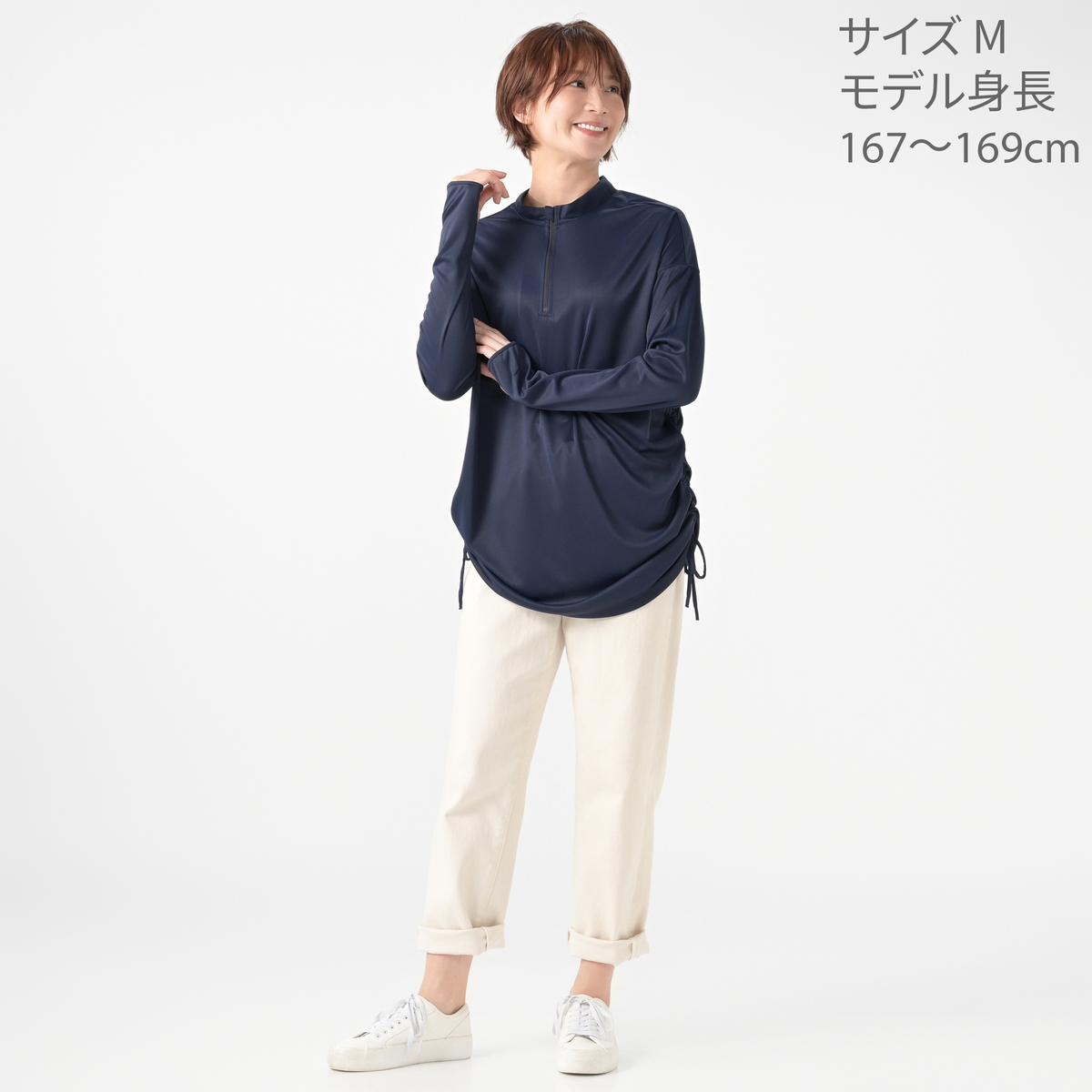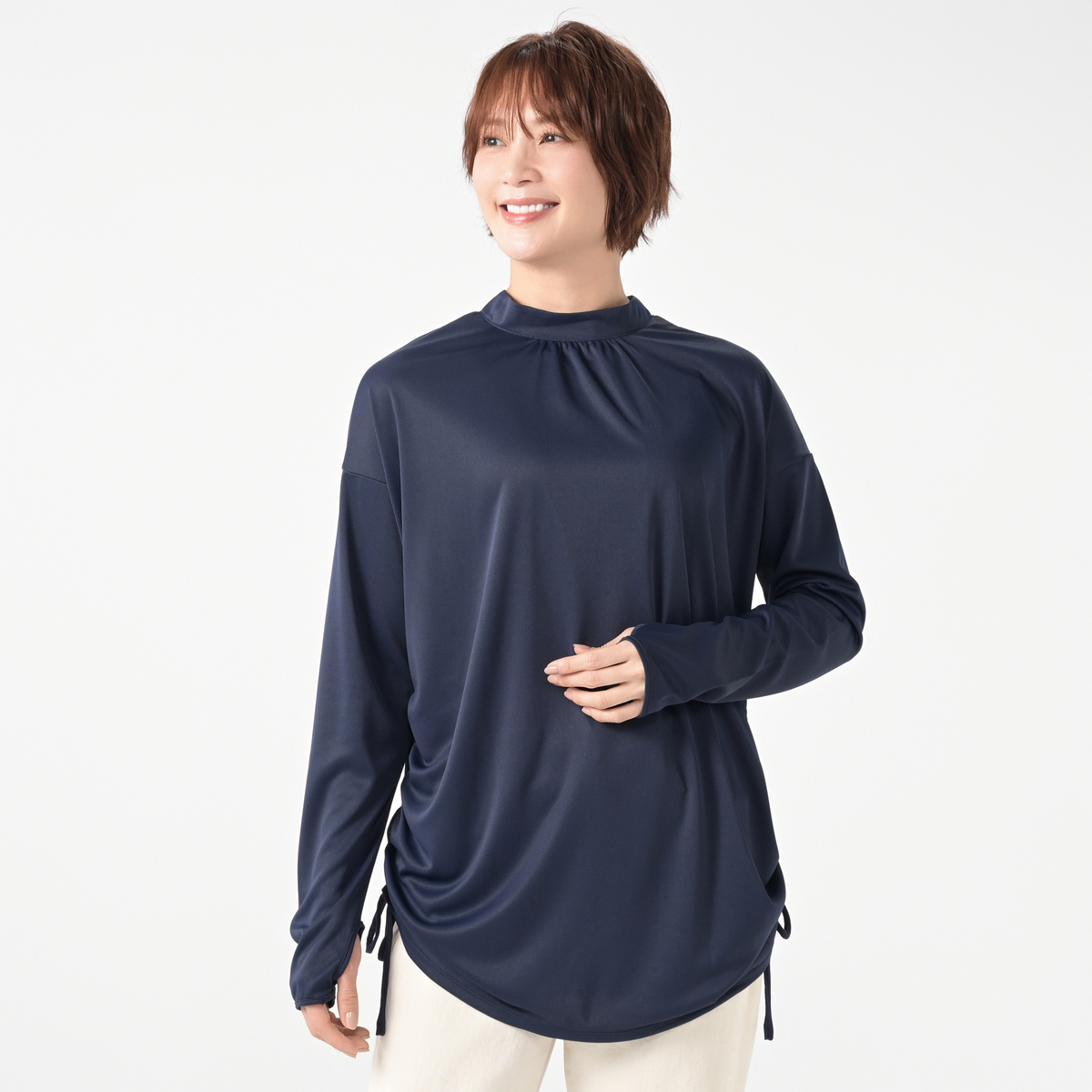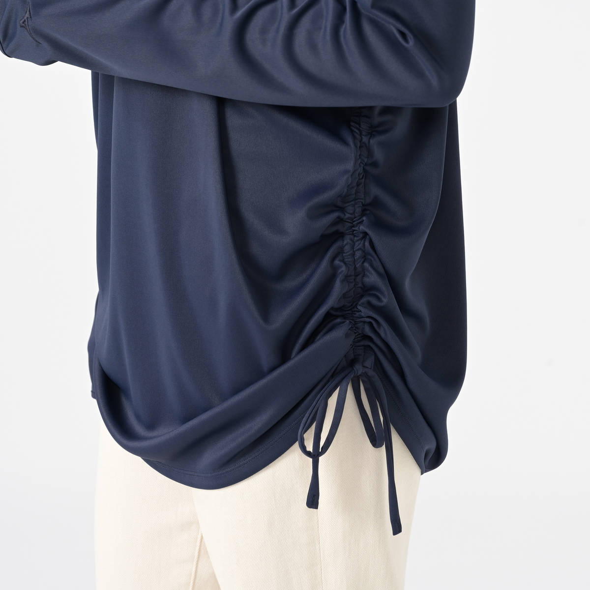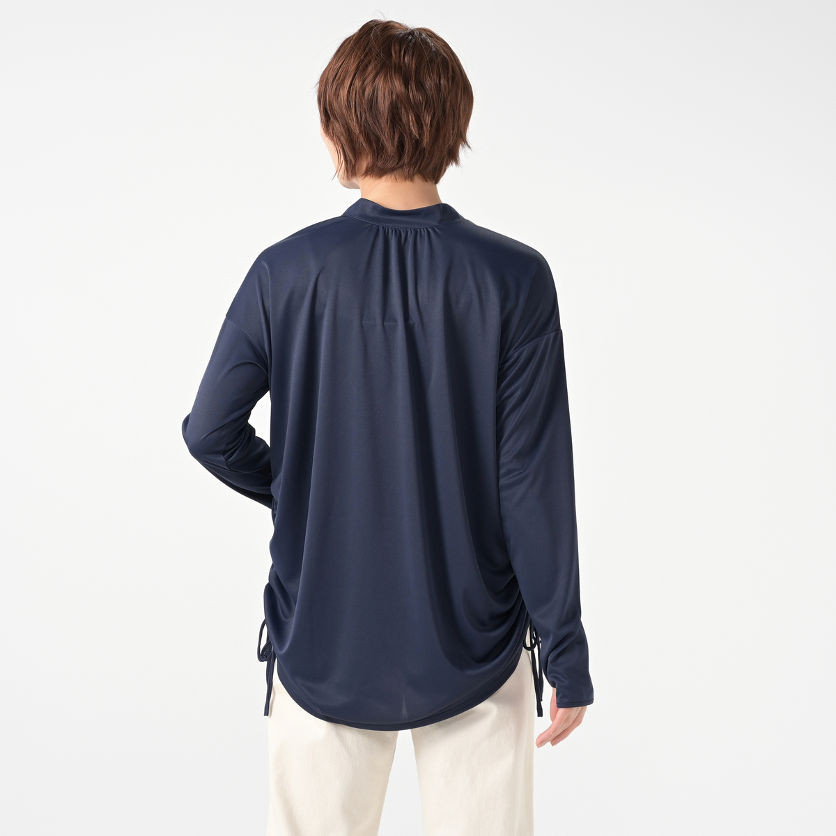 ミズノの着る木陰シリーズから、太陽の熱と紫外線を遮る素材を使用したプルオーバーをご紹介。前後2WAY仕様。サムホール付きで手の甲までカバーし、サイドのシャーリングで丈をお好みに調整できます