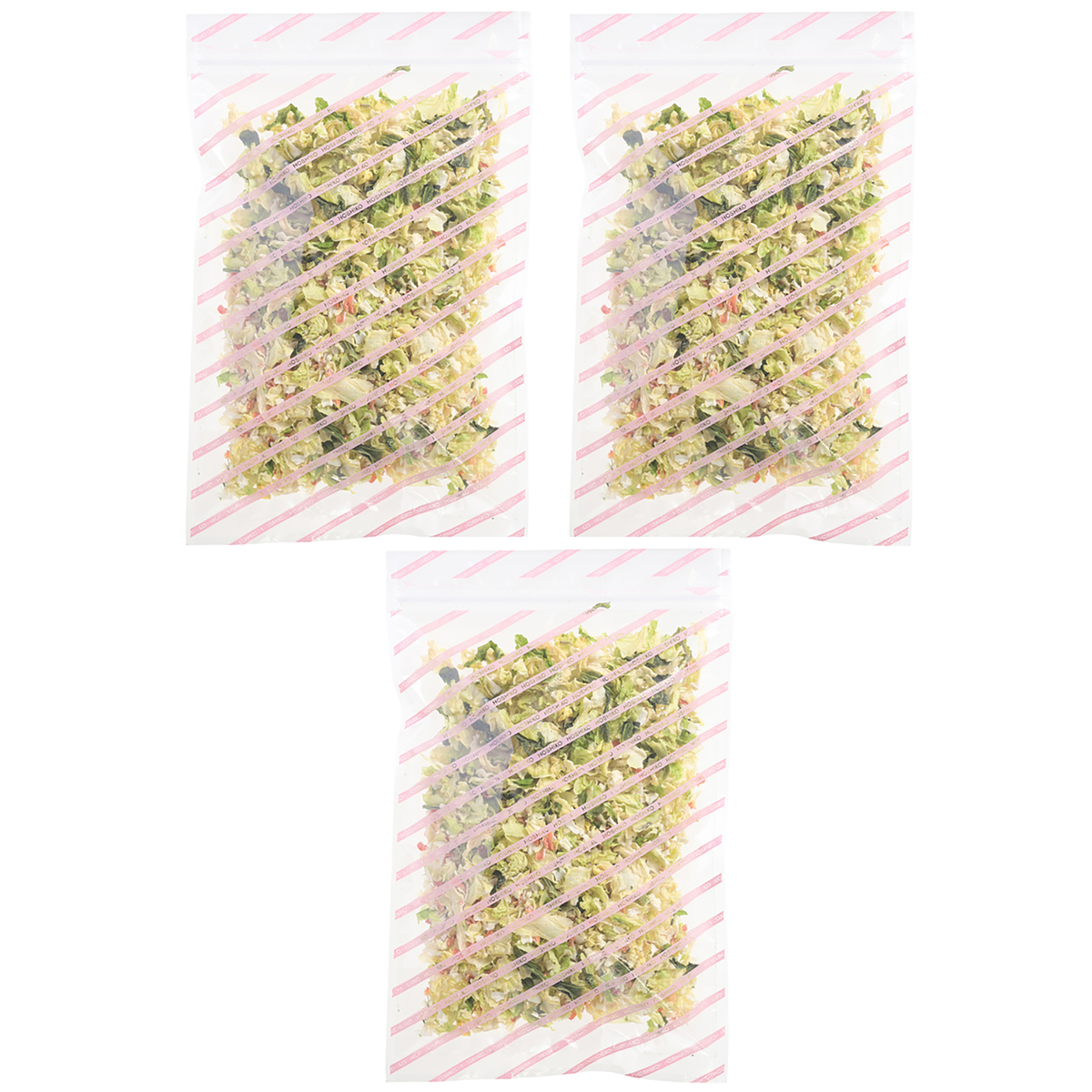 [アレルギー物質特定原材料8品目] なし [内容量] 70g×3 [賞味期限] 出荷時点で賞味期限まで60日以上ある商品をお届けします [保存方法] 開封前:直射日光・高温多湿を避けて、冷暗所で保存してください 開封後:開封後は賞味期限に関わらずお早めにお召し上がりください [お召し上がり方] ・水またはお湯で戻してお召し上がりください ・ボウルやお鍋にたっぷりの水またはお湯で30分程かけて戻す ・冷蔵庫で一晩かけてじっくり戻すとよりふっくらに。汁気のあるお料理にはそのまま加えて調理できます <水戻し時間/重量目安> 戻し時間15〜20分→重量約3〜4倍 戻し時間30〜40分→重量約6〜7倍 [注意事項] ※時間の経過とともに退色する場合もありますが品質には問題ありません [原料原産地] 玉ねぎ(熊本県産)、キャベツ(熊本県産)、人参(熊本県産) [加工地] 日本 [原材料] 玉ねぎ(熊本県産)、キャベツ(熊本県産)、人参(熊本県産)