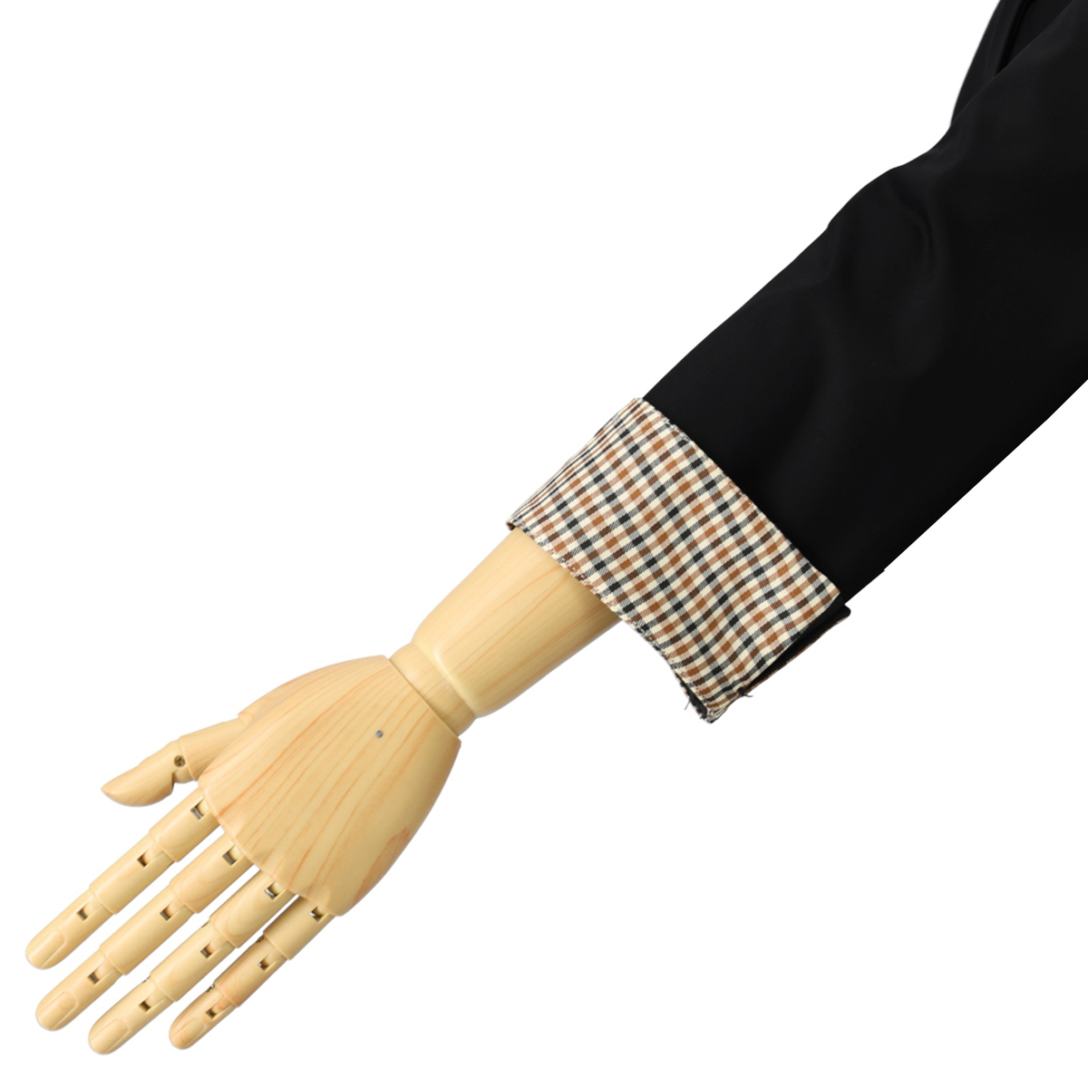 黒を購入しました。サイズは普段より大きめに感じました。ウエストが少しシェイプされているデザインでもざっくり着れるようにかなと思います。ただ、購入前から分かっていた事ですが、袖の折り返しの生地が雰囲気に全く合っていません。背抜きで袖短めなので春から初秋までのものだと思いますが、なぜ黒だけ茶色の秋冬のような子供っぽいギンガムチェックなの? 春夏のワンピースなどにさっと着たかったのに、袖だけ秋冬物でカジュアルすぎる模様。オフィスで見せるのが恥ずかしいので折り返しはできません。 シェイプされオフィスにも着ていけるはずが、黒だけ子供っぽいギンガムチェックにしたのは何故?黒を選ぶということはシックに着たいからなのに。春夏シーズンに中に着る色と合いません。スーツのような長く着るものに個性的な柄を取り入れるなら取り外し出来るようにするか、大人っぽいデザインの同系色また他と同じ白にして欲しかったです。