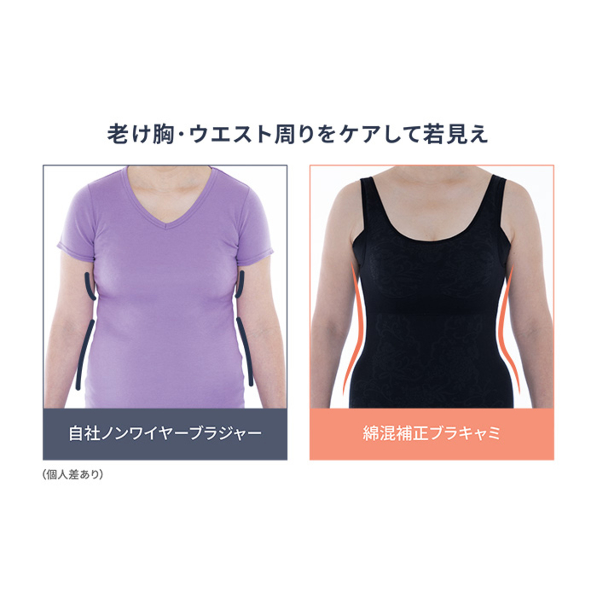 補正キャミ難民であの有名ジニ◯キャミも買いましたが苦しいだけ。 しかしこのキャミは綿が入っているからか気持ち悪くなく補正も適度で最高です。あと黒も買いました。リピ確定!
